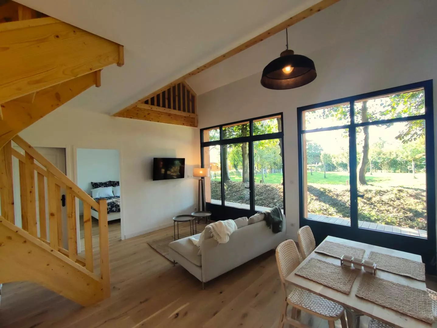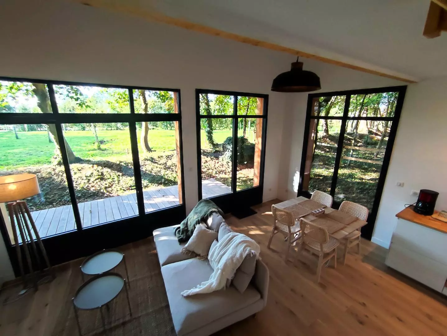 Les nombreuses baies vitrées baignent le gîte de lumière et offrent une ouverture permanente sur l'extérieur, créant une agréable sensation d'espace et de connexion avec la nature.