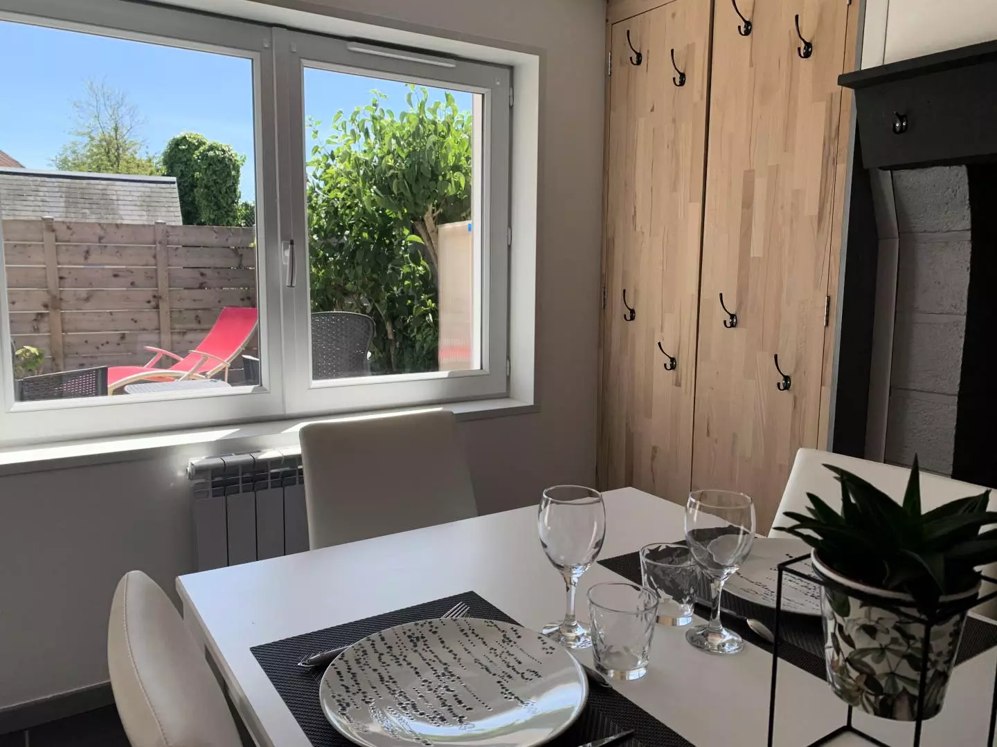Stationnement dans la rue, petit parking public à proximité. Gîte confortable, mitoyen d'un côté, avec terrasse dans un environnement calme, situé à 200m du centre du village. La plage de sable de Saint Jouin Bruneval à 1km est propice au farniente, la campagne toute proche et les chemins côtiers vous permettront de faire de jolies ballades et de découvrir toutes les richesses du Pays de Caux et de la Côte d'Albâtre.