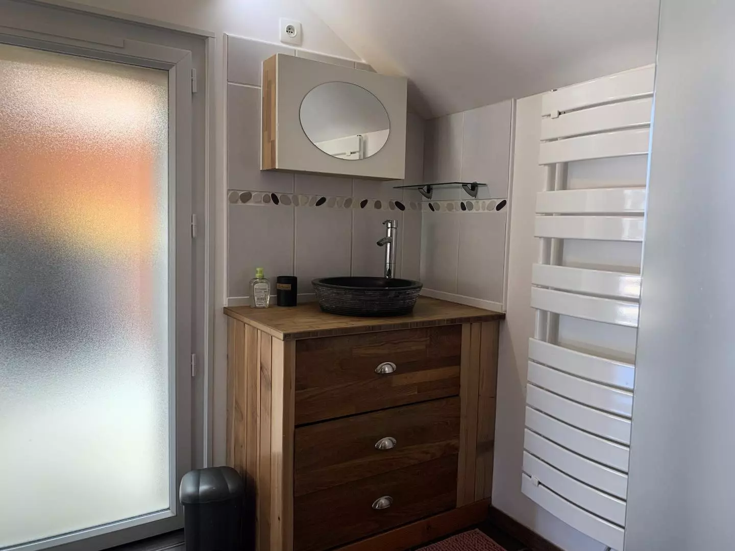 - salle d'eau (douche italienne, sèche-cheveux, lave-linge) avec wc cloisonnés,
