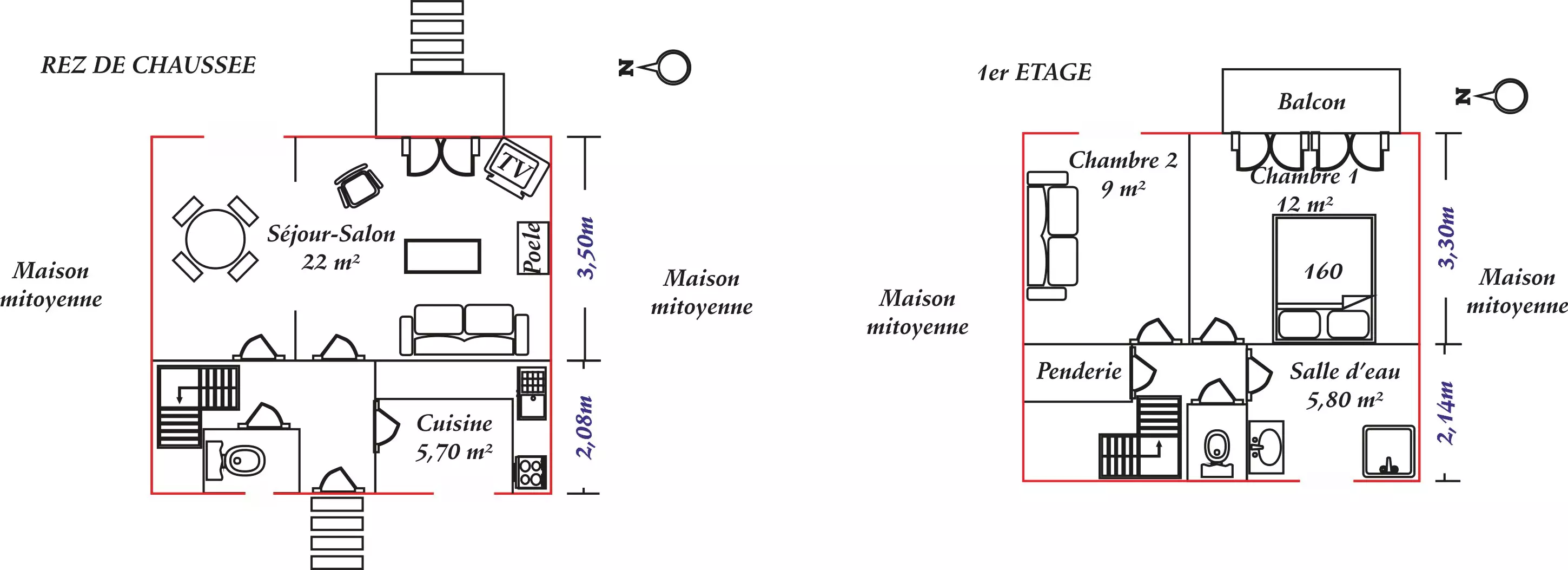 - 1 chambre (1 lit 2 personnes 160x200cm),