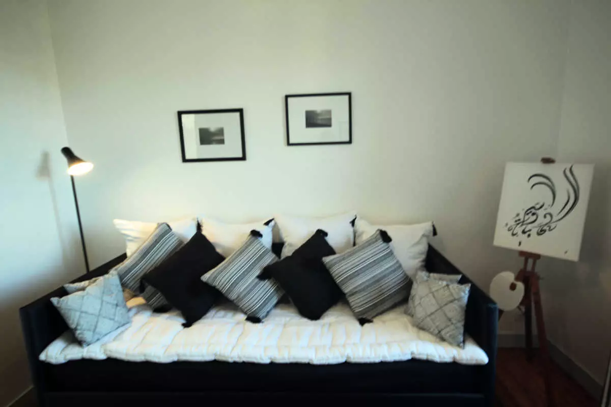 - 1 chambre d'appoint avec canapé convertible de qualité avec lit gigogne), malle de livres et petit bureau,