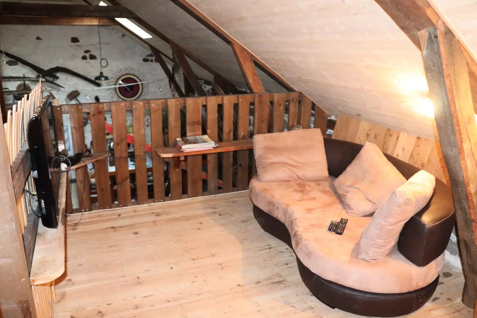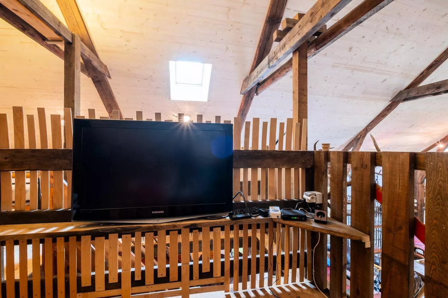 A l'étage : la mezzanine avec un lit double (140/190) et un lit simple (90/190) et un wc.