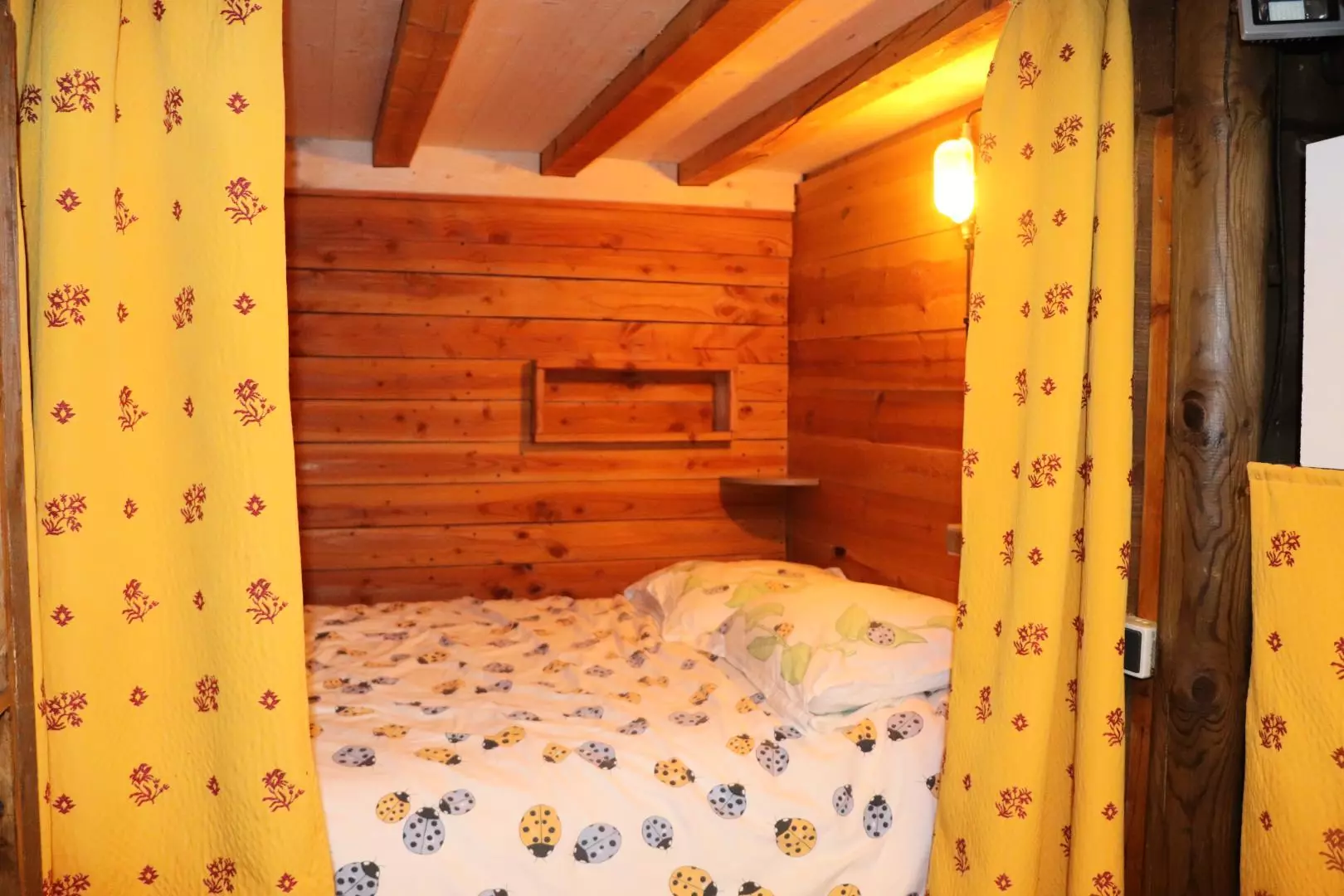 Au rez de chaussée : la cuisine, ouverte sur le salon, permet de cuisiner tout en profitant de la vie de famille ; le salon, décoré avec goût et authenticité, invite à la détente après une journée au grand air ; deux alcôves avec lit en 140, chacune prévue pour une personne, et un wc.