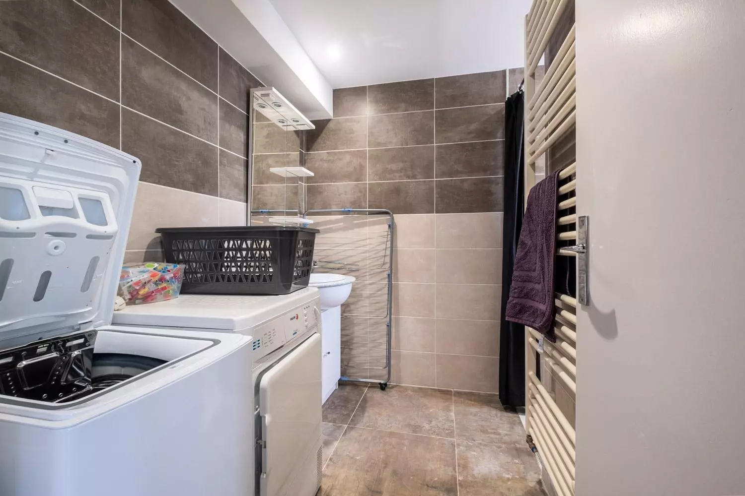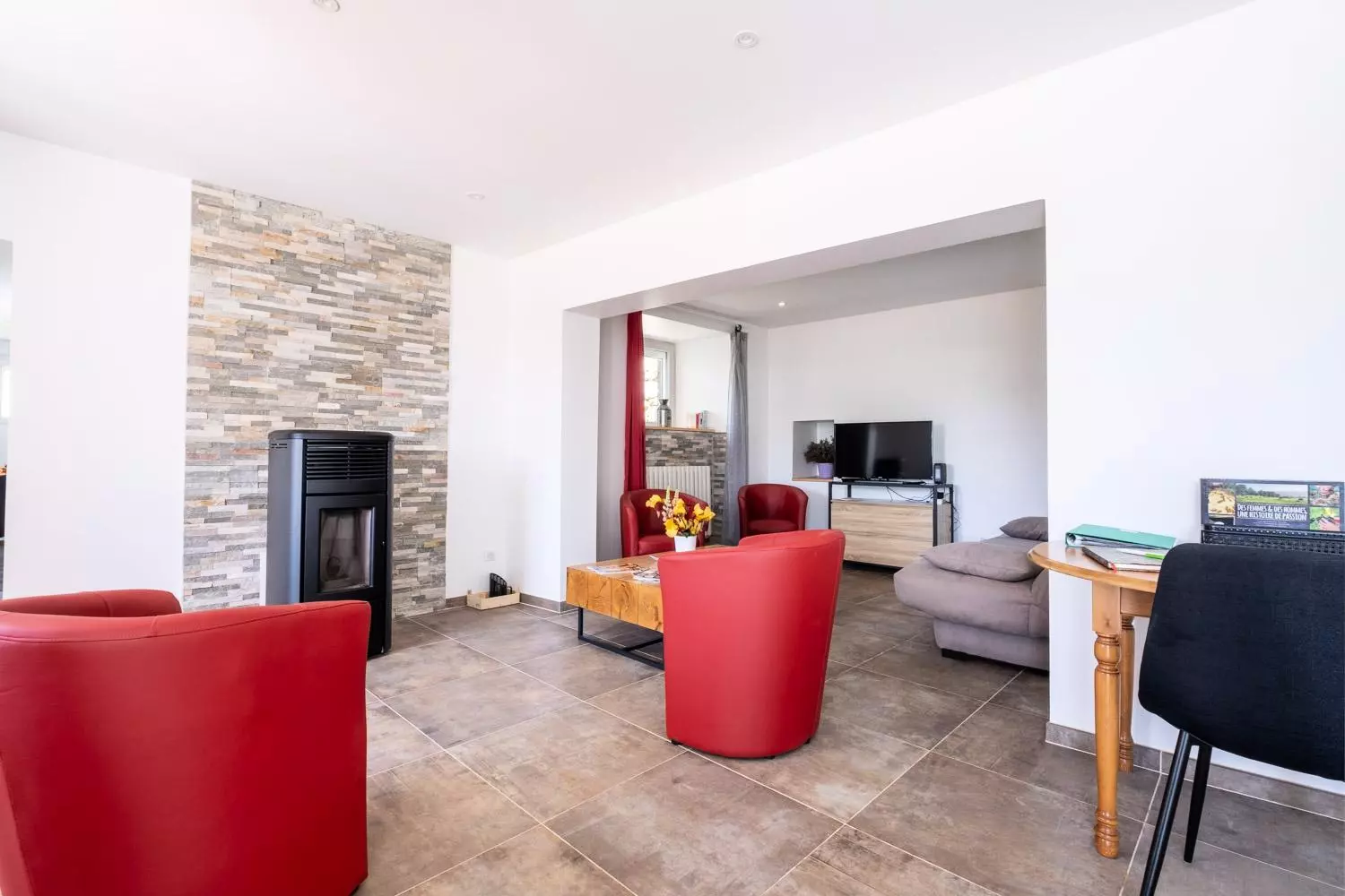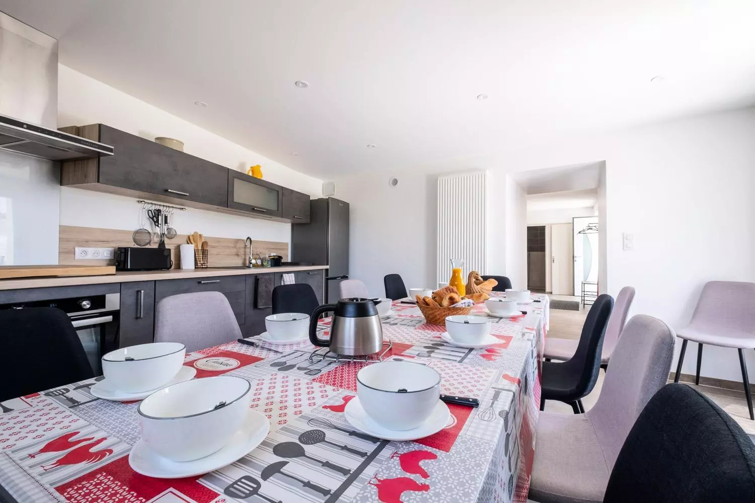 Au rez-de-chaussée, vous trouverez une cuisine entièrement équipée, un grand salon avec un canapé convertible deux places et un poêle à granulés, une salle d'eau (avec lave-linge et sèche-linge) et un wc indépendant.