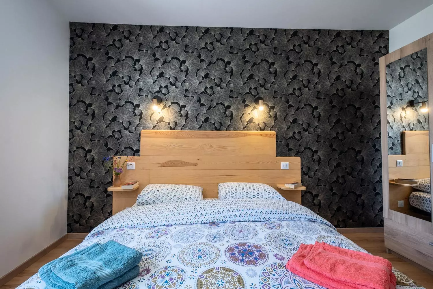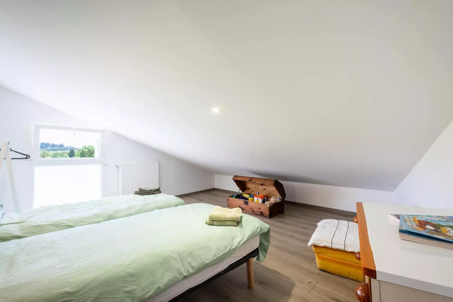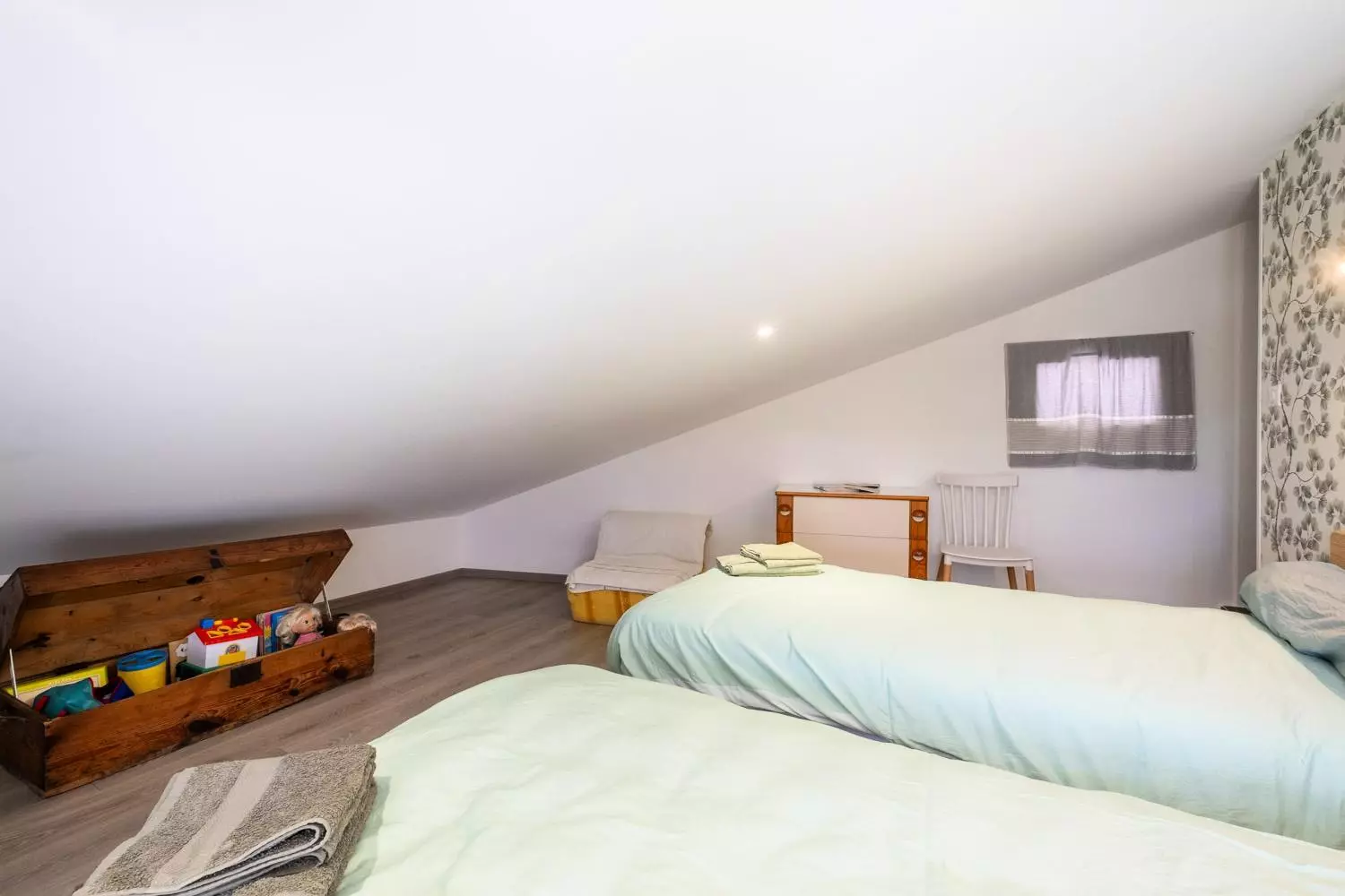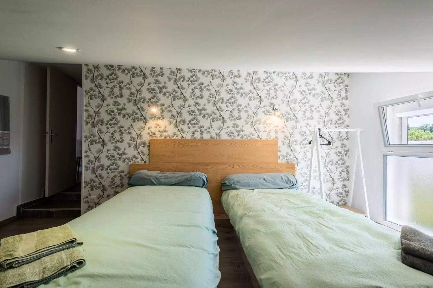 Au 1er étage, une chambre avec un lit double en 160/200, une chambre avec un lit double en 140/190 bénéficiant d'un petit balcon, une chambre enfant avec deux lits simples en 90/190 (sous pente), une salle d'eau et un wc indépendant.
