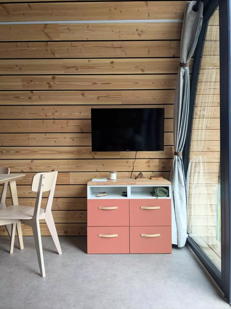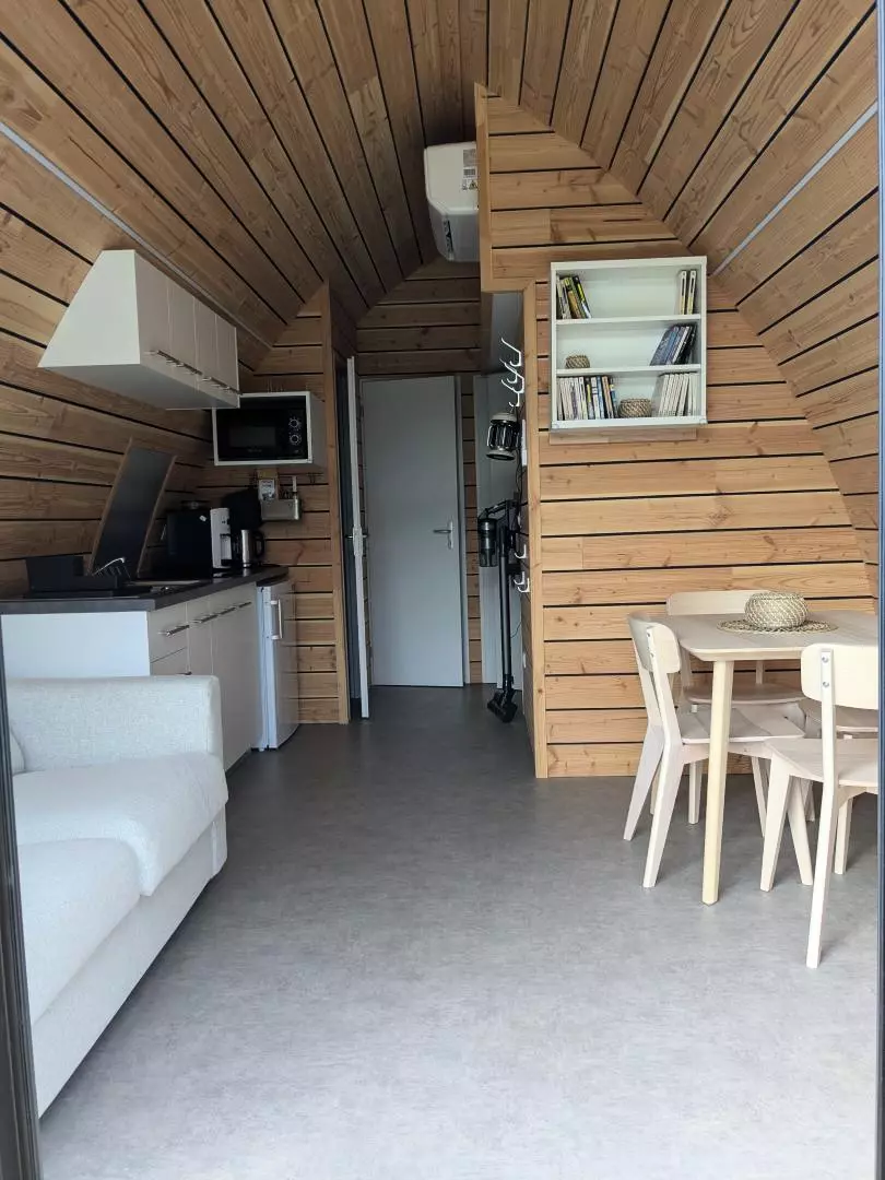 Chaque Pigne est un hébergement en bois de 34 m² comprenant :