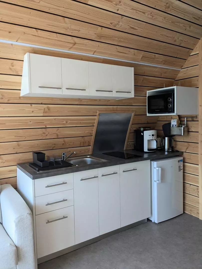 – coin cuisine : frigo top, plaque double induction, four micro-ondes, machine à café à grains, bouilloire, grille-pain, vaisselle complète, aspirateur, nécessaire de ménage,