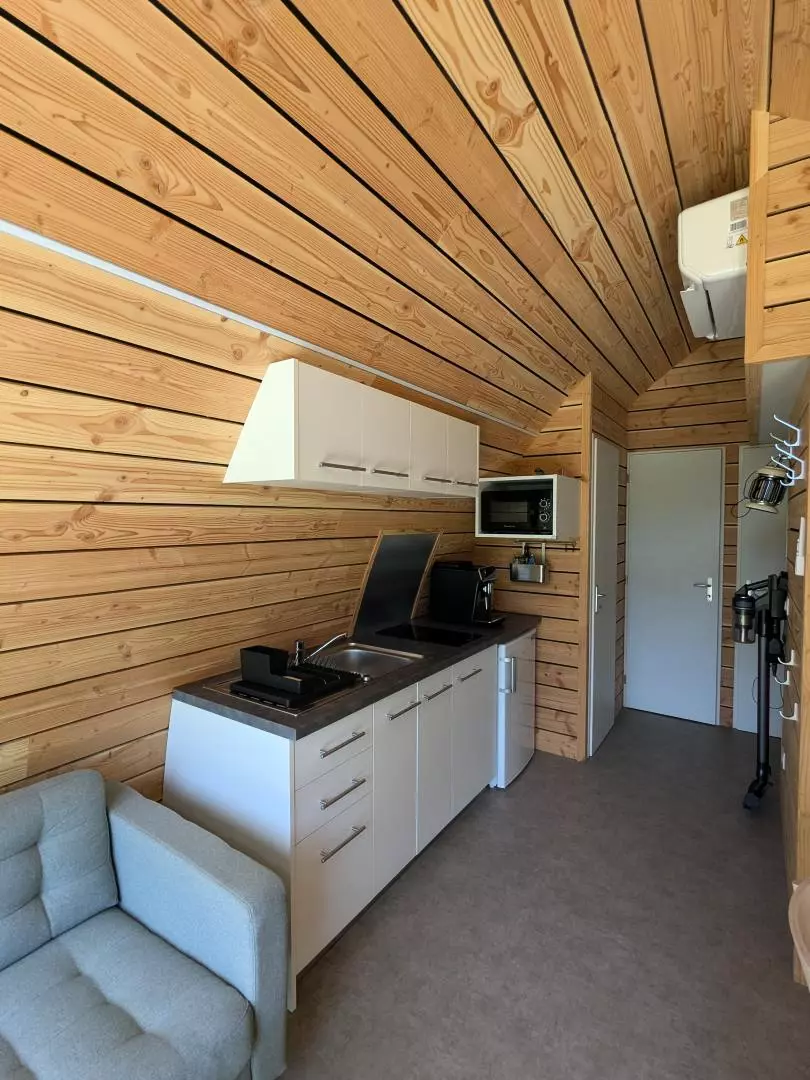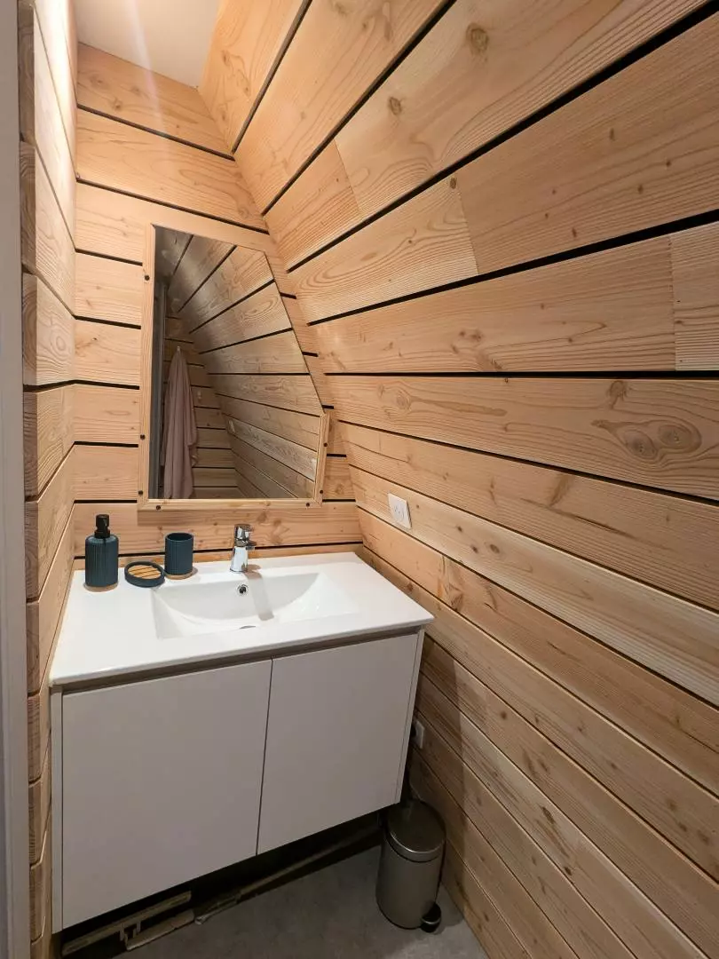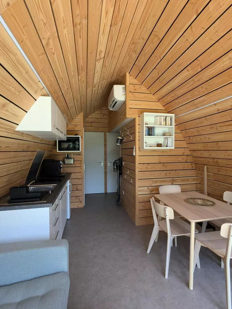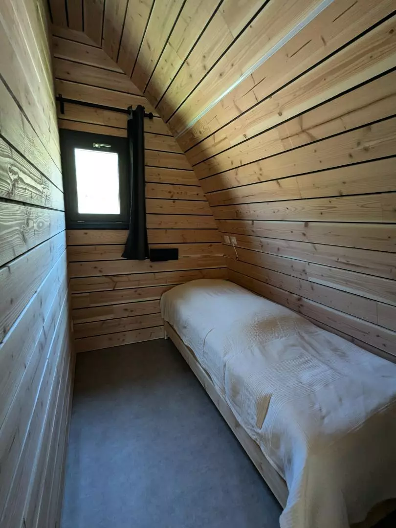 Chaque Pigne est un hébergement en bois de 34 m² comprenant :