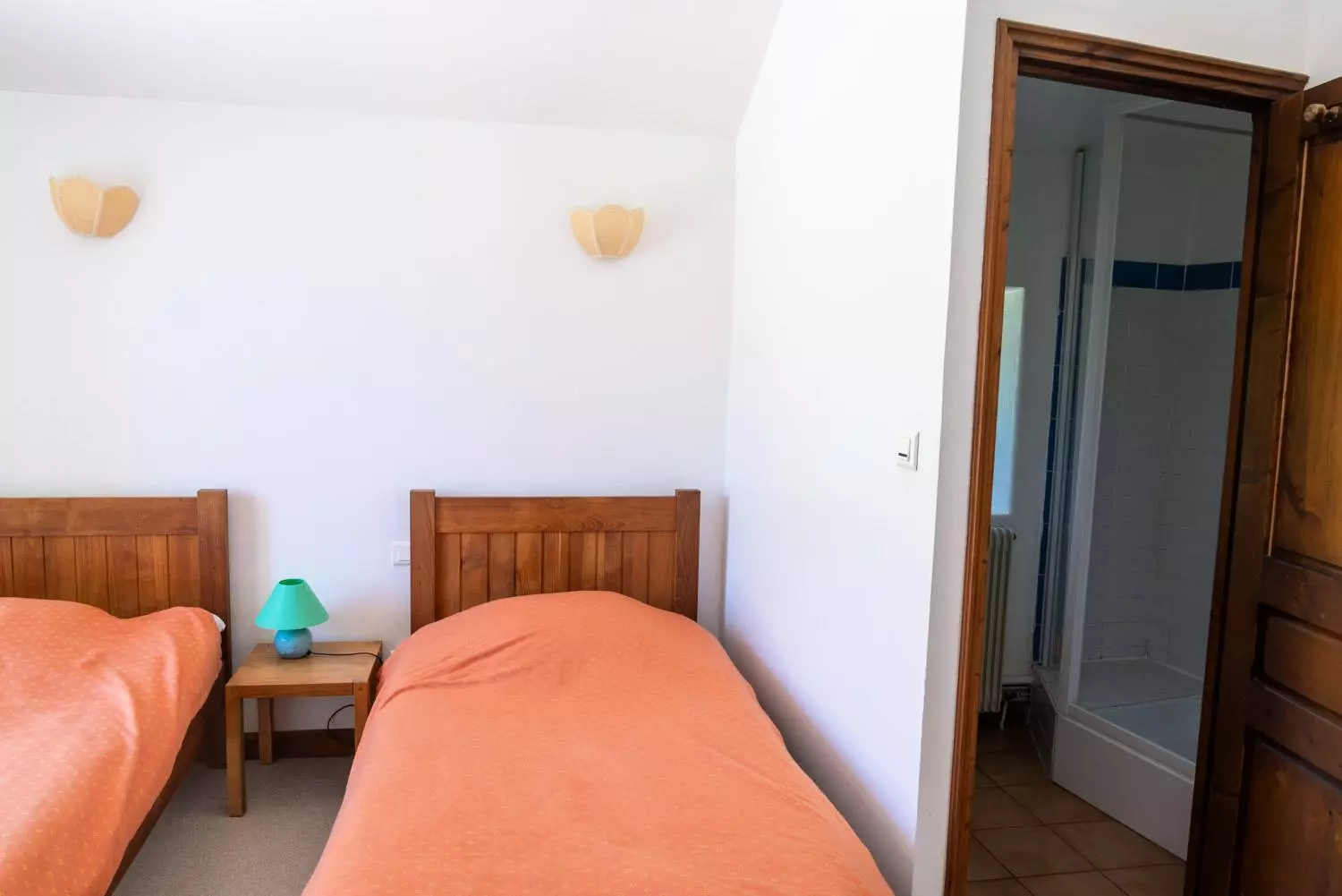 A l'étage : 1 chambre (1 lit 2 places), 1 chambre (2 lits 1 place, salle d'eau privative), salle de bains et WC indépendant.