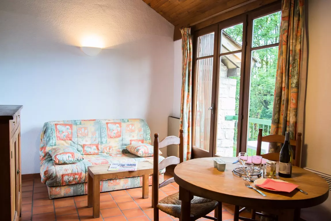 Hébergements de 25m² pour 2 à 4 personnes disposant d'un coin cuisine équipée (réfrigérateur-congélateur, lave-vaisselle, plaque de cuisson, four, micro-ondes, hotte aspirante, cafetière), d'un séjour avec un canapé-lit double (140x190), d'une chambre avec un lit double (140x190), d'une salle d'eau, d'un wc indépendant et d'une prise de télévision (possibilité de location de télévision : 3€/jour, sur réservation et selon disponibilités). Terrasse ou balcon privatif (selon disponibilités) avec un salon de jardin.