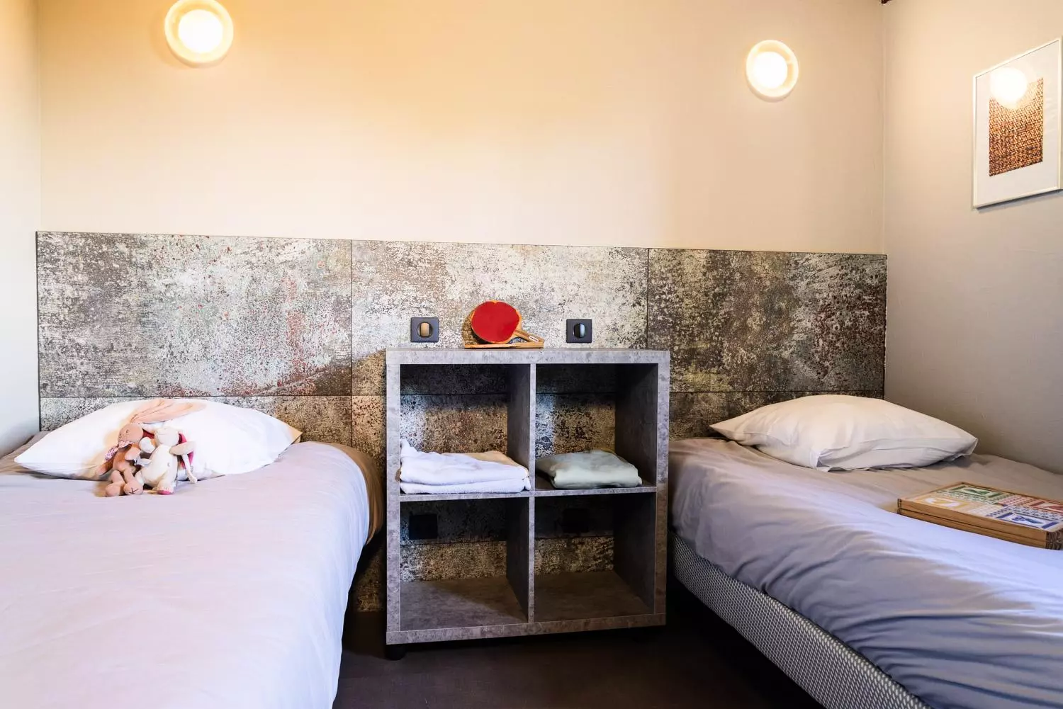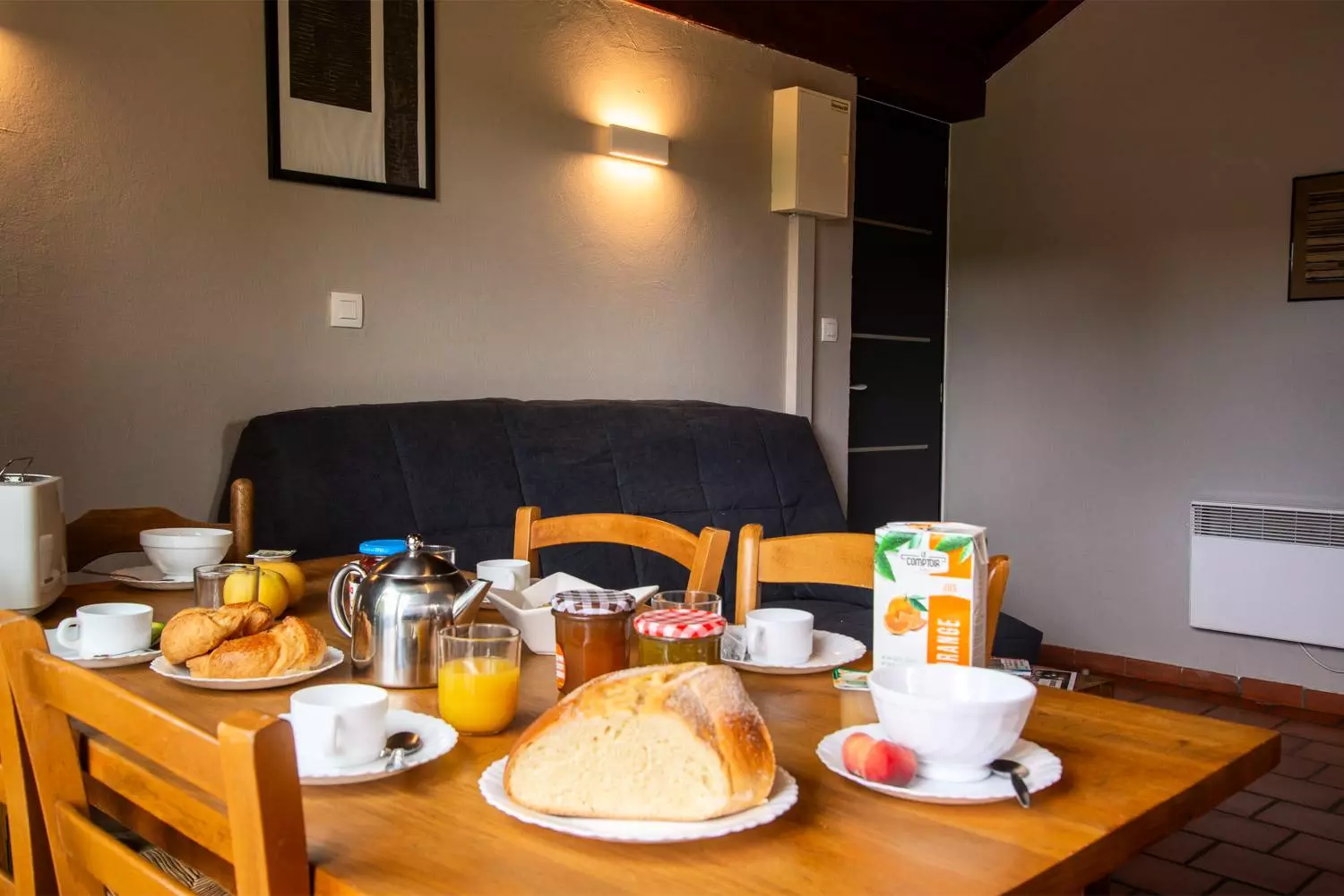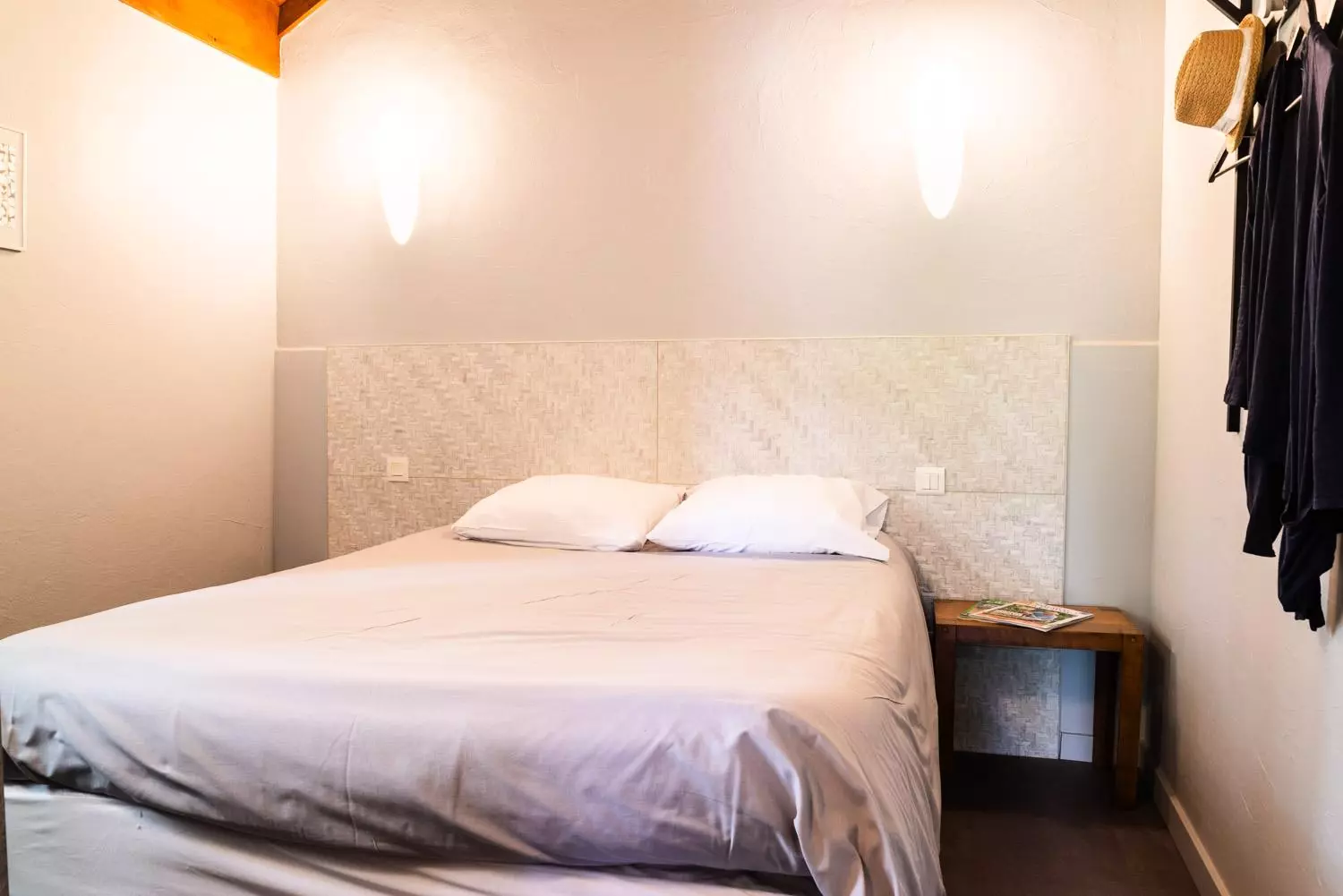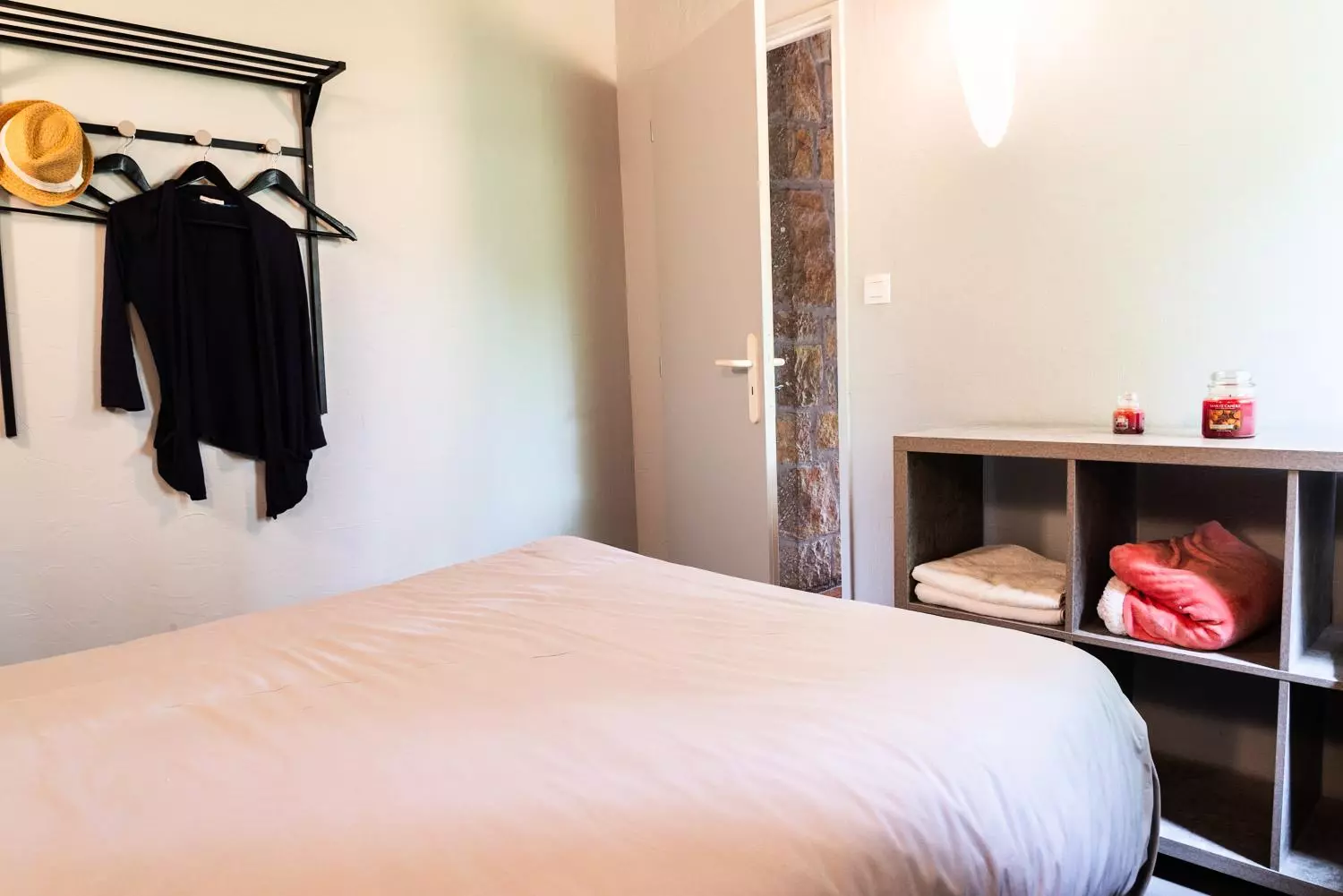 Hébergement de 38m² pour 4 à 6 personnes, entièrement rénové, disposant d'un coin cuisine équipée (réfrigérateur-congélateur, lave-vaisselle, plaque de cuisson, four, micro-ondes, hotte aspirante, cafetière), d'un séjour avec une télévision et un canapé-lit double (140x190), d'une première chambre avec un lit double (140x190), d'une seconde chambre avec deux lits simples (80x190), d'une salle d'eau et d'un wc indépendant. Terrasse privative équipée d'un salon de jardin.