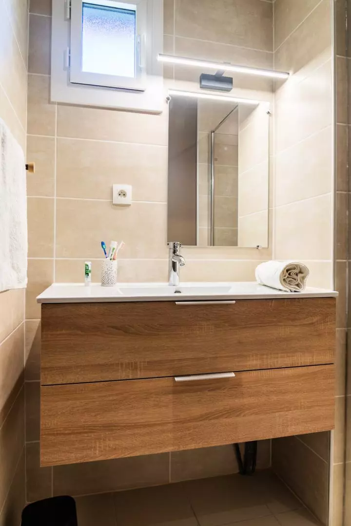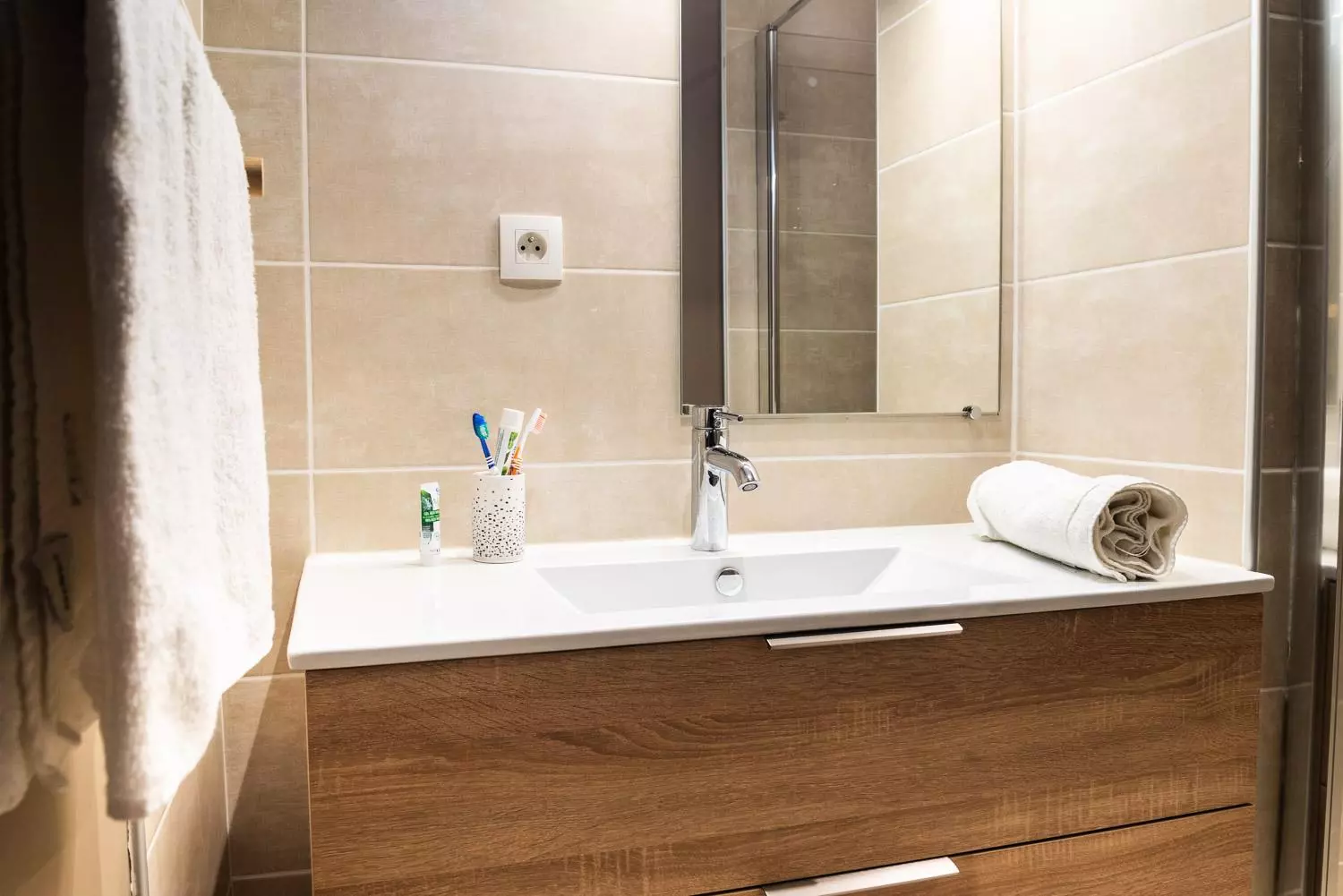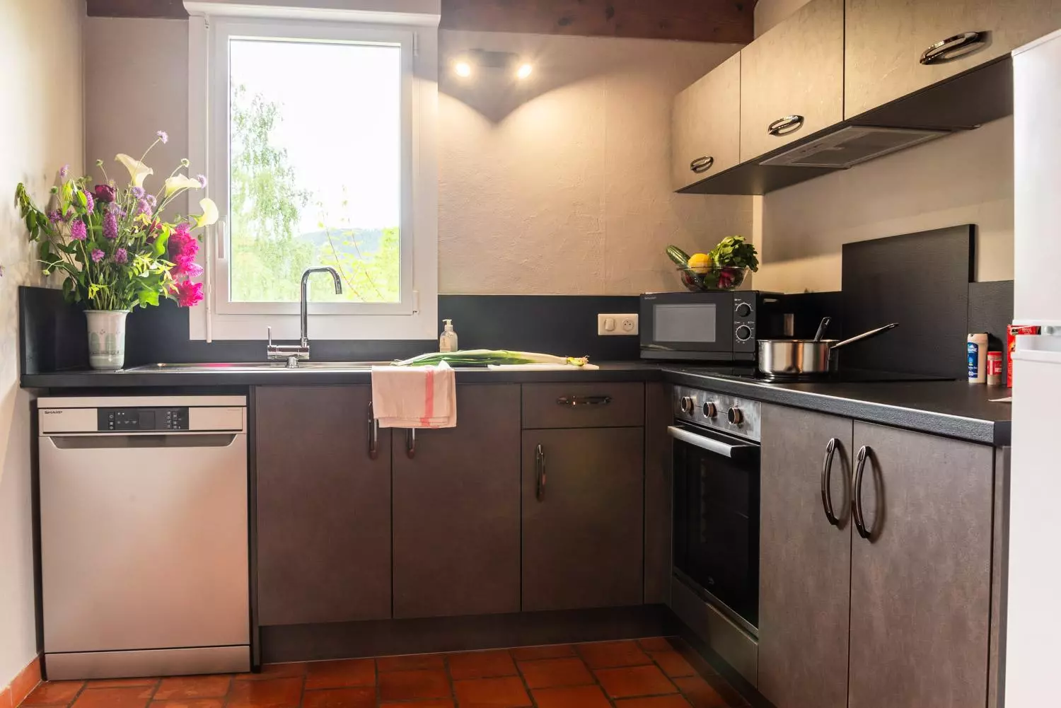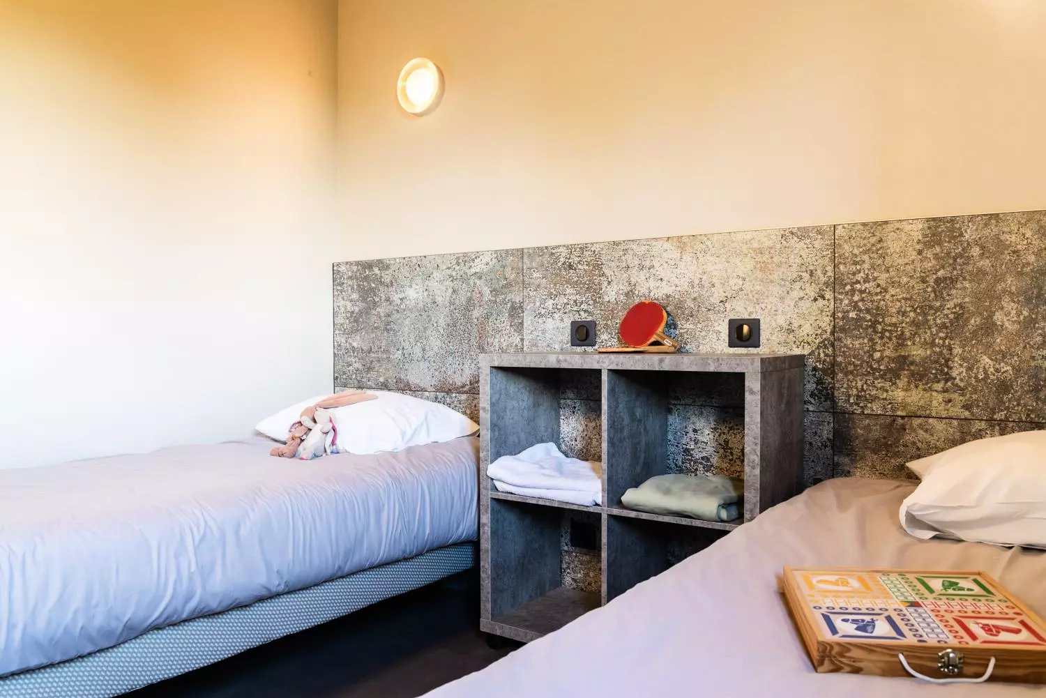 Hébergement de 38m² pour 4 à 6 personnes, entièrement rénové, disposant d'un coin cuisine équipée (réfrigérateur-congélateur, lave-vaisselle, plaque de cuisson, four, micro-ondes, hotte aspirante, cafetière), d'un séjour avec une télévision et un canapé-lit double (140x190), d'une première chambre avec un lit double (140x190), d'une seconde chambre avec deux lits simples (80x190), d'une salle d'eau et d'un wc indépendant. Terrasse privative équipée d'un salon de jardin.