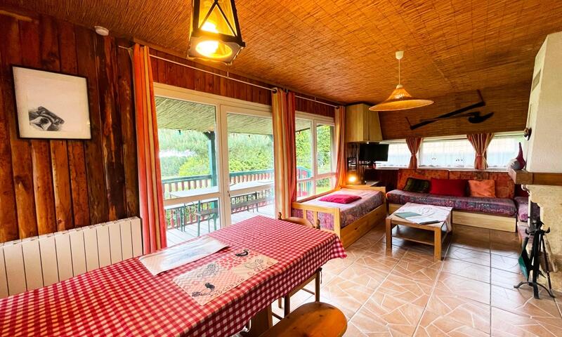 - Séjour avec large baie vitrée et lit simple + lit gigogne pour 2 personnes.