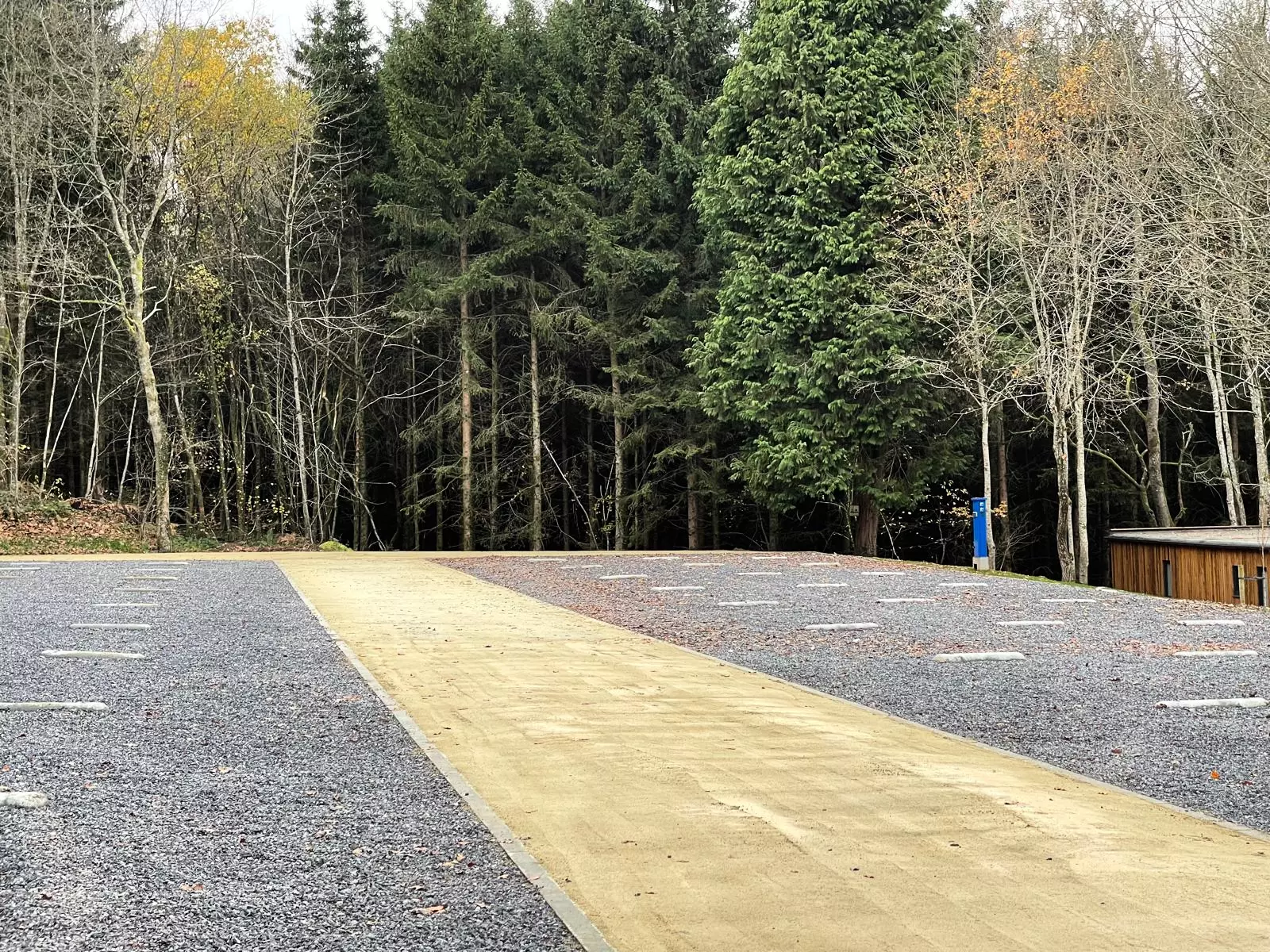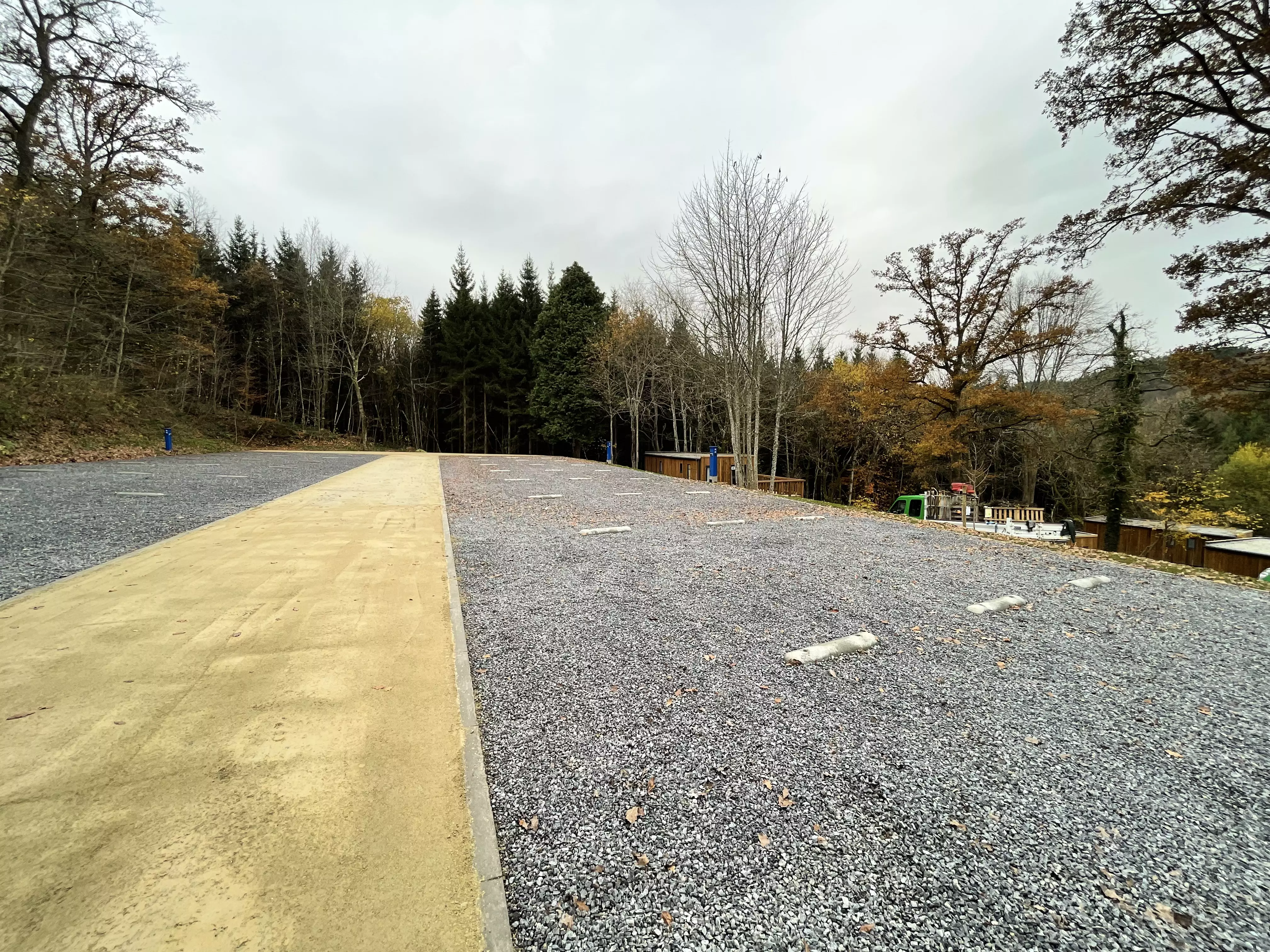 - Aire pour camping-cars : Zone entièrement automatisée avec de vastes emplacements (environ 60 m²) et des sanitaires communs. Réservée aux camping-cars.
