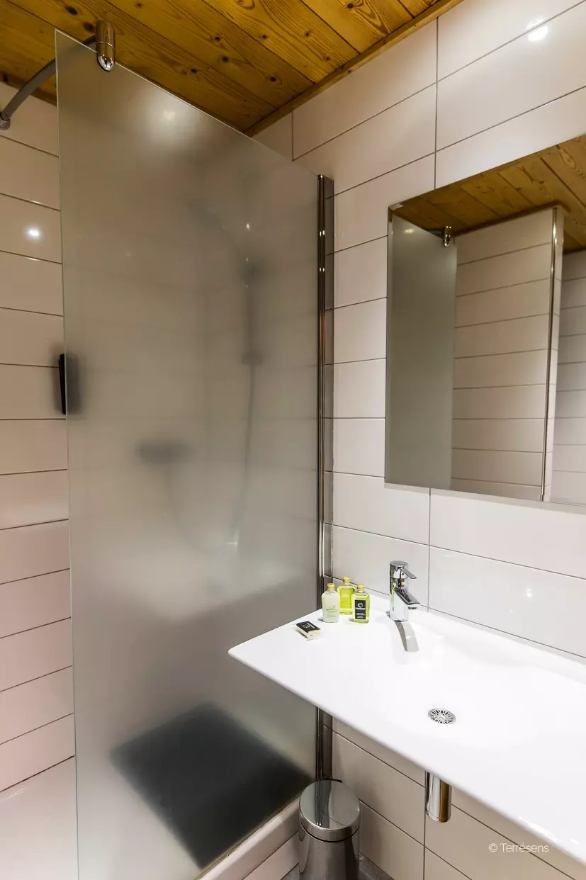 La chambre est équipée d'une télévision, du wifi et d'un sèche-cheveux dans la salle de bain.