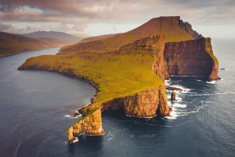 Découverte du village isolé de Saksun et de sa lagune, puis Tjørnuvík et ses vues sur les rochers légendaires Risin & Kellingin. Passage par la cascade de Fossa avant d’arriver à Gjógv, charmant village de pêcheurs au cadre naturel unique.