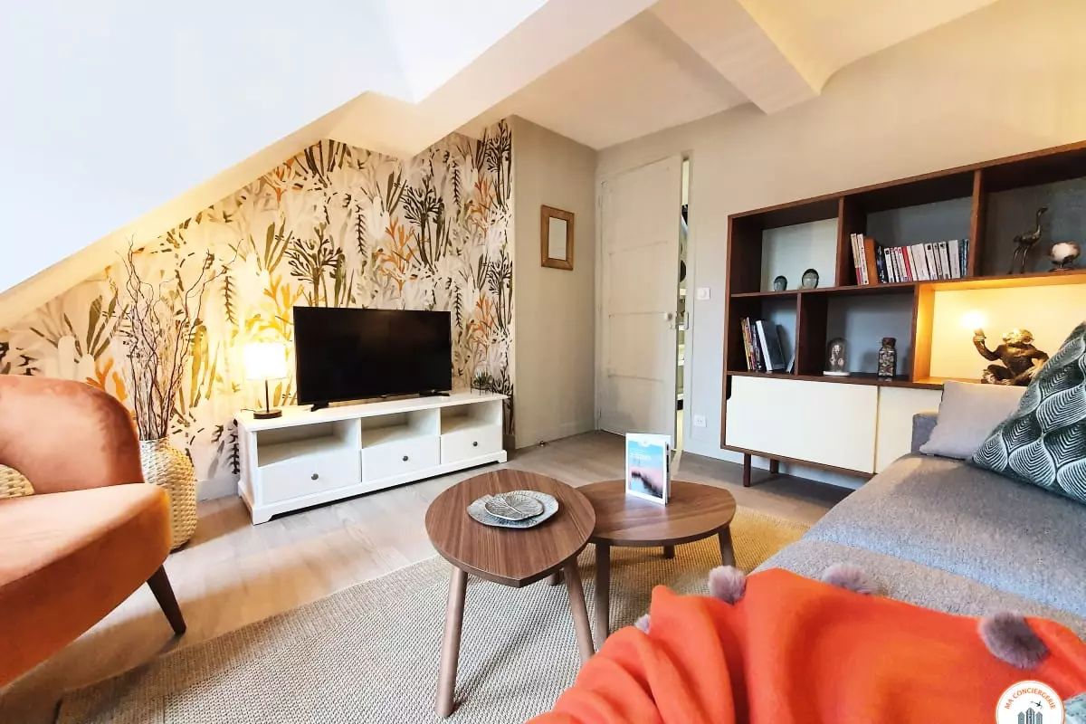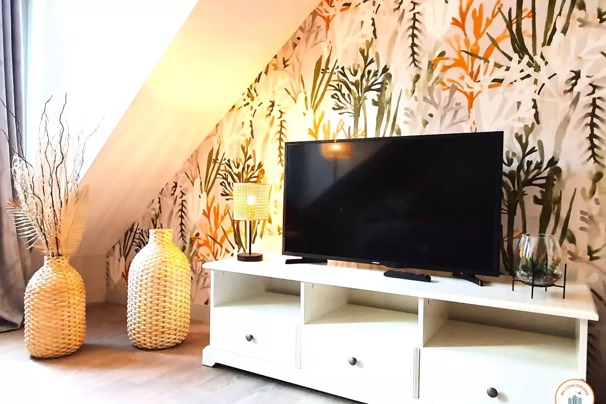 - Un salon/salle à manger avec canapé convertible haut de gamme (160x200cm) et Smart TV.