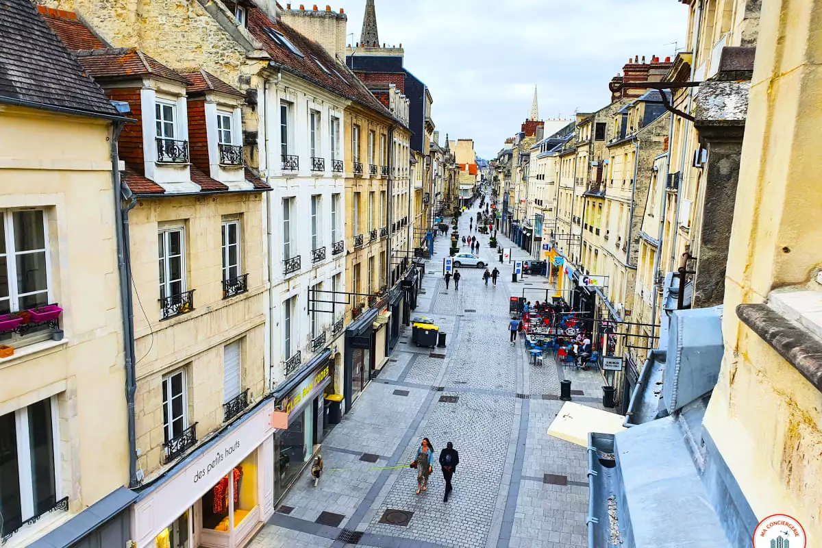👀 Sa vue unique sur l'immeuble où est né François de Malherbe et la rue piétonne St Pierre.