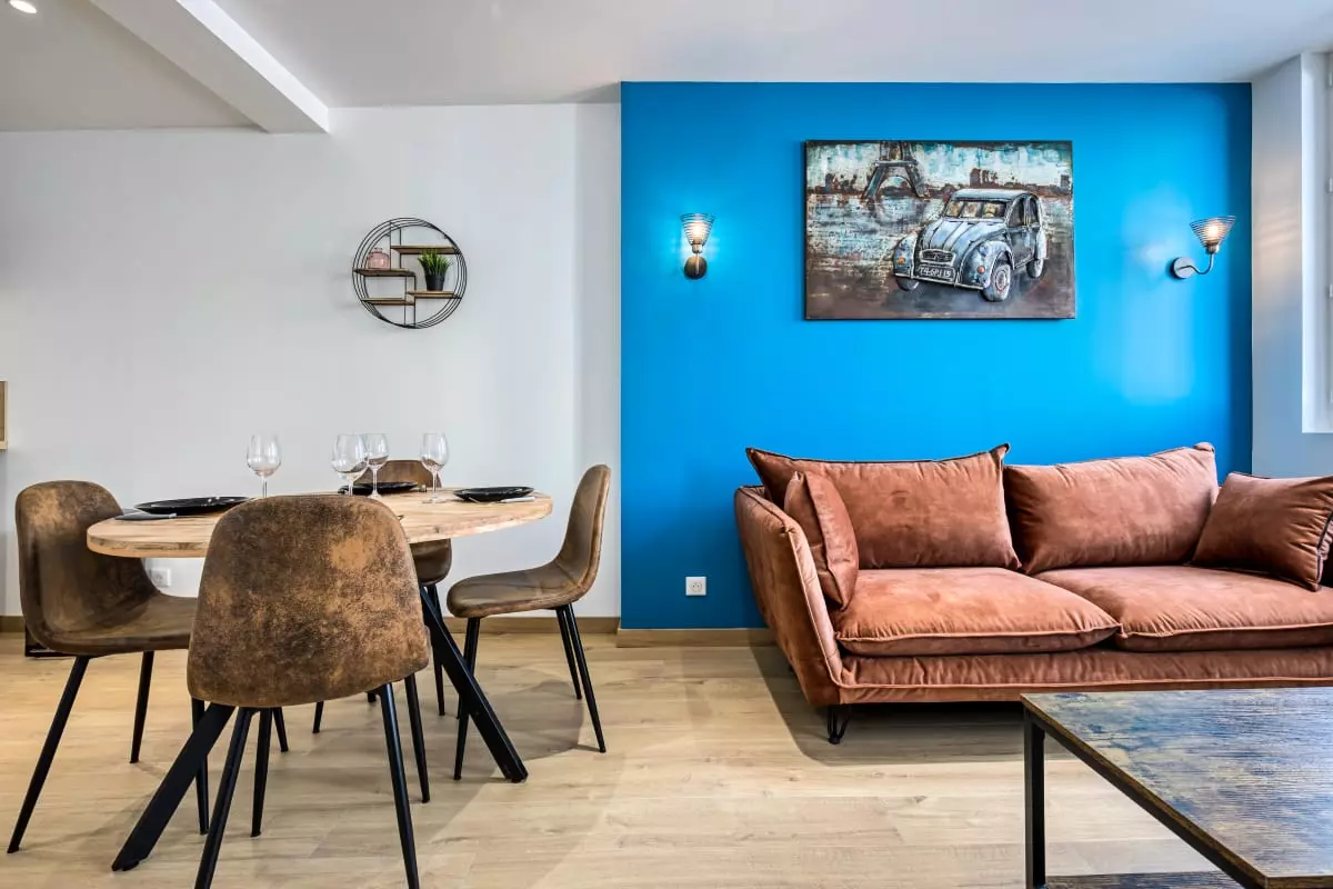 Le salon vous propose des moments de détente avec son canapé et sa télévision smart TV grand écran. Bénéficiez d'une connexion internet dans tout le logement.