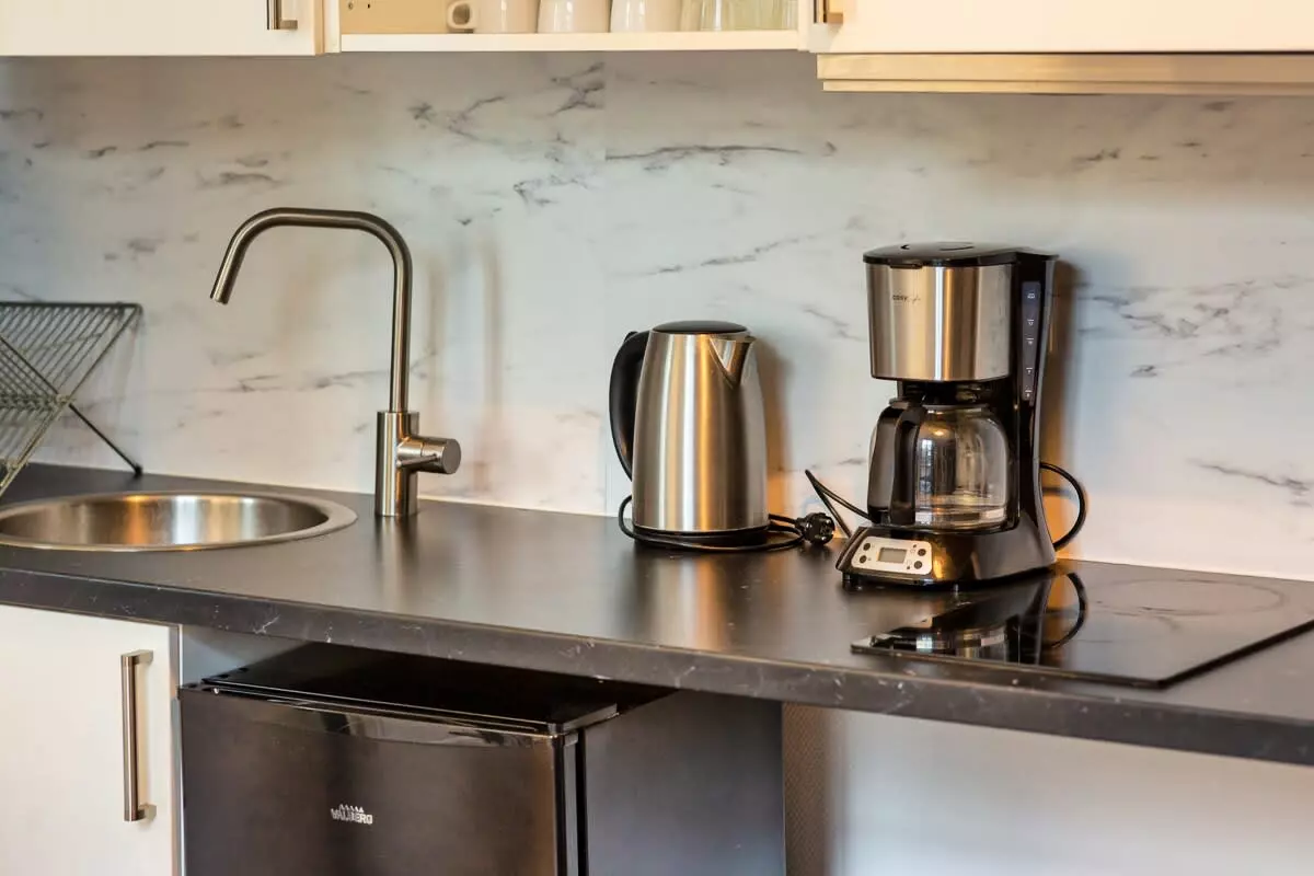 Retrouvez ainsi un coin salon avec table basse relevable et dépliable en table haute ainsi qu'un canapé lit convertible. Profitez d' une cuisine aménagée et équipée (un petit réfrigérateur, un micro-onde - grill, deux plaques vitrocéramiques, une bouilloire, une cafetière Tassimo, nécessaire de cuisine) et d'une salle de douche (un meuble lavabo, un porte serviette, une douche et des WC). Un grand placard intégré avec étagères est à votre disposition pour ranger vos vêtements.