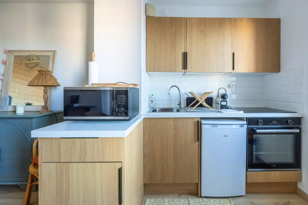 - une cuisine bien équipée (machine à café, mixeur, bouilloire, four, micro-ondes, plaques de cuisson, réfrigérateur),