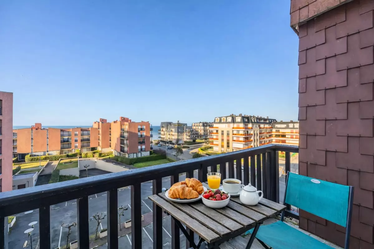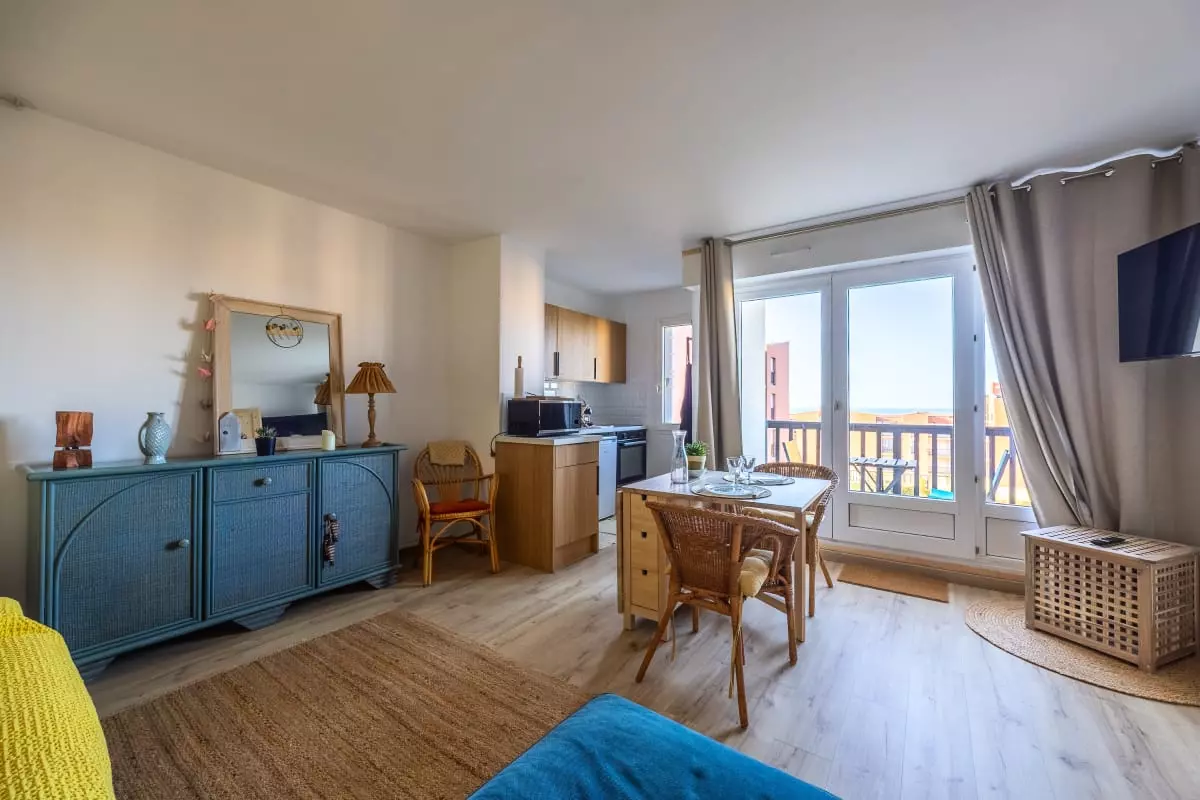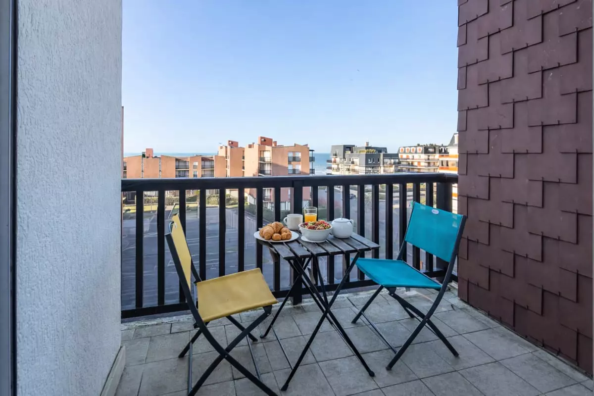 Le logement est situé à seulement 100 mètres de la plage et dispose d’un balcon pour profiter de l’extérieur.