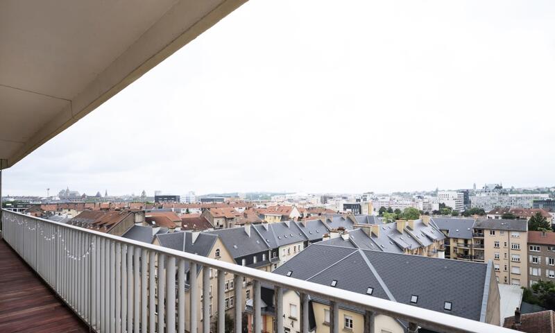 Appartement lumineux avec vue panoramique sur Metz, 2 chambres, balcon, parking privatif et accès direct au centre-ville.
