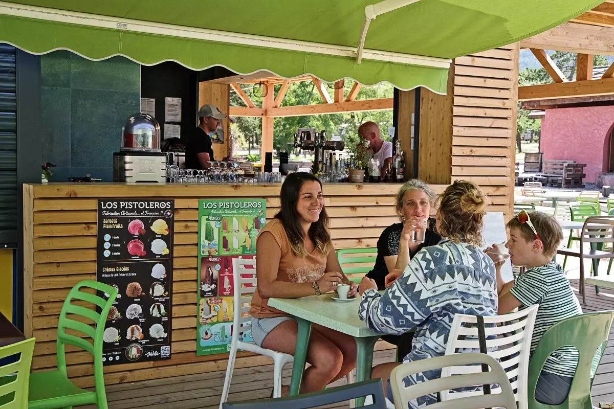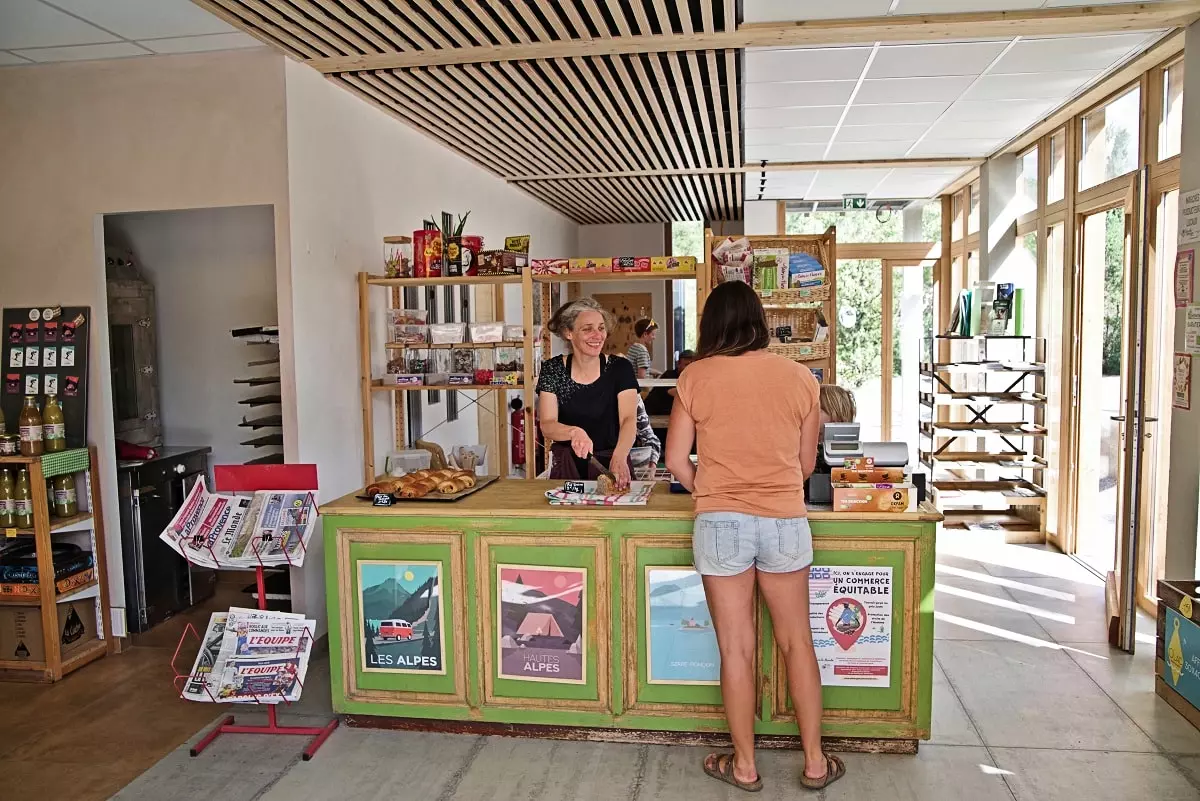 Au cœur du camping, trouvez un lieu de vie pour vos achats, vous restaurer et passer de bons moments (snack, épicerie, concerts,...).