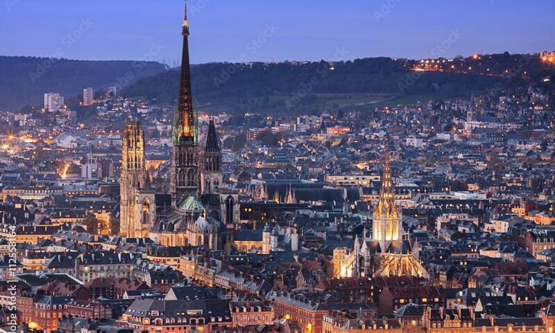 Rouen, dite la Ville aux cent clochers, est située au nord-ouest de la France et traversée par la Seine.
