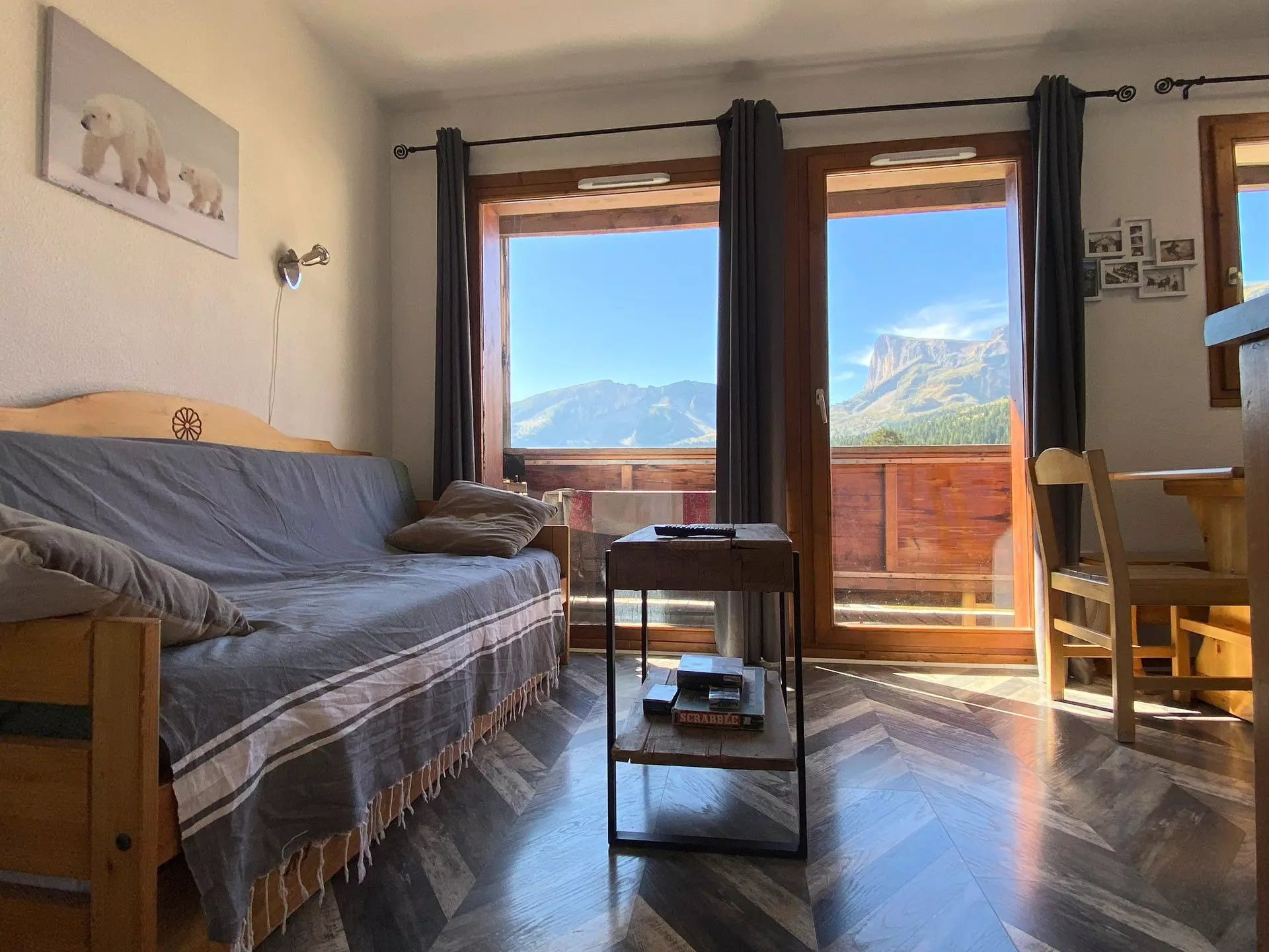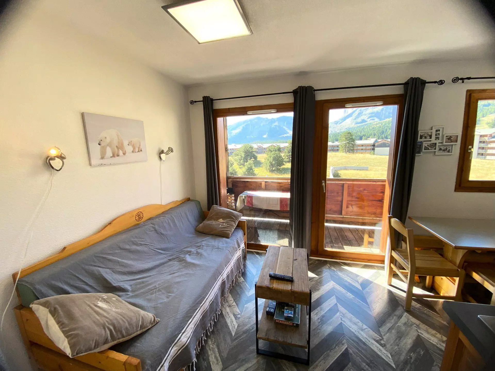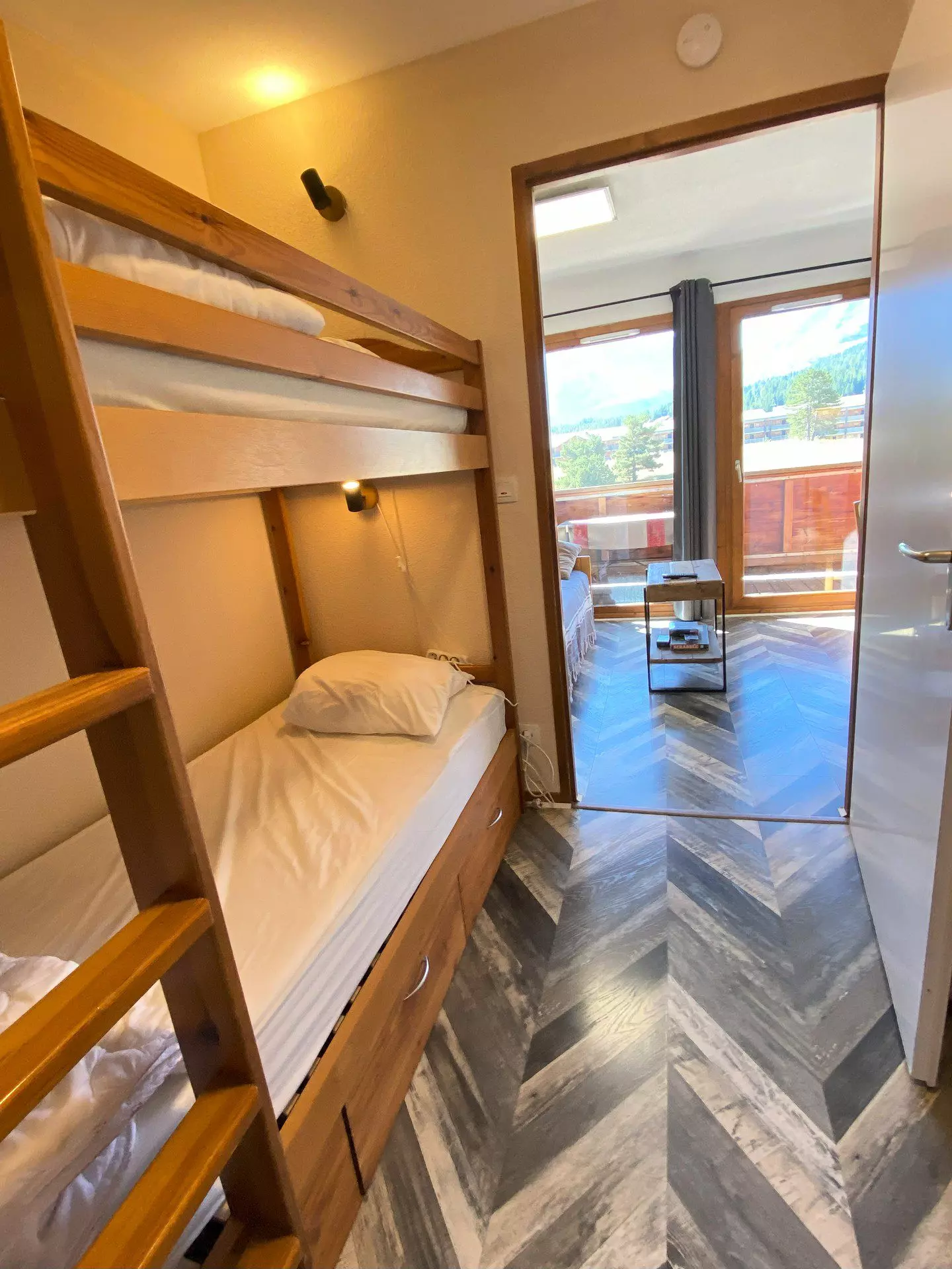 Séjour avec lit gigogne 2 personnes. Coin montagne avec 2 lits superposés. Chambre avec 1 lit deux personnes.