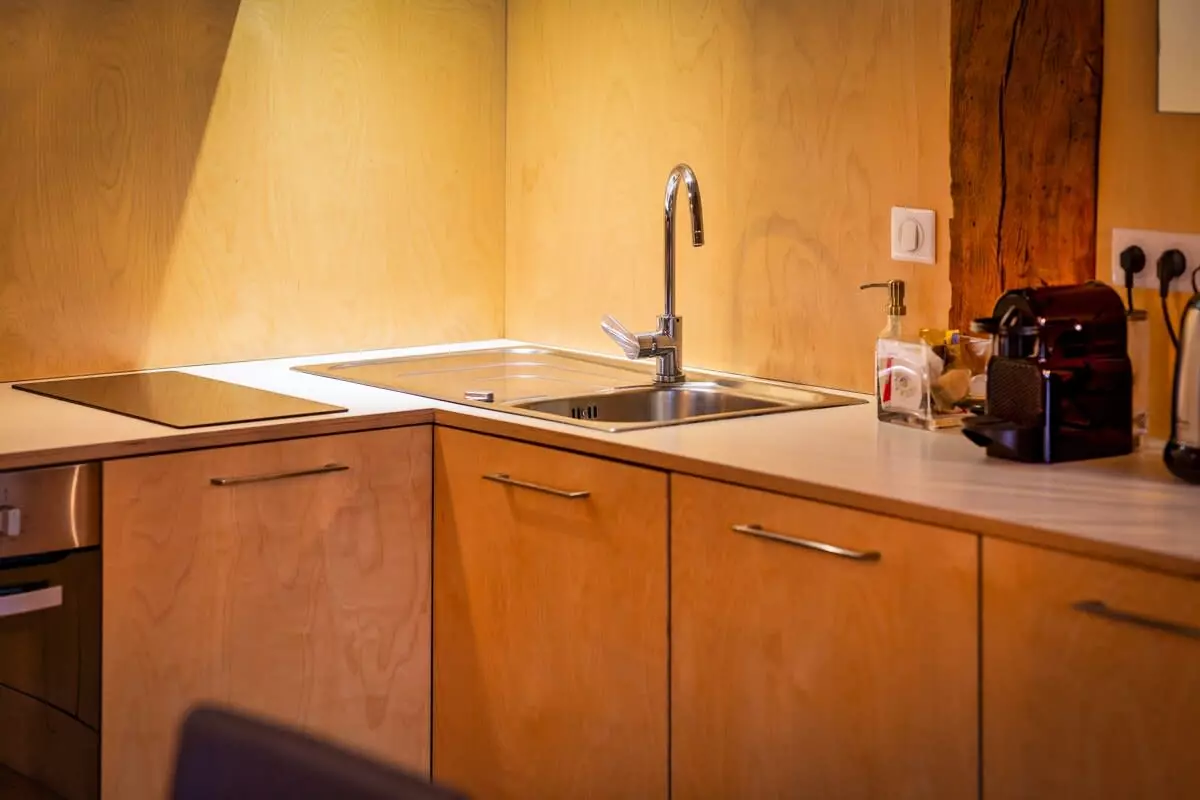 Les cuisines entièrement aménagées et équipées vous propose différents éléments pour préparer vos repas : réfrigérateur, plaques de cuisson, four, bouilloire, cafetière, lave-vaisselle et tout le nécessaire de cuisine.