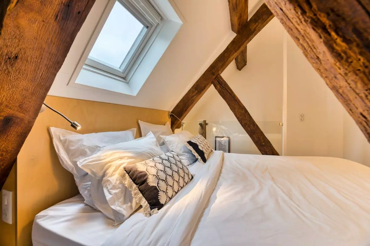Dans chaque chambre, profitez de lits doubles (140*190cm). Dans une des quatre chambres, vous retrouverez également un lit double mais dédié à une seule personne ou deux enfants en bas âge en raison du toit sous pente.