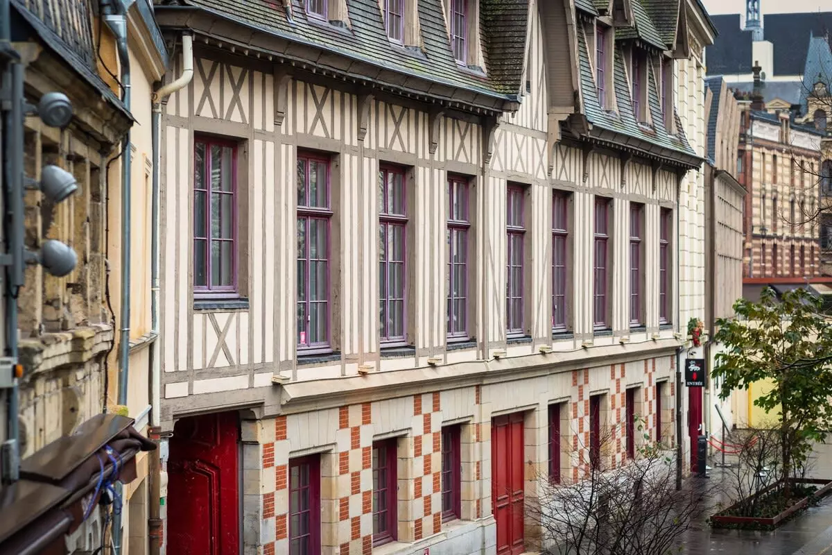 La Place du Vieux-Marché est un centre de vie et de rencontre à Rouen. Aujourd’hui, elle est entourée de bâtiments à colombages typiques de la Normandie, donnant au quartier une atmosphère médiévale unique. Ces maisons à pans de bois sont souvent bien conservées et abritent désormais des cafés, des restaurants et des commerces. Les terrasses de la place sont particulièrement populaires pour profiter de l’ambiance.