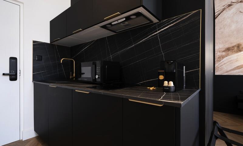 • Kitchenette avec lave-vaisselle, congélateur, réfrigérateur, cuisinière, machine à café