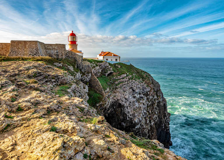 Dans l’après-midi, route vers Sagres. Balayé par le vent, ce Finistère à extrême sud-ouest de l’Europe, tombant à pic dans la mer, est un endroit chargé d’histoire et d’émotion. Découverte de la pointe de Sagres, en partie occupée par la forteresse - célèbre pour sa beauté unique et qui doit son origine à l'infant D. Henrique, le navigateur. Continuation vers le Cap Saint Vincent – la pointe la plus au sud-ouest de l'Europe, un lieu magique avec ses imposantes falaises irrégulières et son promontoire de 100 mètres de longueur.