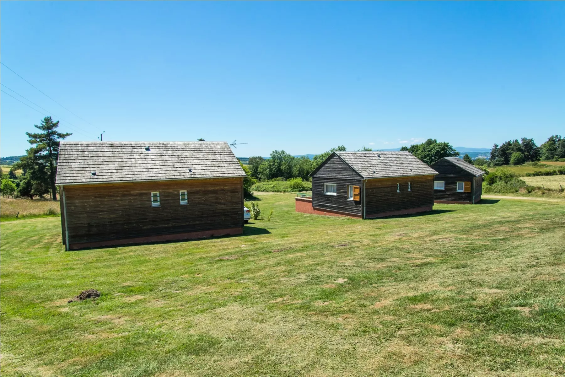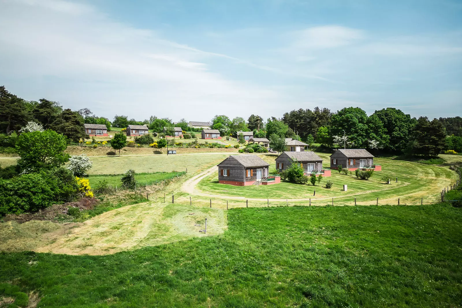 Chalets de 46m² pour 4 à 6 personnes disposant d'un coin cuisine équipée (plaques électriques, four, lave-vaisselle, micro-ondes, réfrigérateur/congélateur, bouilloire, grille-pain, cafetière, lave-linge, fer et table à repasser, aspirateur), d'un séjour avec une télévision et un canapé lit double (140x190), d'une chambre avec un lit double (140x190), d'une chambre avec deux lits simples (90x190), d'une salle d'eau et d'un WC séparé. Terrasse avec salon de jardin. Pas de wifi.