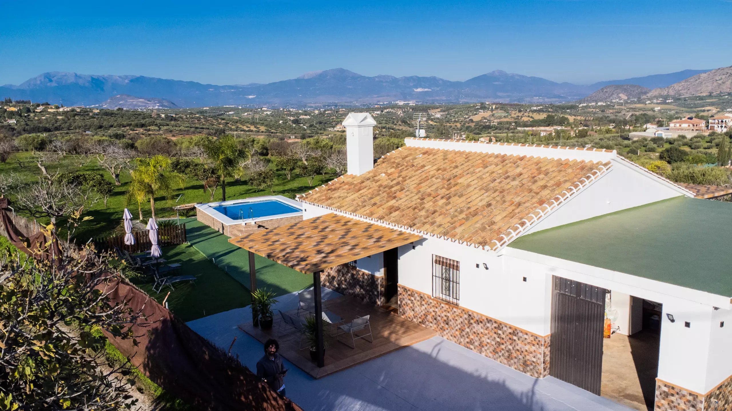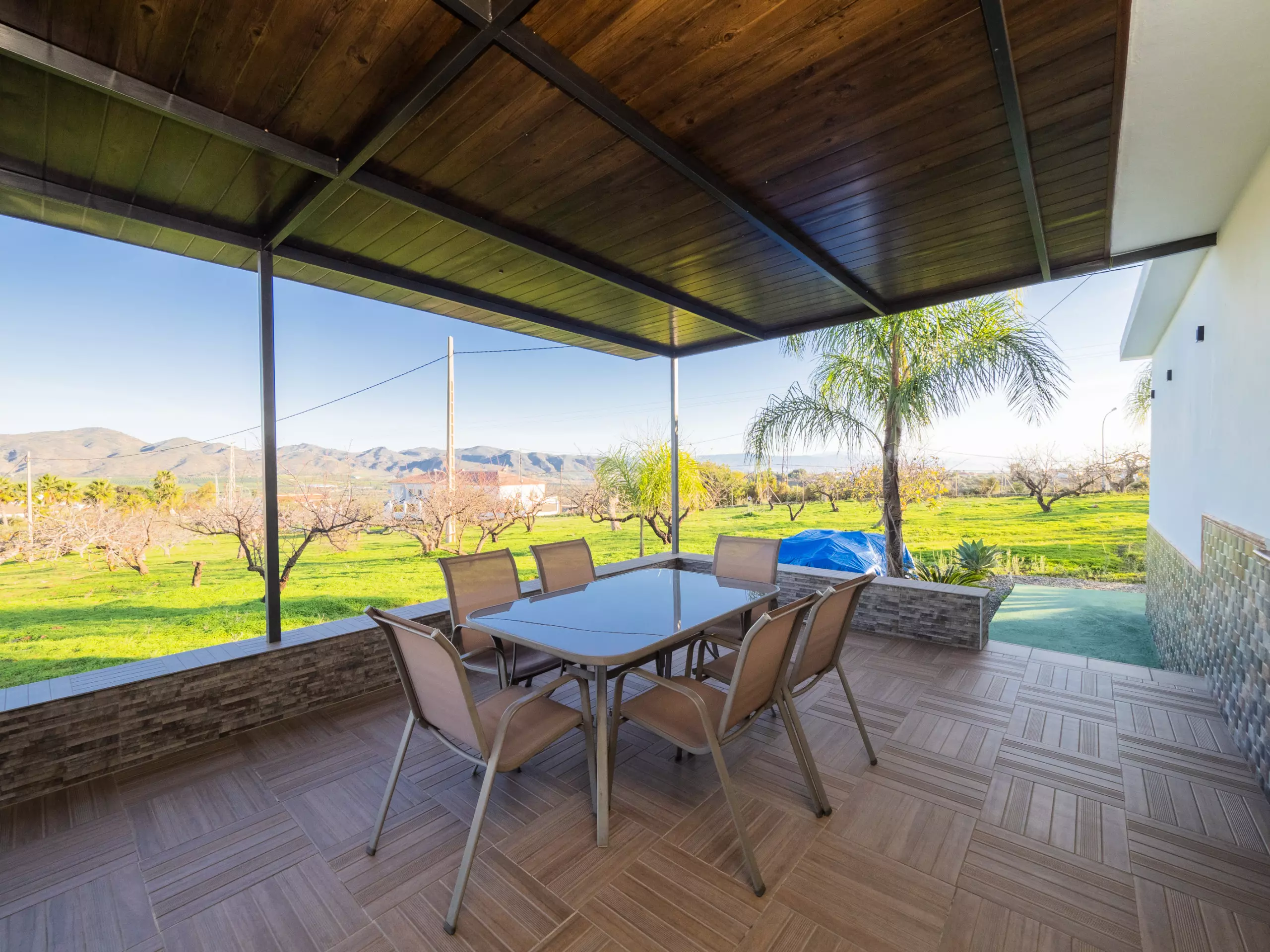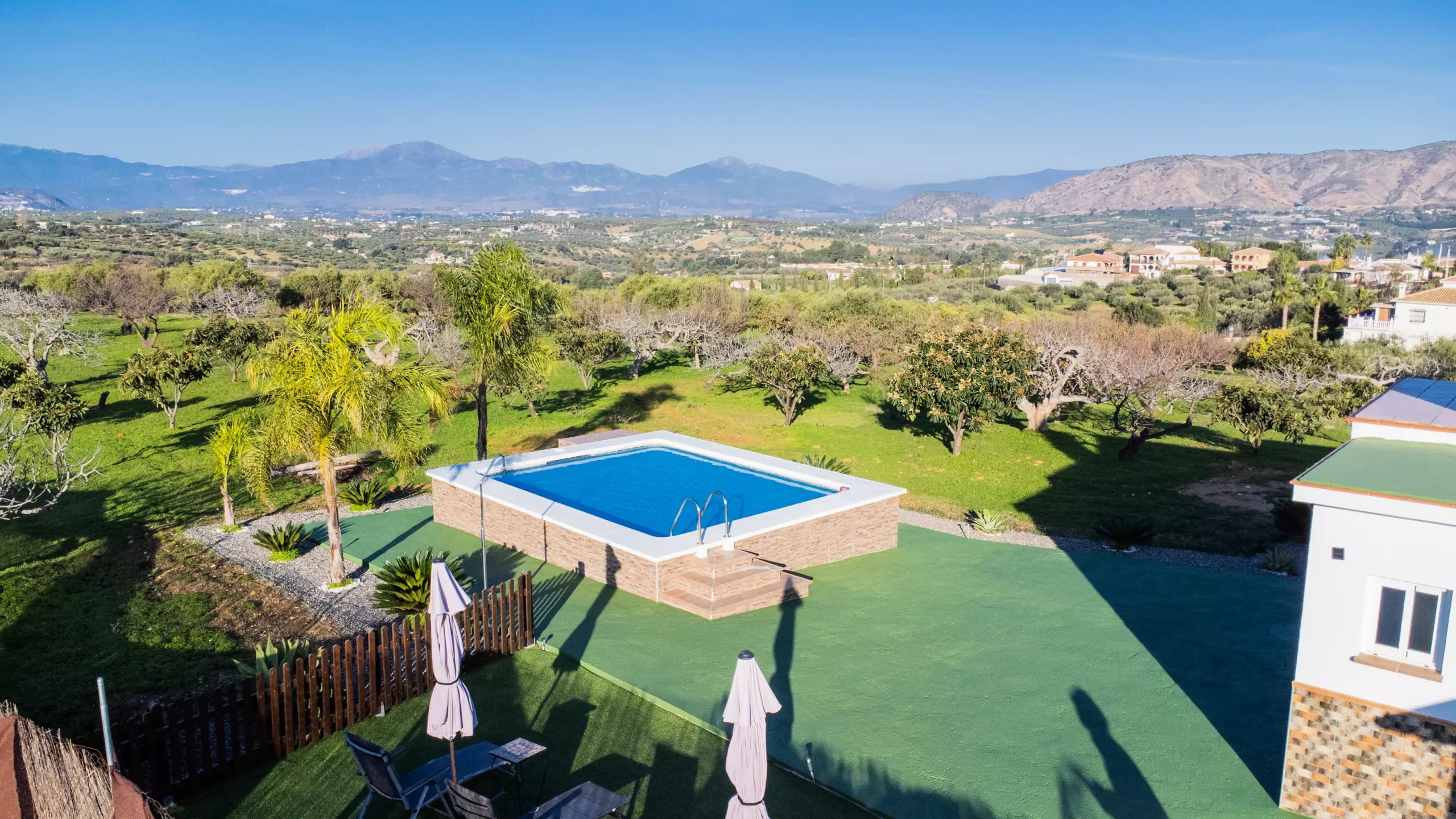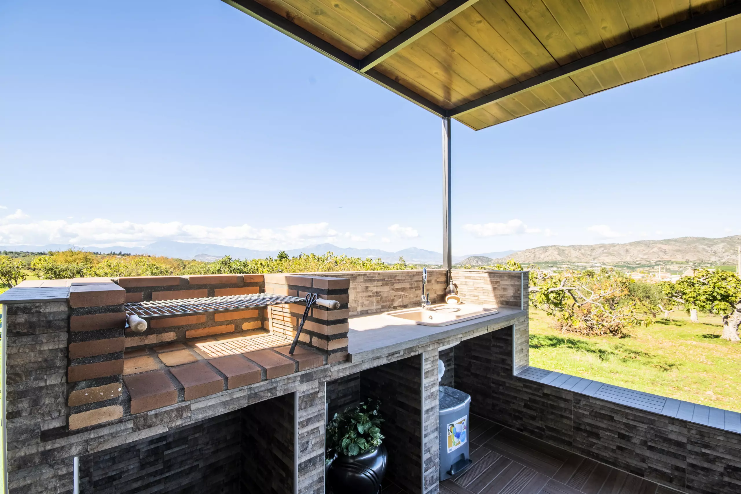 La maison est située sur un grand terrain privé et clôturé, entourée d'arbres offrant intimité et ombre. Elle se distingue par une large terrasse couverte avec barbecue pour profiter de repas en plein air et une piscine privée avec chaises longues et parasols, située à un niveau supérieur pour plus de sécurité, spécialement conçue pour les enfants. Les vues depuis la maison sont spectaculaires et l'ambiance calme, dans une zone rurale idéale pour les familles.