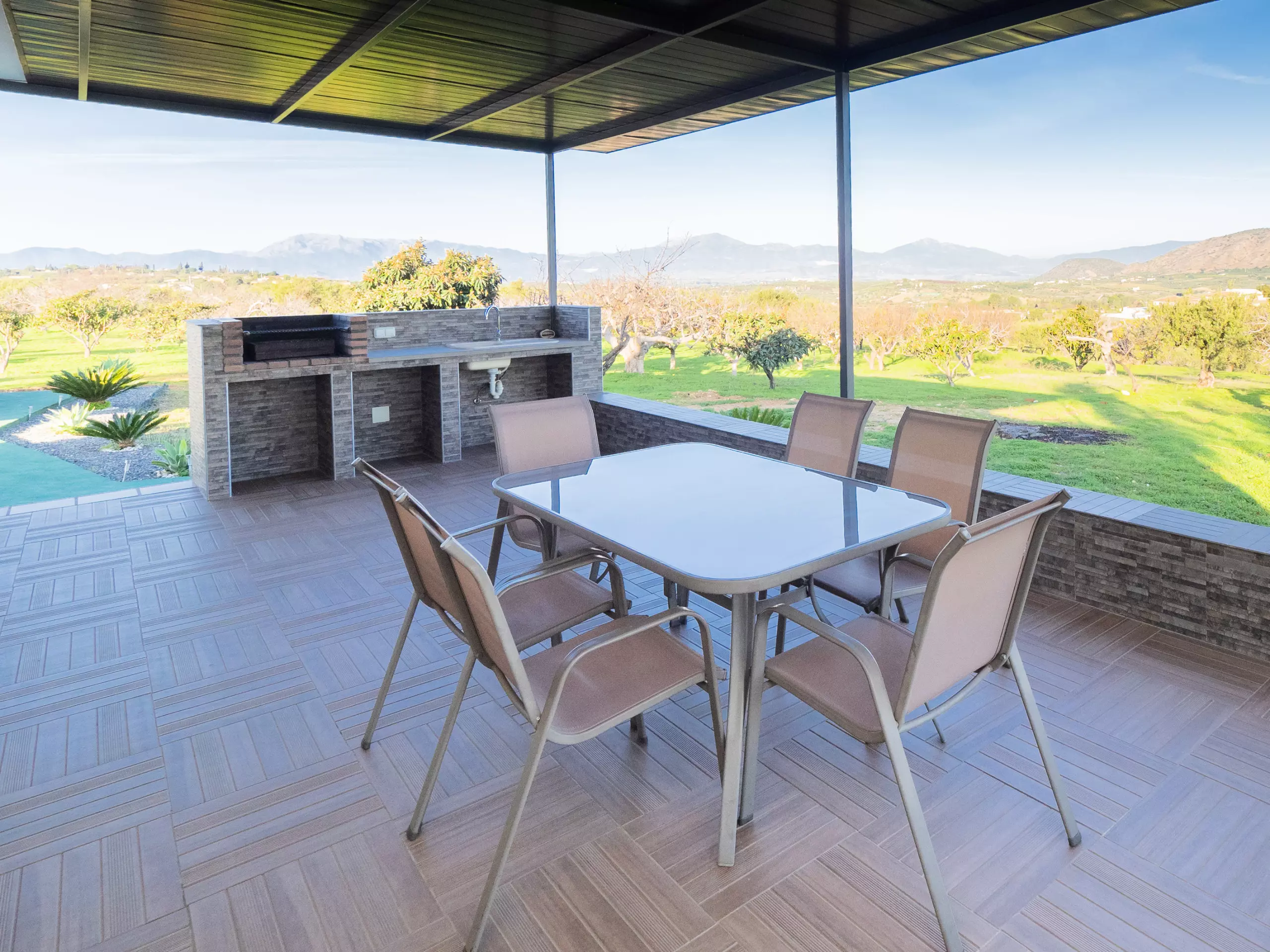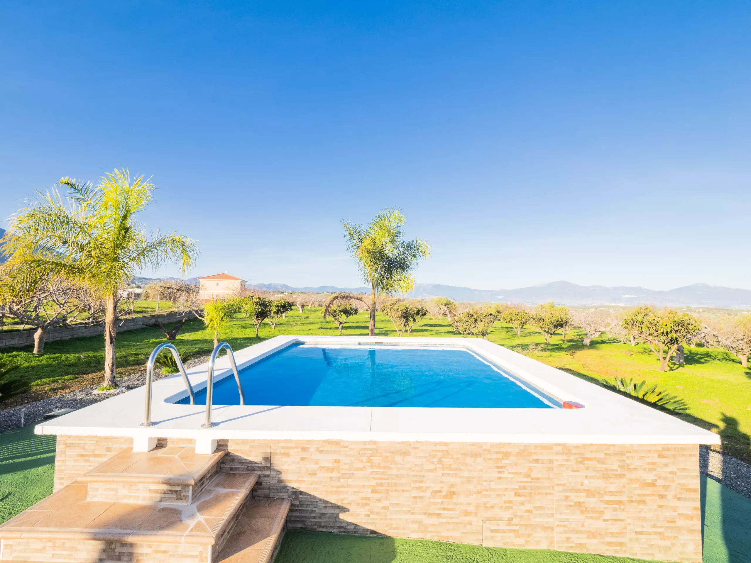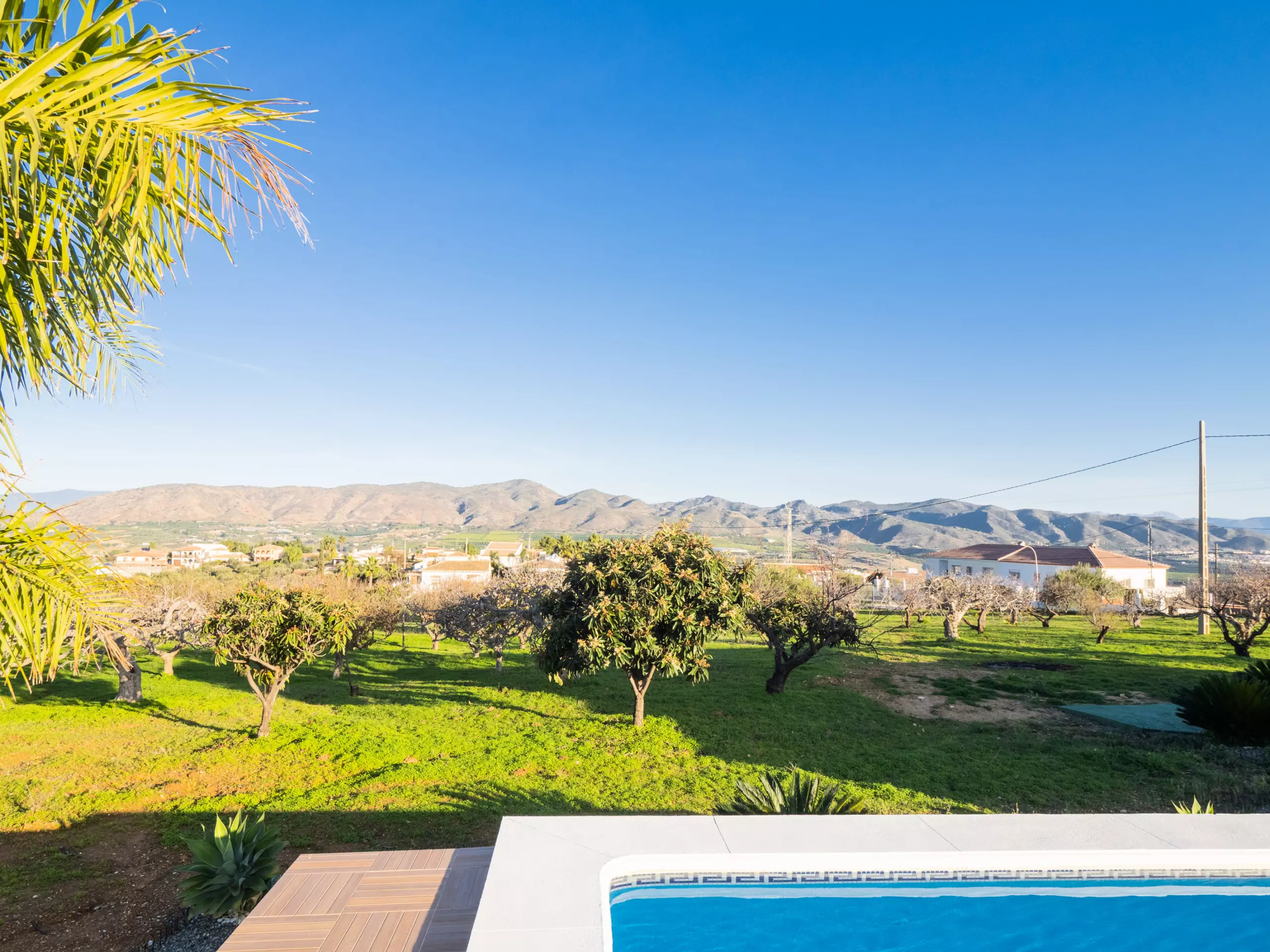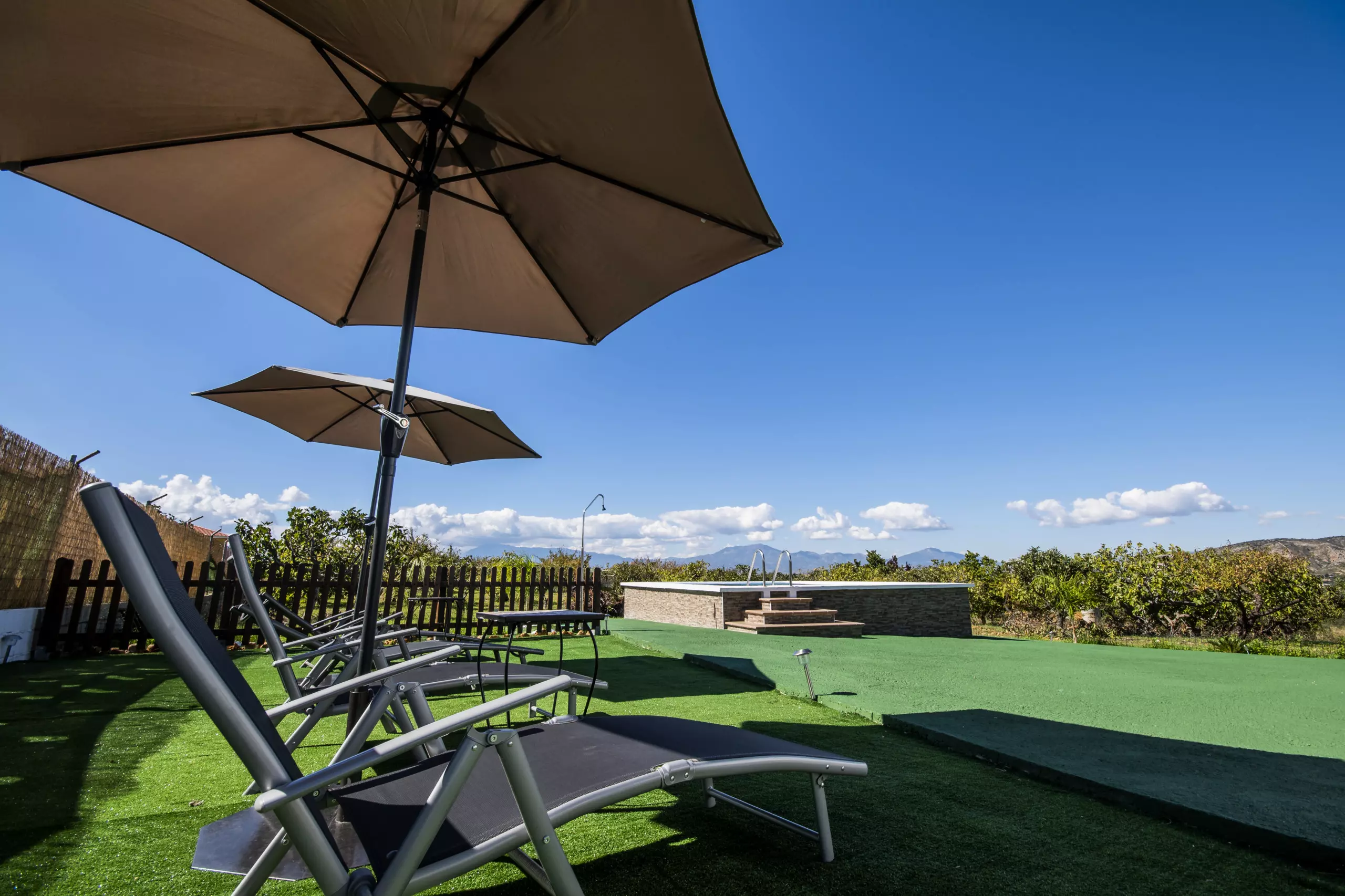 La maison est située sur un grand terrain privé et clôturé, entourée d'arbres offrant intimité et ombre. Elle se distingue par une large terrasse couverte avec barbecue pour profiter de repas en plein air et une piscine privée avec chaises longues et parasols, située à un niveau supérieur pour plus de sécurité, spécialement conçue pour les enfants. Les vues depuis la maison sont spectaculaires et l'ambiance calme, dans une zone rurale idéale pour les familles.