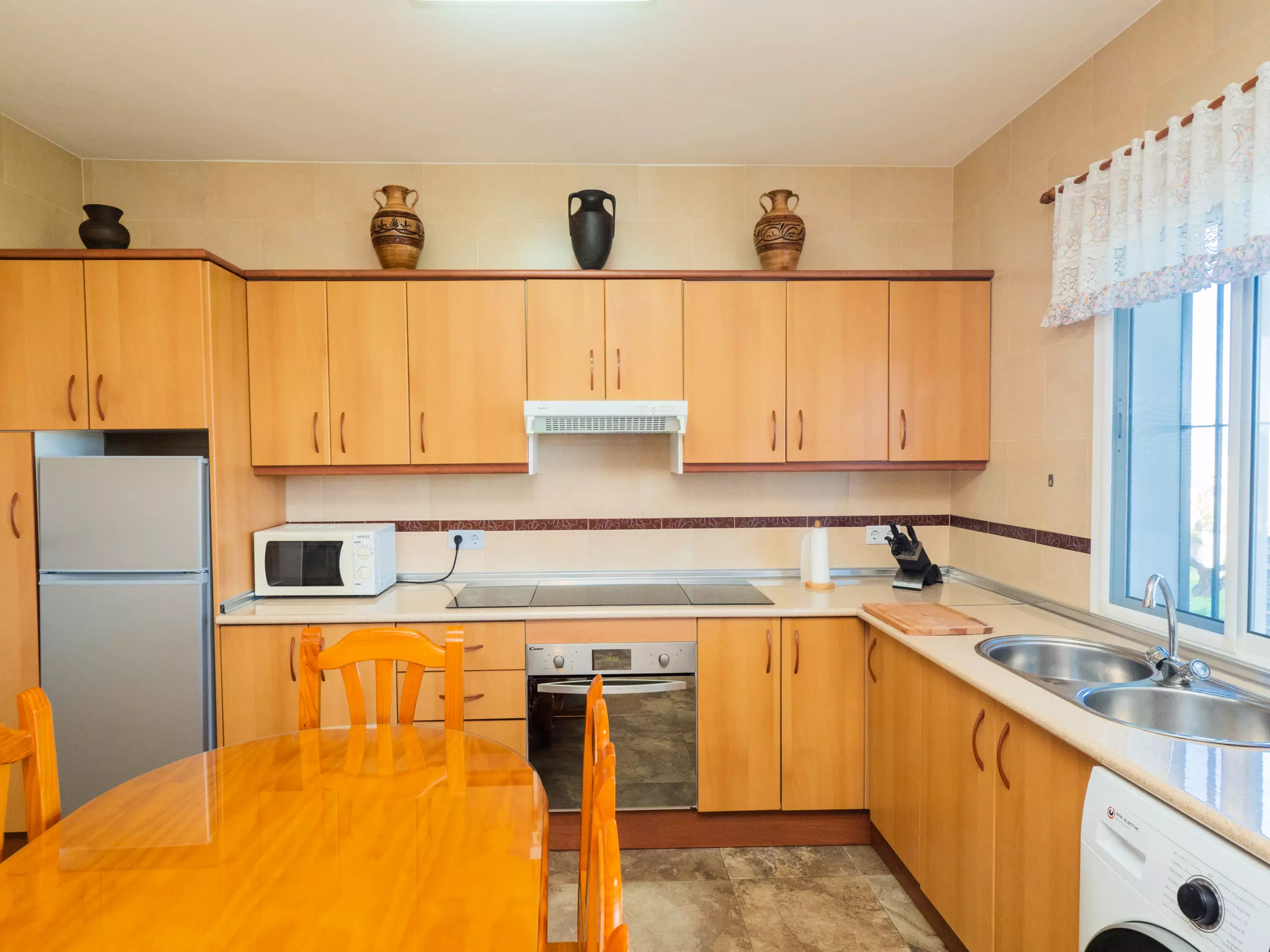 La cuisine est entièrement équipée avec tout le nécessaire : couverts, vaisselle, ustensiles, cafetière, bouilloire, presse-agrumes, friteuse, four et micro-ondes, ainsi qu'un lave-linge pour des séjours plus longs. Le logement dispose d'une salle de bain intérieure avec douche et d'une salle de bain extérieure qui accompagne la piscine, facilitant son utilisation pendant les journées de piscine.