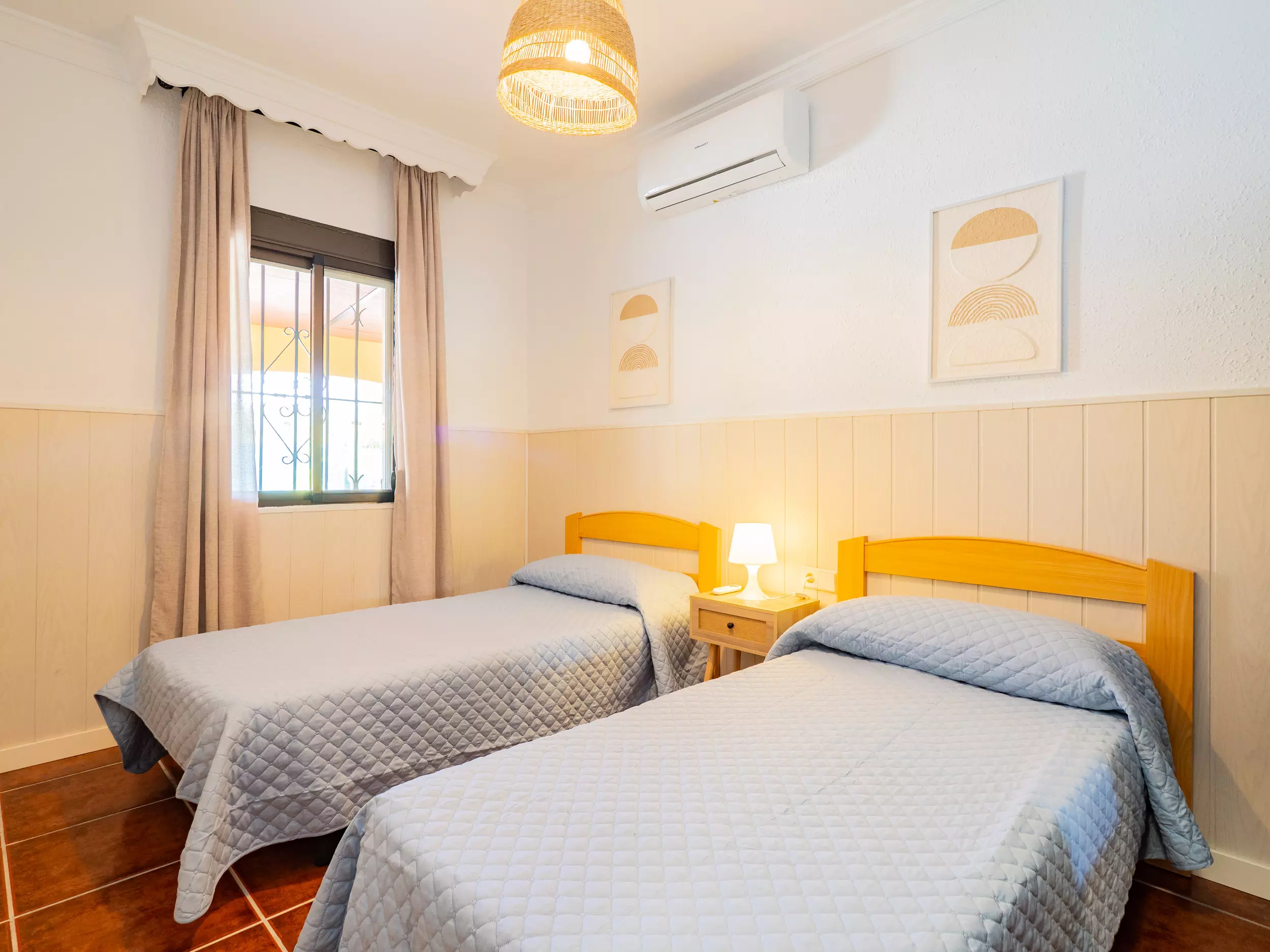 Profitez d'un séjour parfait dans cette maison de campagne pour 6 personnes, située sur un terrain privé de 1 300 m² avec piscine, jardin et zone de barbecue. Cette maison combine détente et amusement dans un environnement familial, avec un espace pour se relaxer du lever au coucher du soleil sous le soleil de Malaga. La maison dispose de trois chambres doubles, deux avec un lit de couple et une avec deux lits individuels, idéale pour les familles ou les petits groupes. De plus, elle comprend une salle de bain complète avec baignoire et un toilette supplémentaire pour plus de commodité.