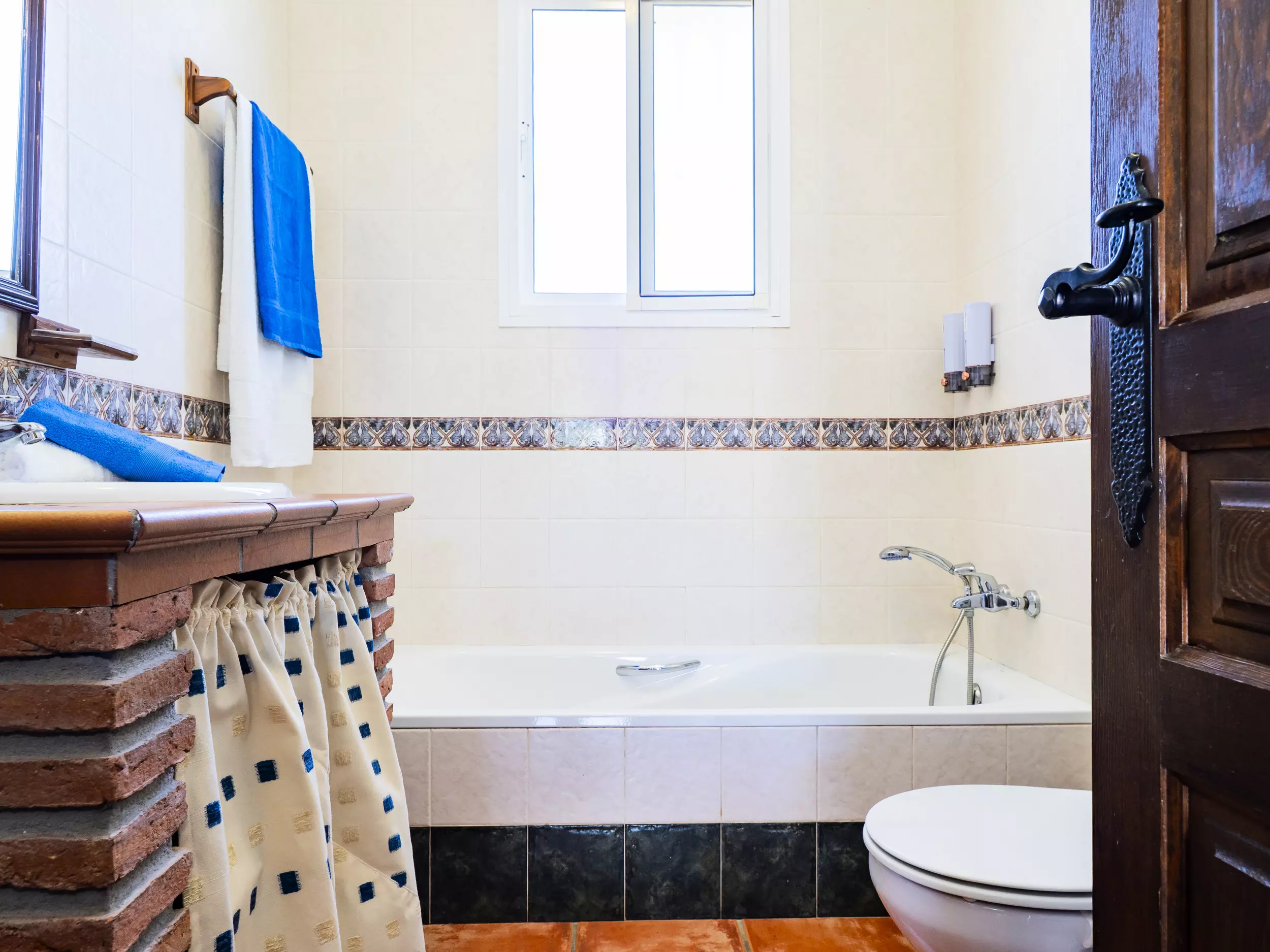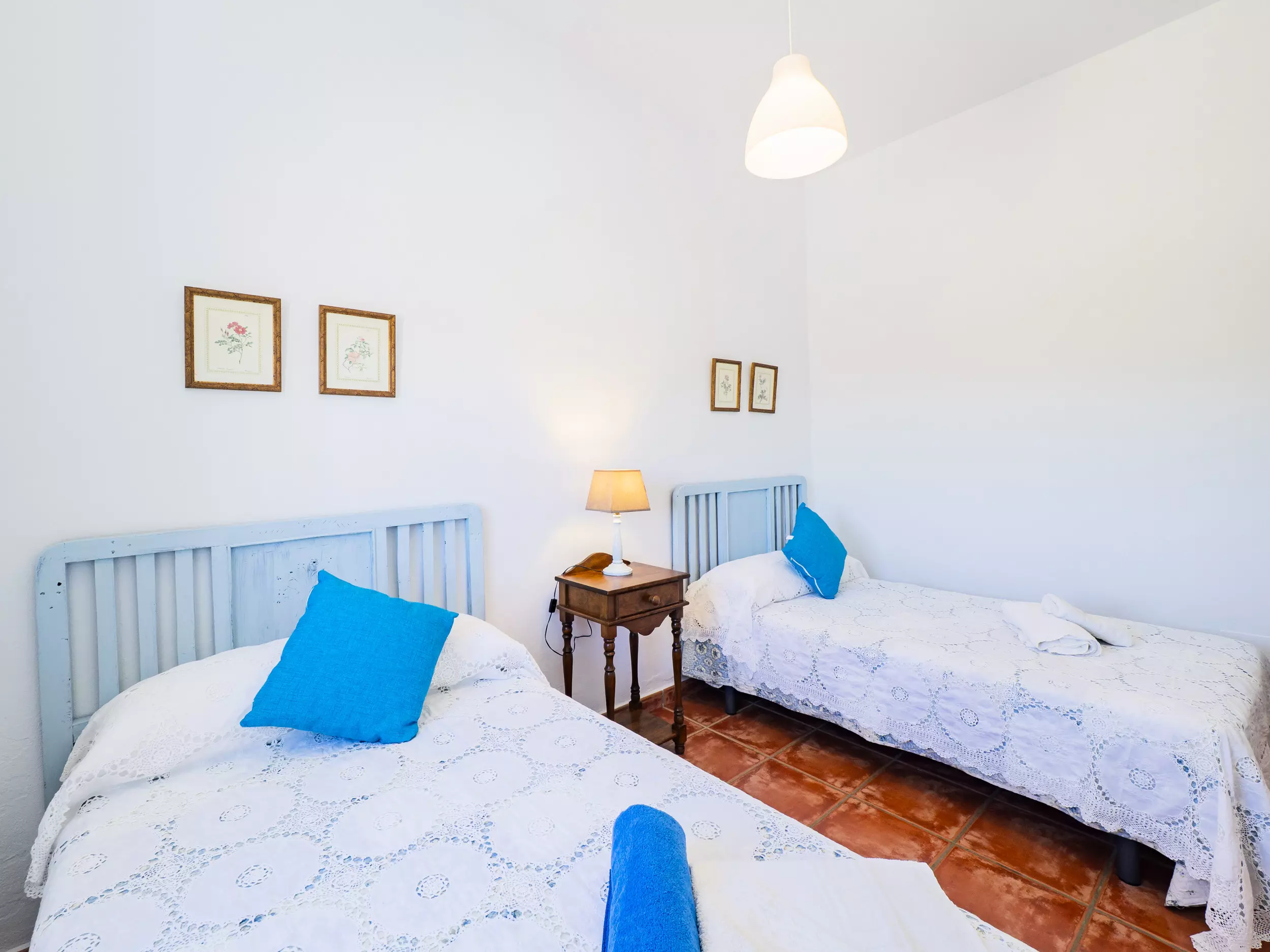 La distribution comprend une chambre principale avec un lit double (1,50 m), une deuxième chambre avec deux lits individuels (1,05 m chacun) et un canapé-lit double dans le salon, idéal pour héberger jusqu'à 6 personnes ?. La maison dispose de deux salles de bains, l'une avec baignoire et l'autre avec douche, pour plus de confort.