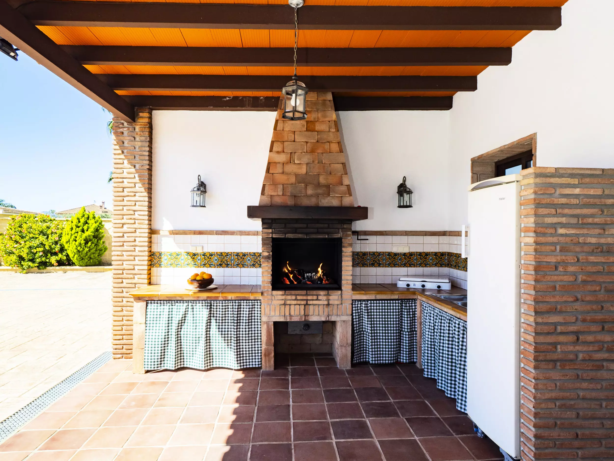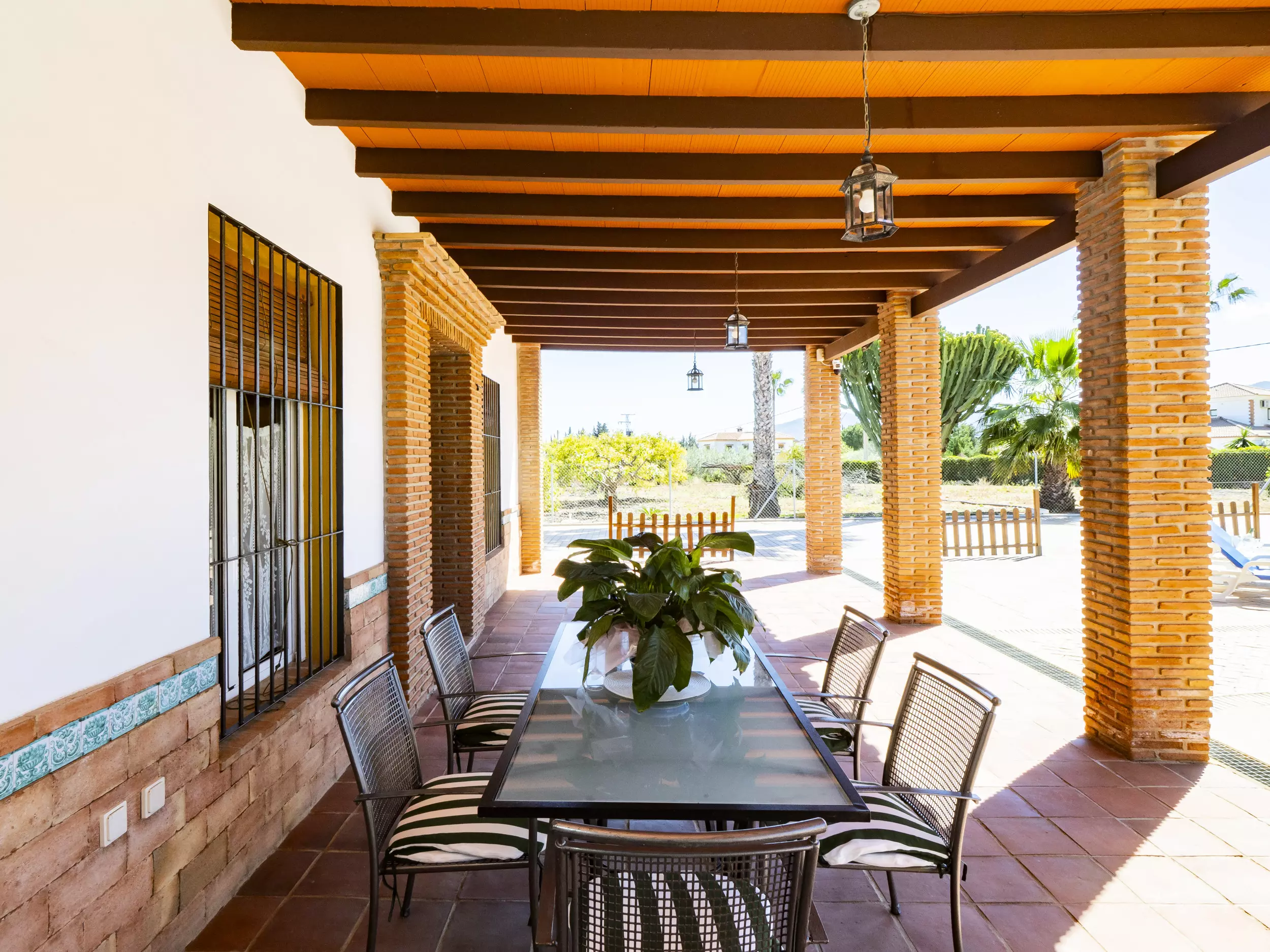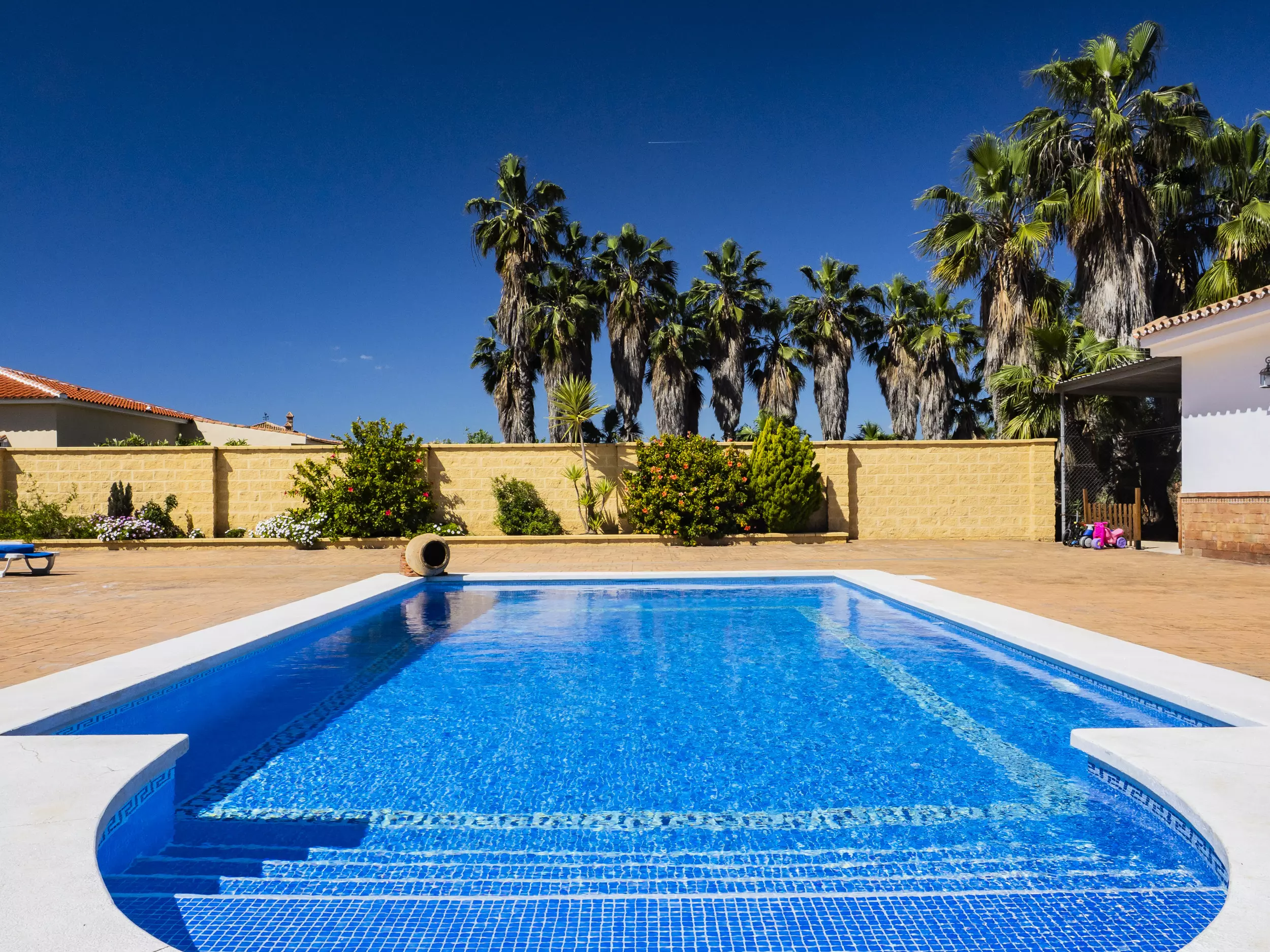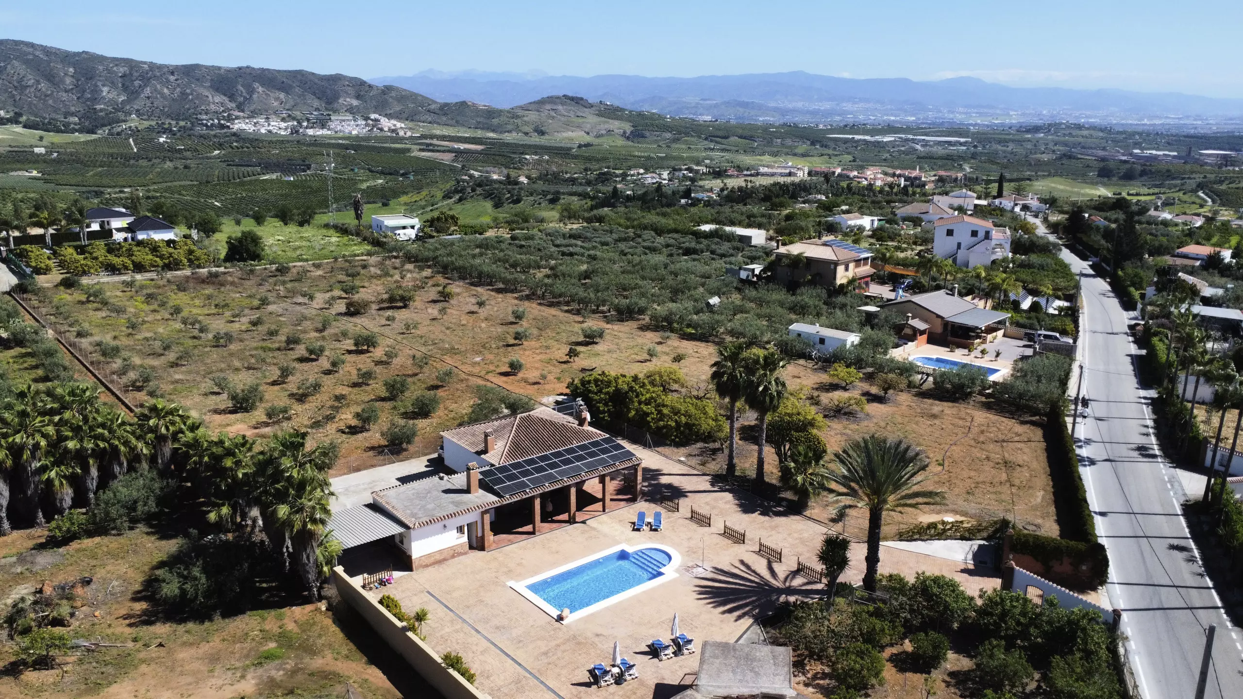 La propriété dispose d'une piscine privée entourée de chaises longues et de parasols pour se rafraîchir lors des journées ensoleillées ?. De plus, elle comprend une zone de barbecue équipée de plaques de cuisson et d'un réfrigérateur, idéale pour de délicieux repas en plein air ?. Pour le repos et la déconnexion, le jardin et la terrasse sont des espaces parfaits, tandis que le terrain de football et les jeux garantissent du divertissement pour les grands et les petits ?. Pour plus de commodité, le logement offre un parking couvert pour trois voitures et une entrée privée avec portail automatique ?.