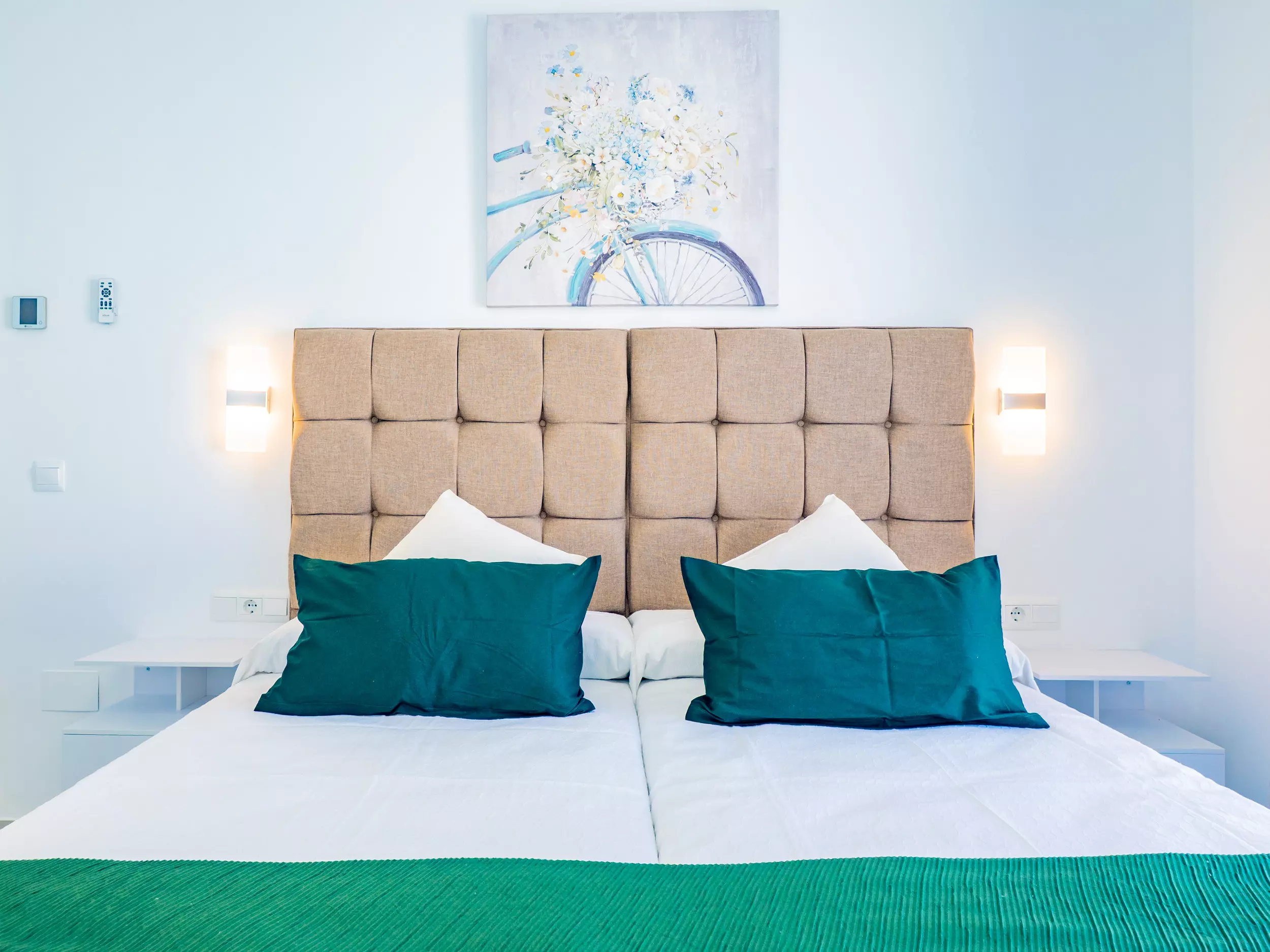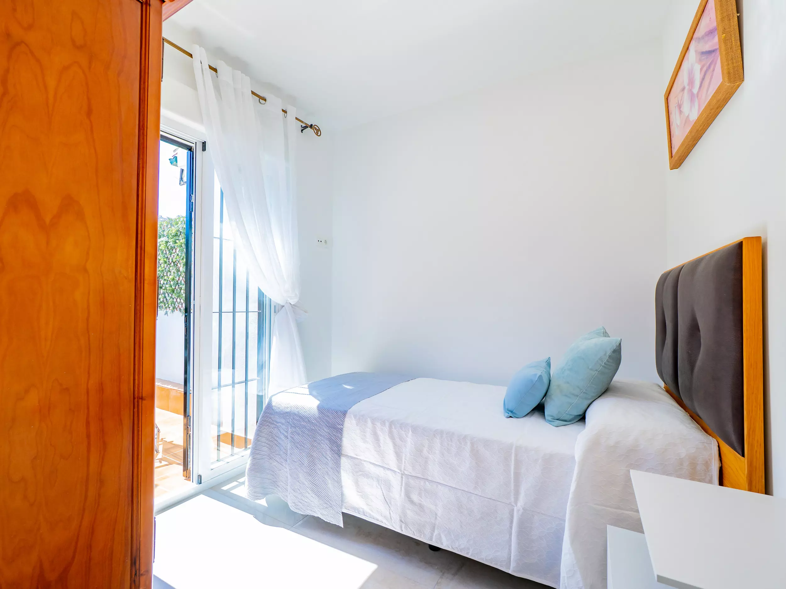 - Trois chambres : une avec un lit de couple, une individuelle avec sortie sur une terrasse privée de 10 m² pour profiter de l'air frais et une autre avec deux lits individuels.