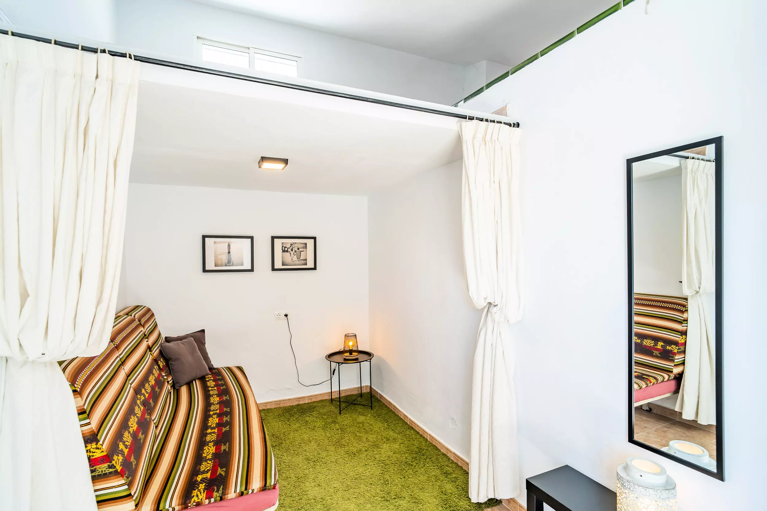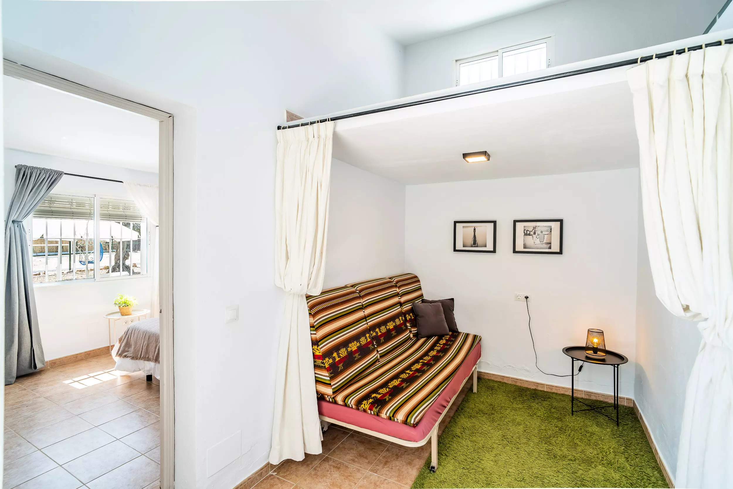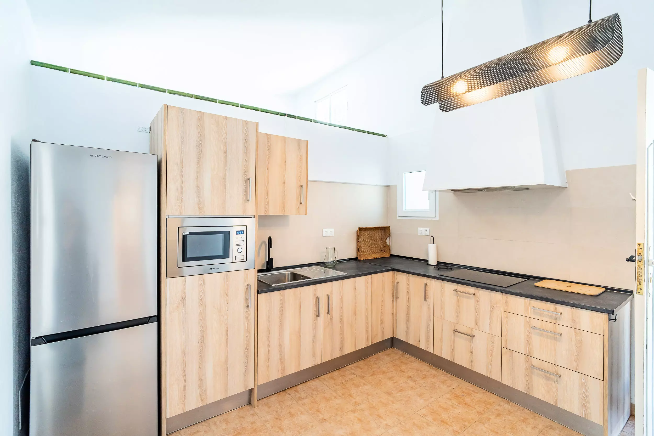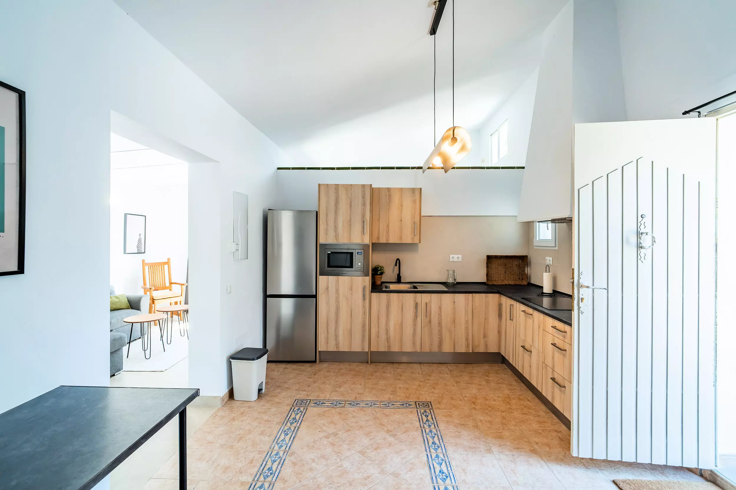Le logement est conçu en pensant au confort familial avec deux accès indépendants, l'un par la cuisine et l'autre par le salon-salle à manger. La cuisine est spacieuse et équipée de tout ce qui est nécessaire pour préparer des repas pour de grands groupes, y compris un réfrigérateur, un four, un micro-ondes, une cafetière et plus encore ??. Le salon-salle à manger, qui communique directement avec l'extérieur, dispose d'un canapé-lit double confortable pour héberger deux personnes supplémentaires.