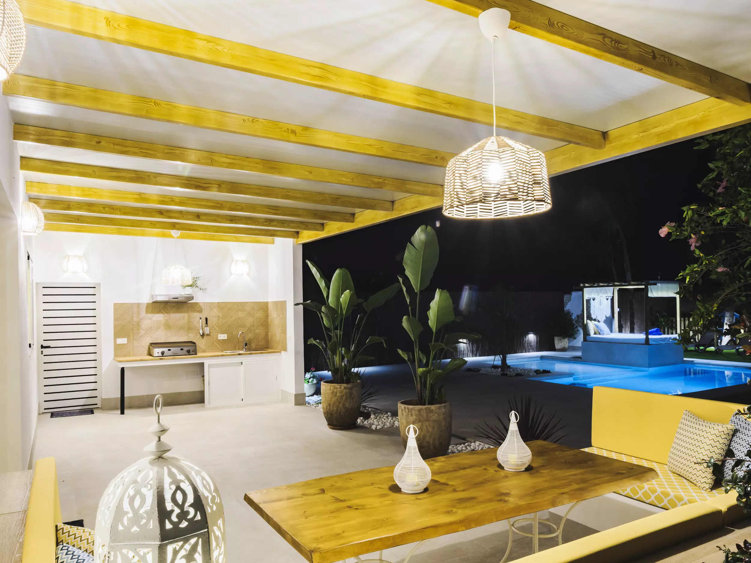 - Salle de bain intérieure complète avec douche et une salle de bain extérieure supplémentaire pour plus de commodité près de la piscine.