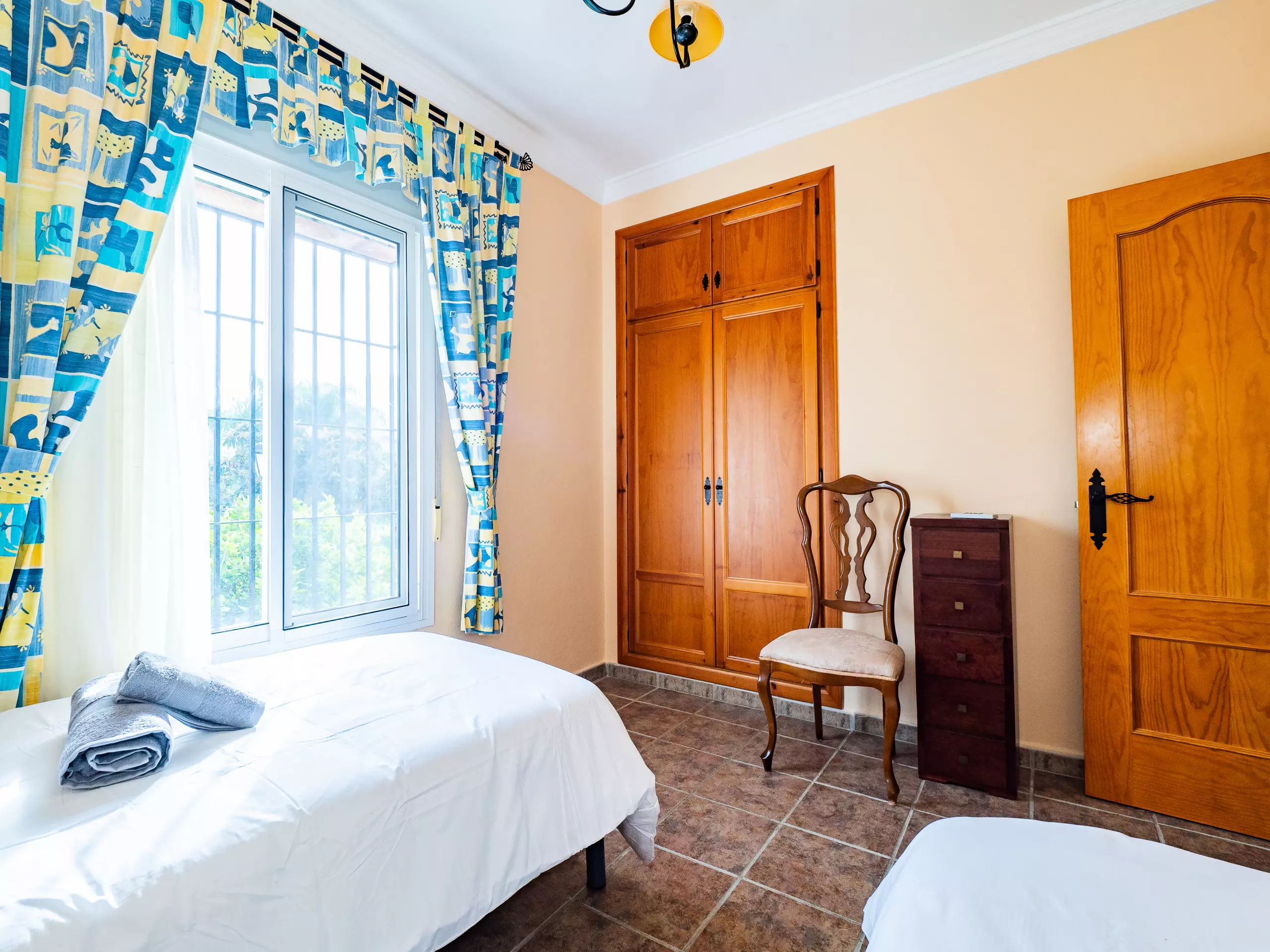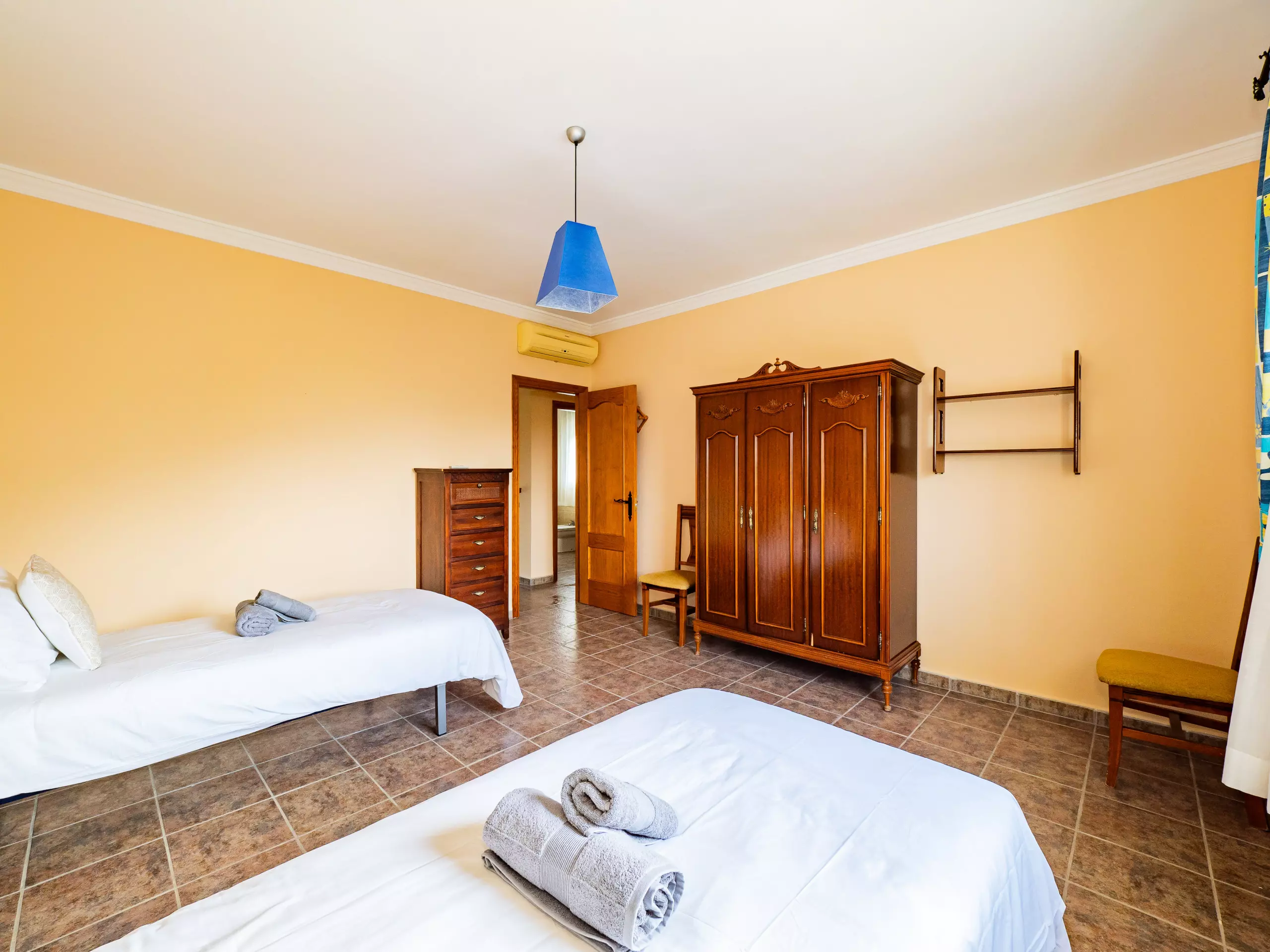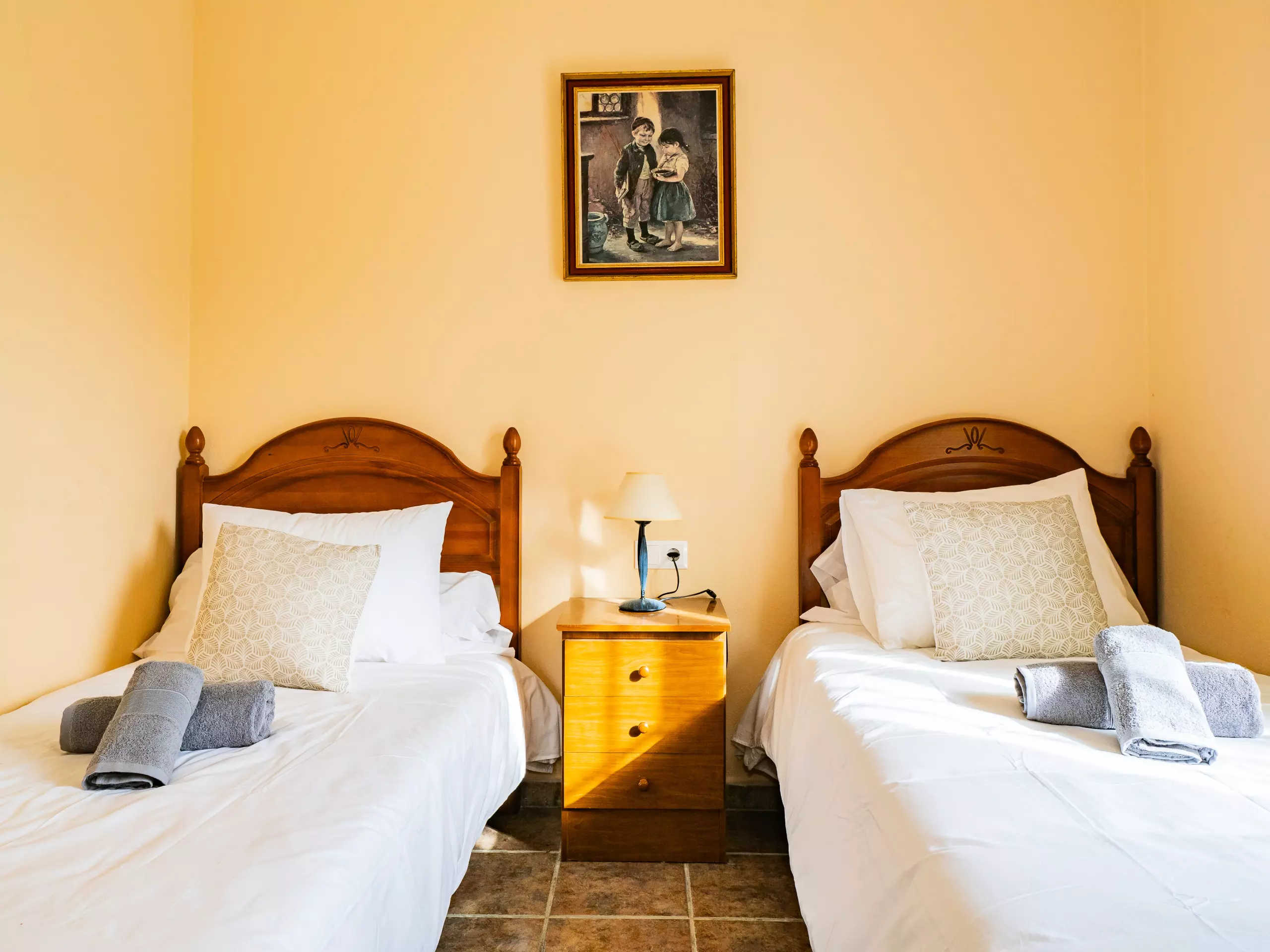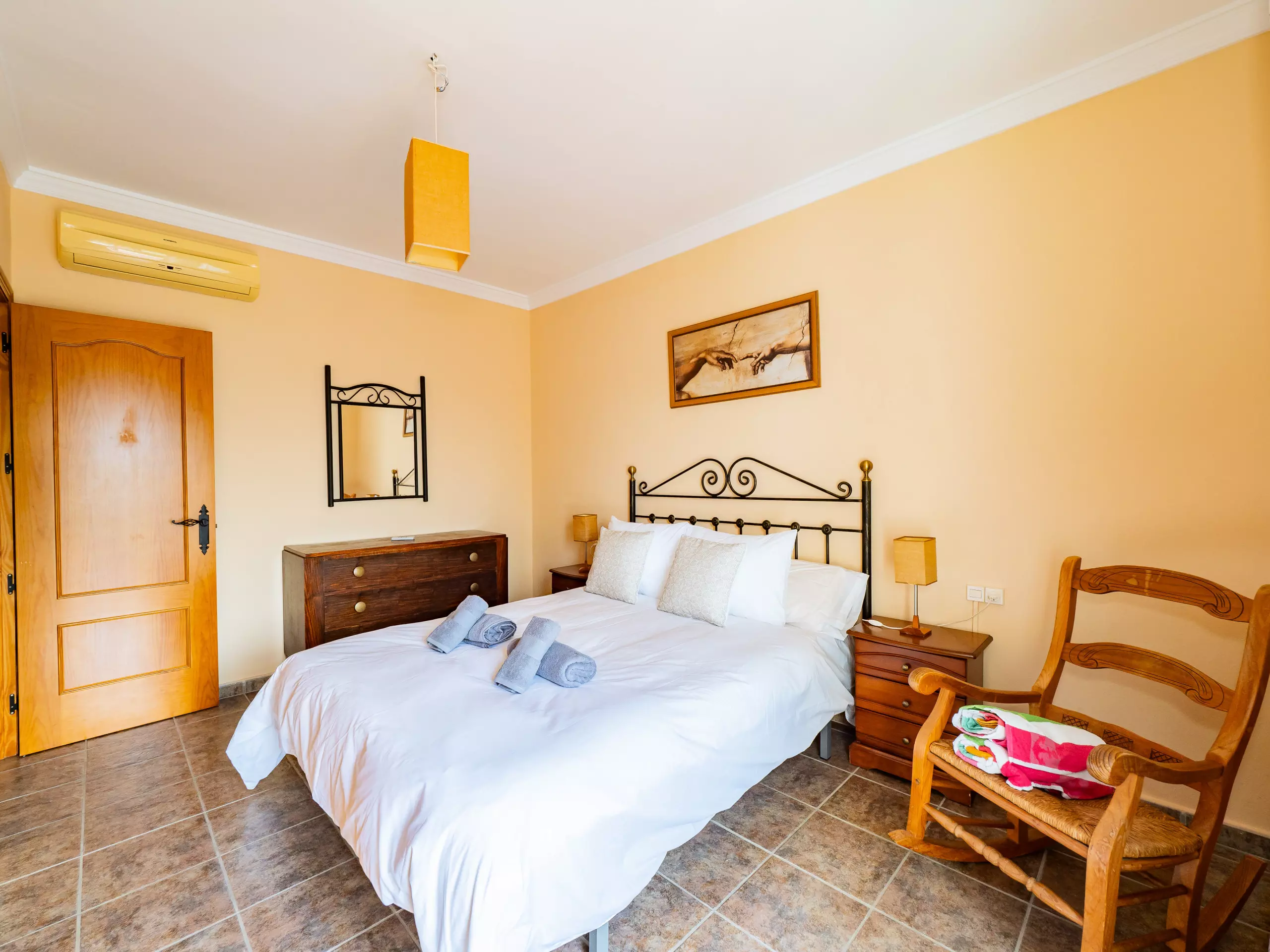 Répartie sur deux étages, la maison offre un vaste espace de 280 m² avec quatre chambres et une capacité d'accueil jusqu'à huit invités. Au rez-de-chaussée, vous trouverez deux chambres ? l'une avec un lit de couple et l'autre avec deux lits individuels ? ainsi qu'une salle de bain avec une douche. L'étage supérieur comprend deux autres chambres (l'une avec un lit de couple et une terrasse privée pour profiter du soleil et de la vue, et l'autre avec deux lits individuels) et une salle de bain avec baignoire. ??