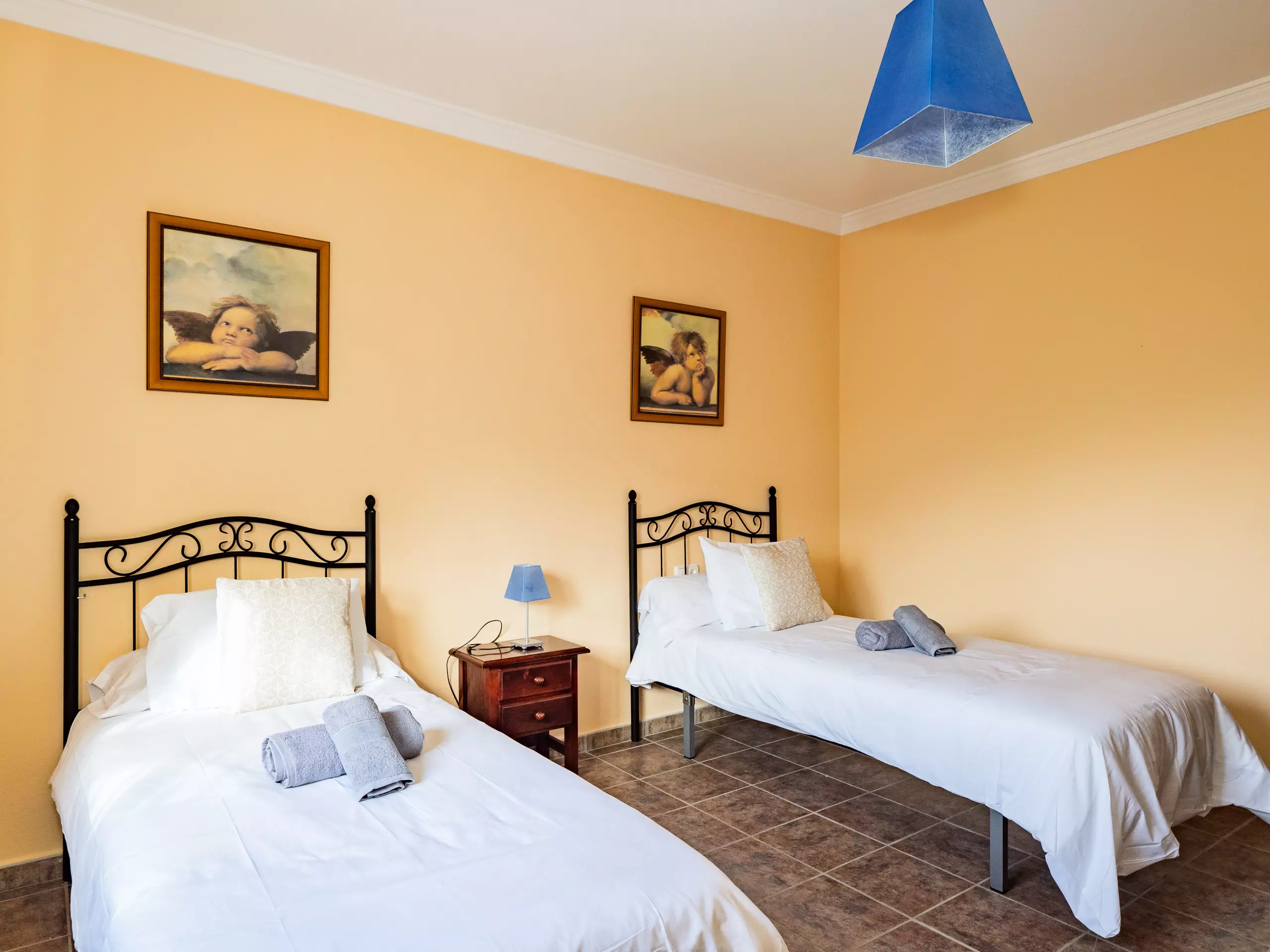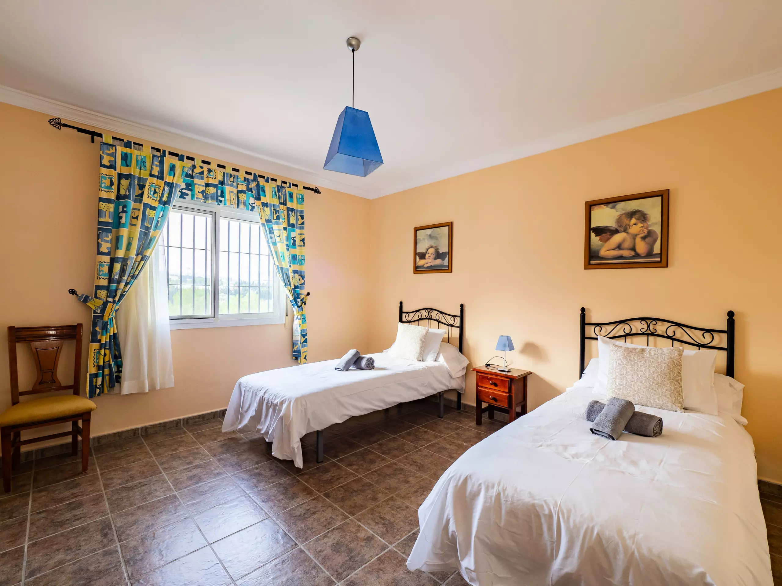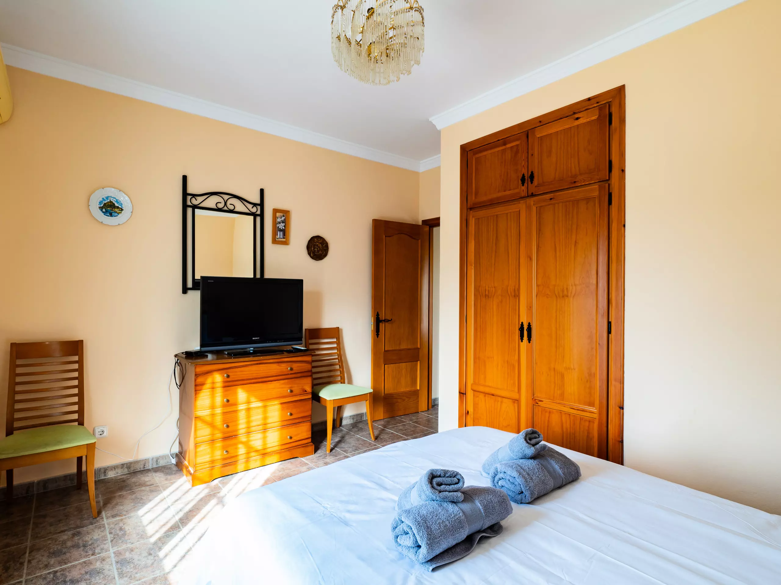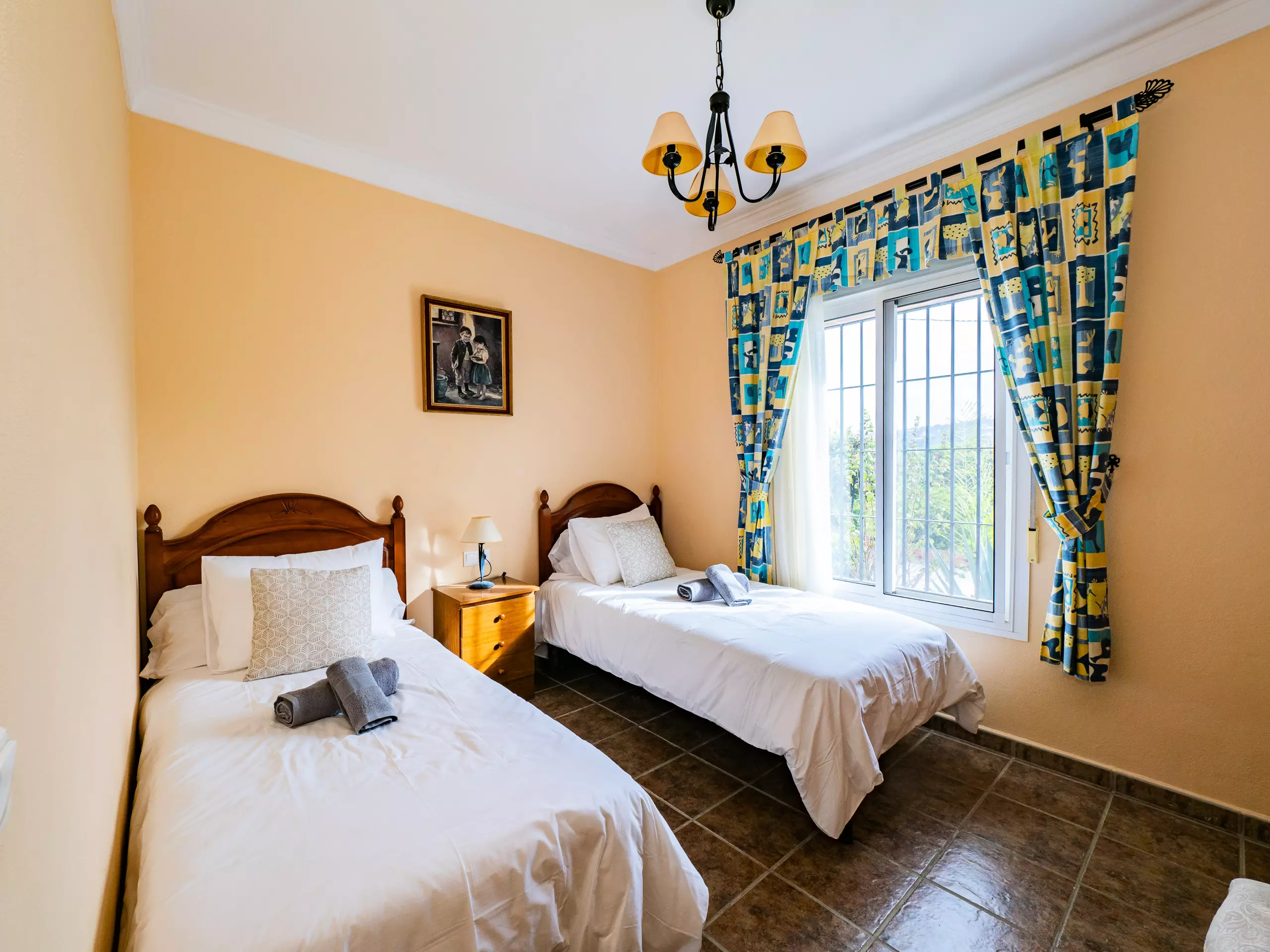 Répartie sur deux étages, la maison offre un vaste espace de 280 m² avec quatre chambres et une capacité d'accueil jusqu'à huit invités. Au rez-de-chaussée, vous trouverez deux chambres ? l'une avec un lit de couple et l'autre avec deux lits individuels ? ainsi qu'une salle de bain avec une douche. L'étage supérieur comprend deux autres chambres (l'une avec un lit de couple et une terrasse privée pour profiter du soleil et de la vue, et l'autre avec deux lits individuels) et une salle de bain avec baignoire. ??