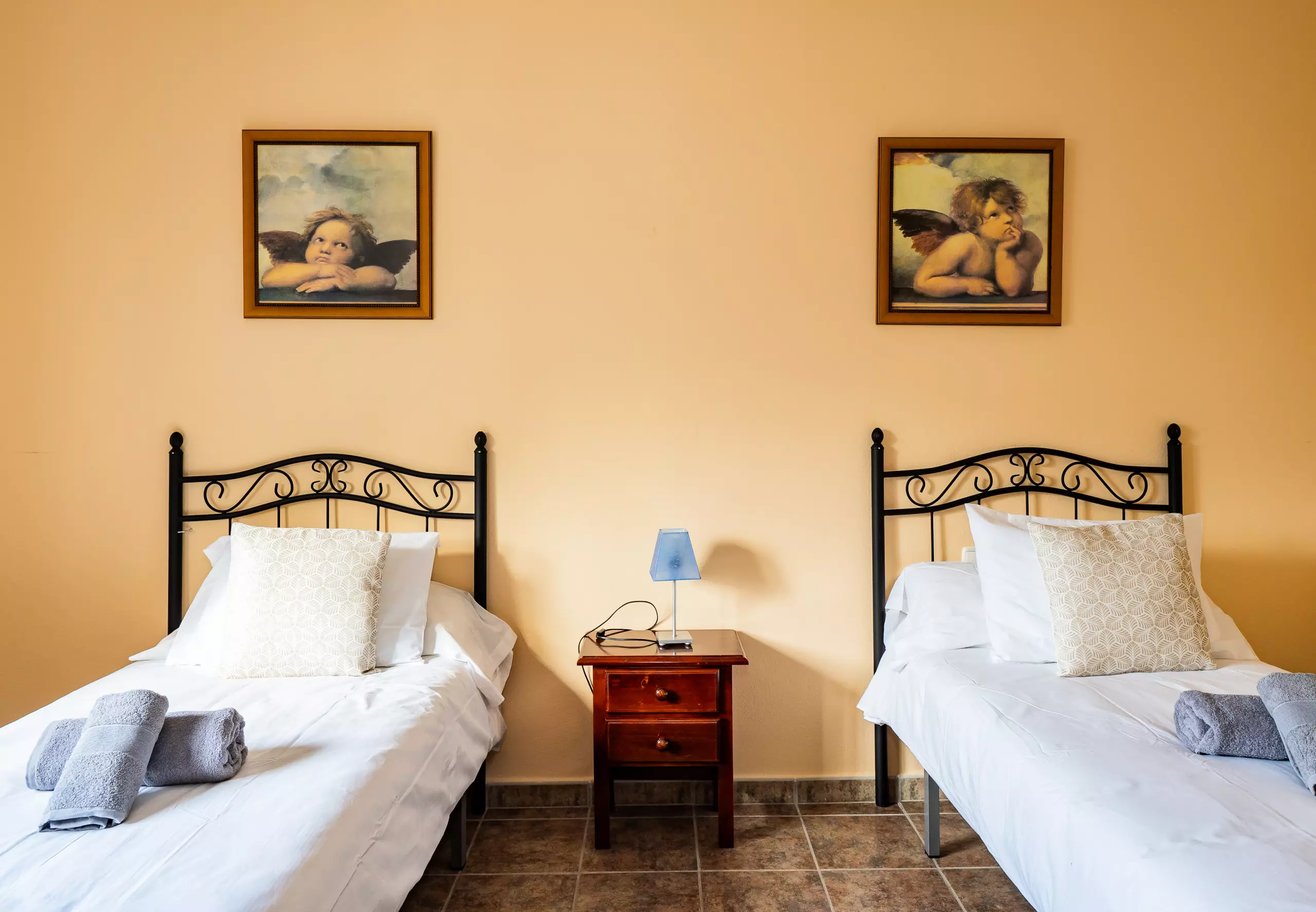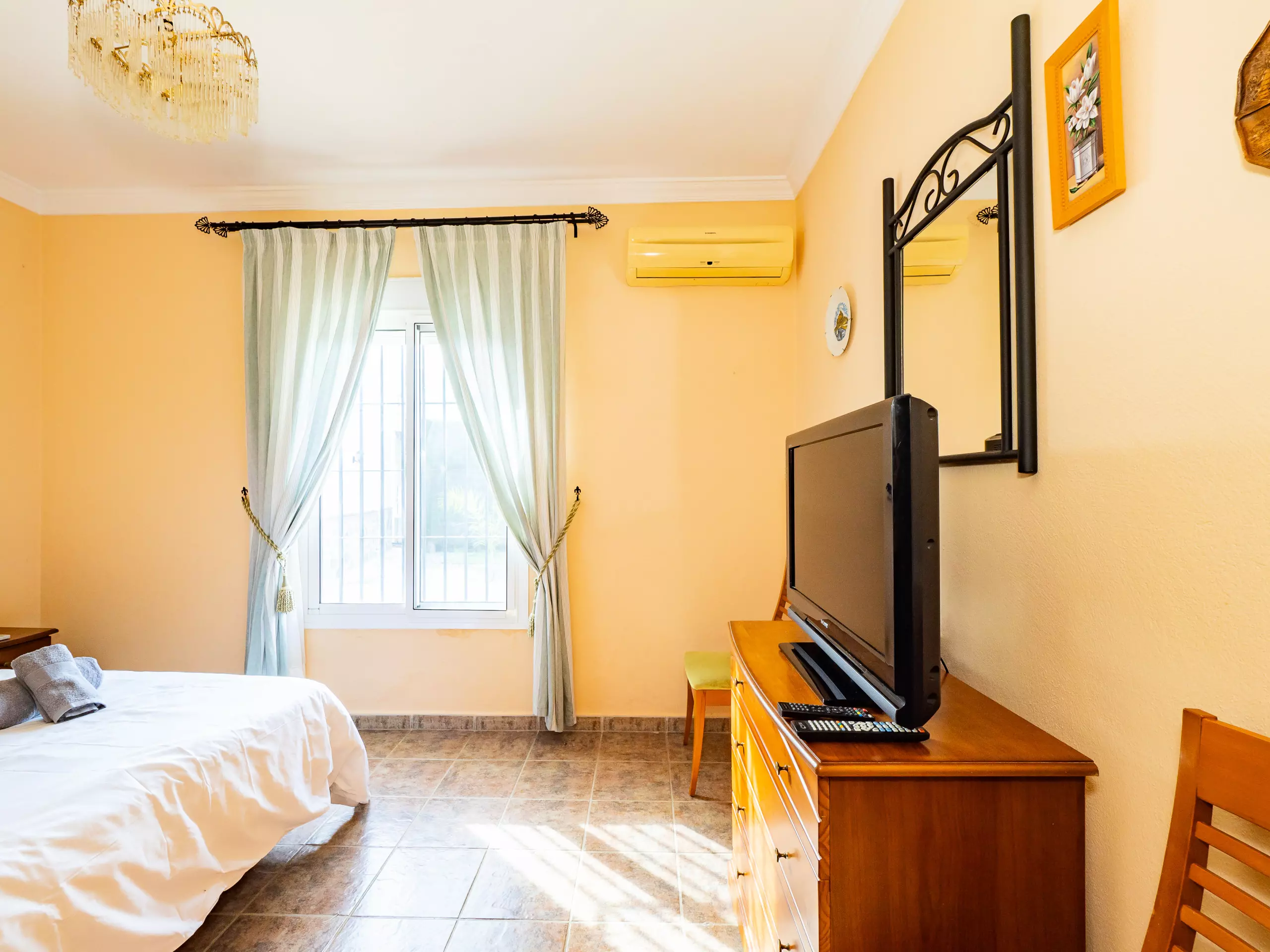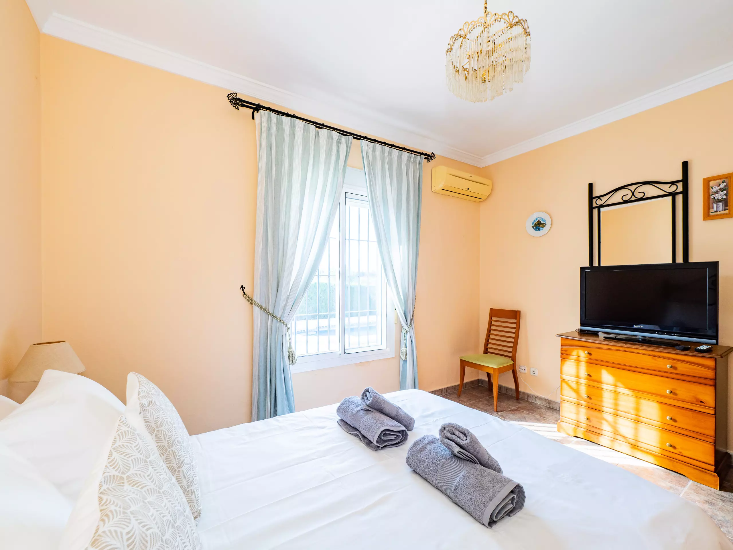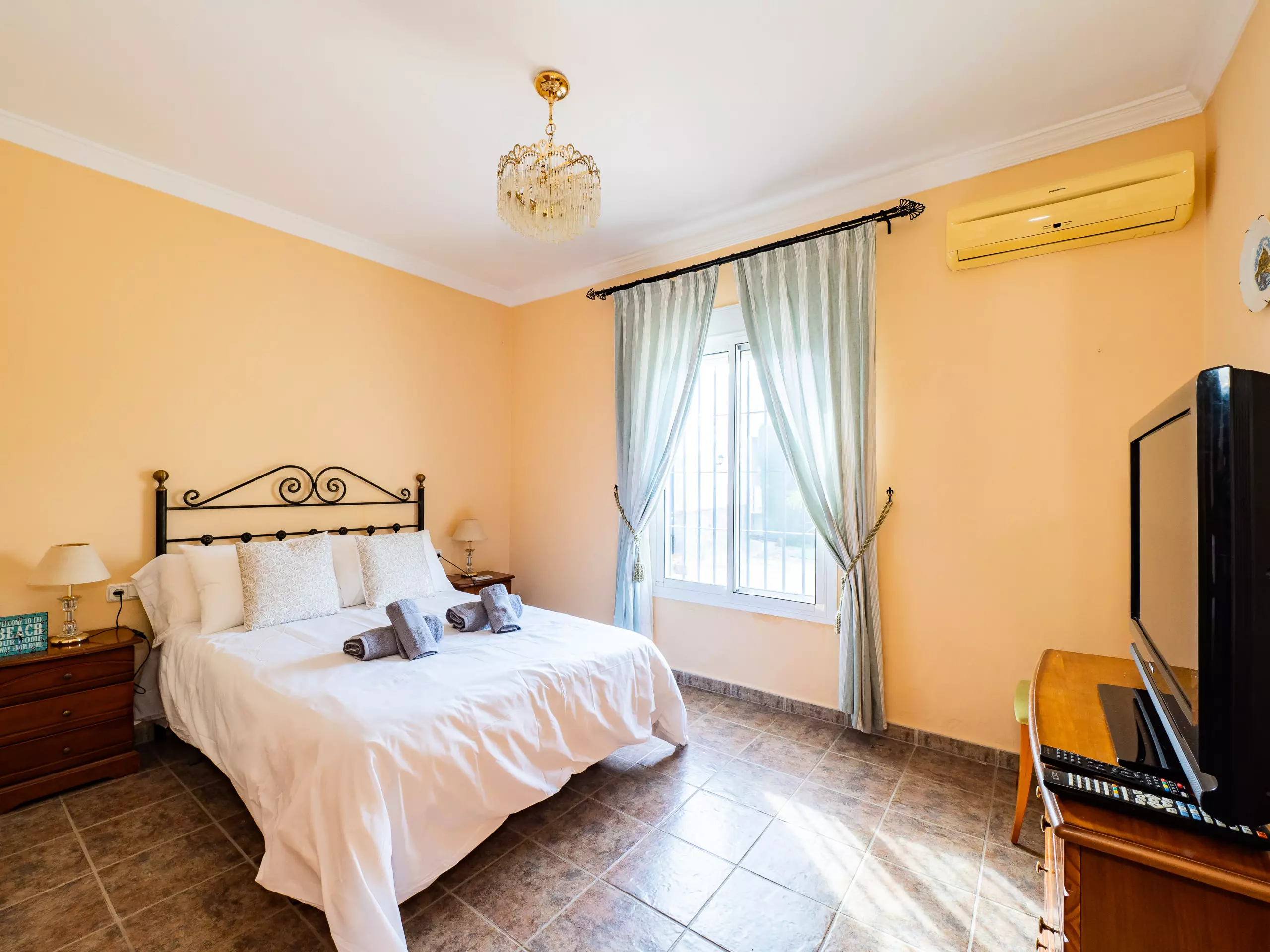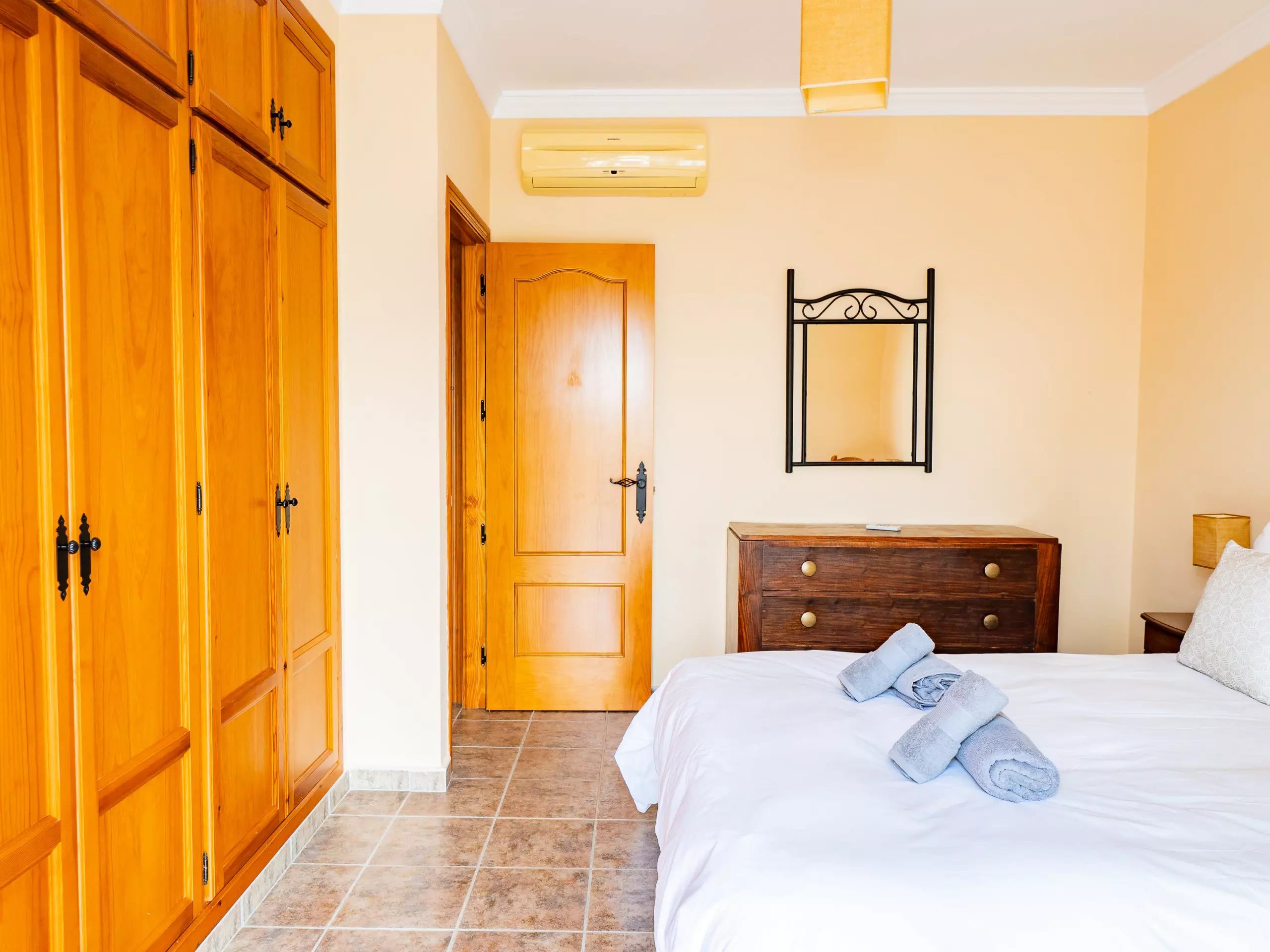Répartie sur deux étages, la maison offre un vaste espace de 280 m² avec quatre chambres et une capacité d'accueil jusqu'à huit invités. Au rez-de-chaussée, vous trouverez deux chambres ? l'une avec un lit de couple et l'autre avec deux lits individuels ? ainsi qu'une salle de bain avec une douche. L'étage supérieur comprend deux autres chambres (l'une avec un lit de couple et une terrasse privée pour profiter du soleil et de la vue, et l'autre avec deux lits individuels) et une salle de bain avec baignoire. ??