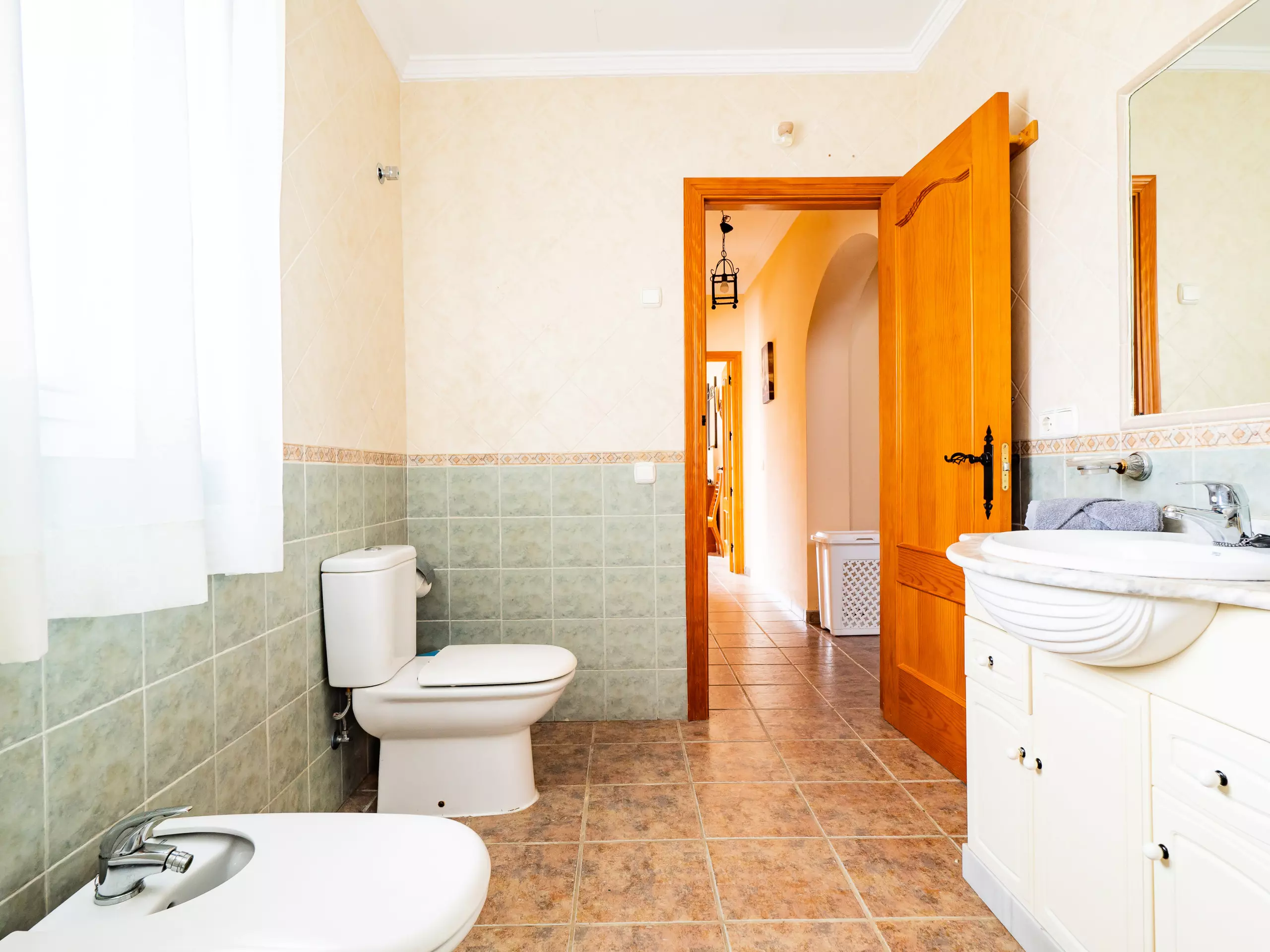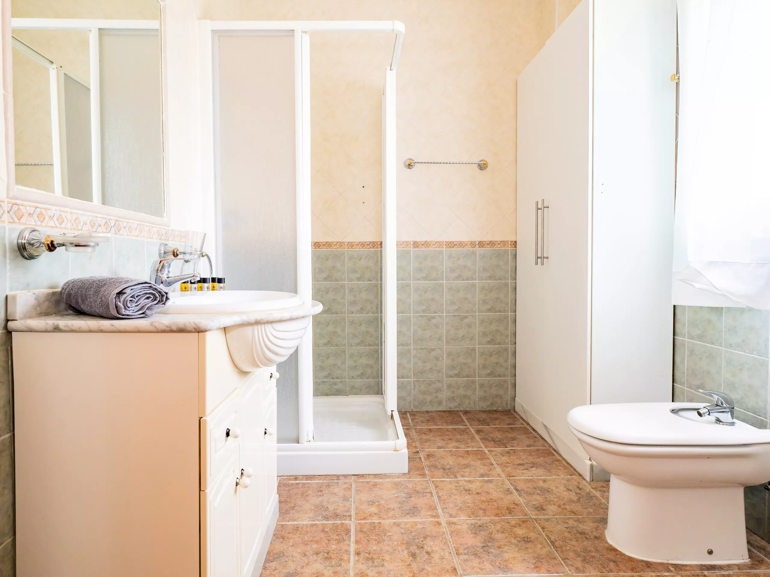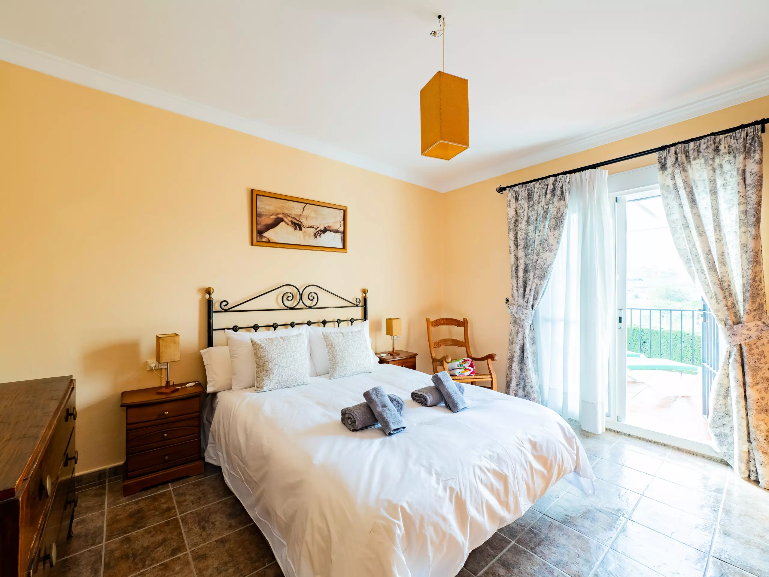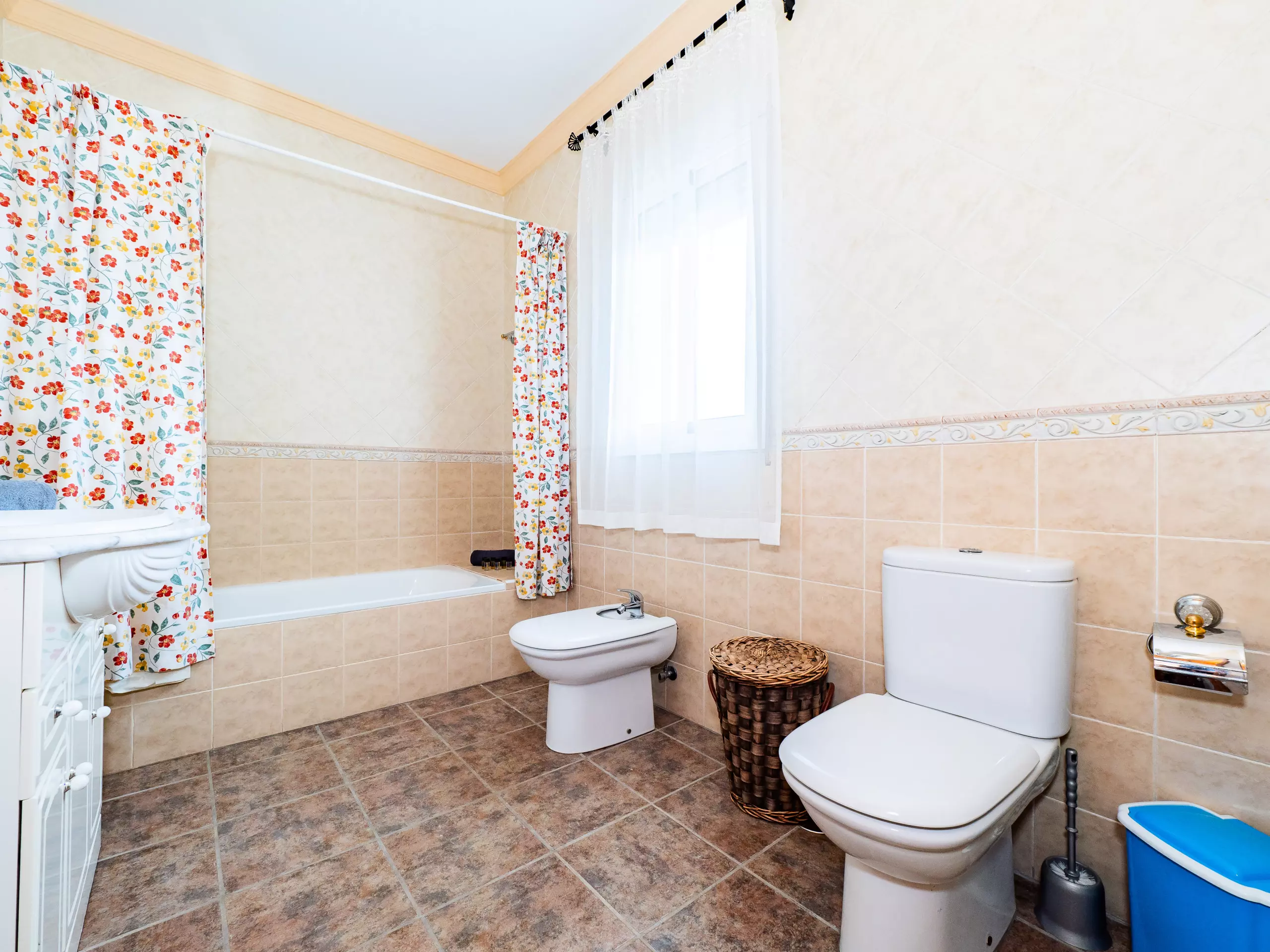 Répartie sur deux étages, la maison offre un vaste espace de 280 m² avec quatre chambres et une capacité d'accueil jusqu'à huit invités. Au rez-de-chaussée, vous trouverez deux chambres ? l'une avec un lit de couple et l'autre avec deux lits individuels ? ainsi qu'une salle de bain avec une douche. L'étage supérieur comprend deux autres chambres (l'une avec un lit de couple et une terrasse privée pour profiter du soleil et de la vue, et l'autre avec deux lits individuels) et une salle de bain avec baignoire. ??