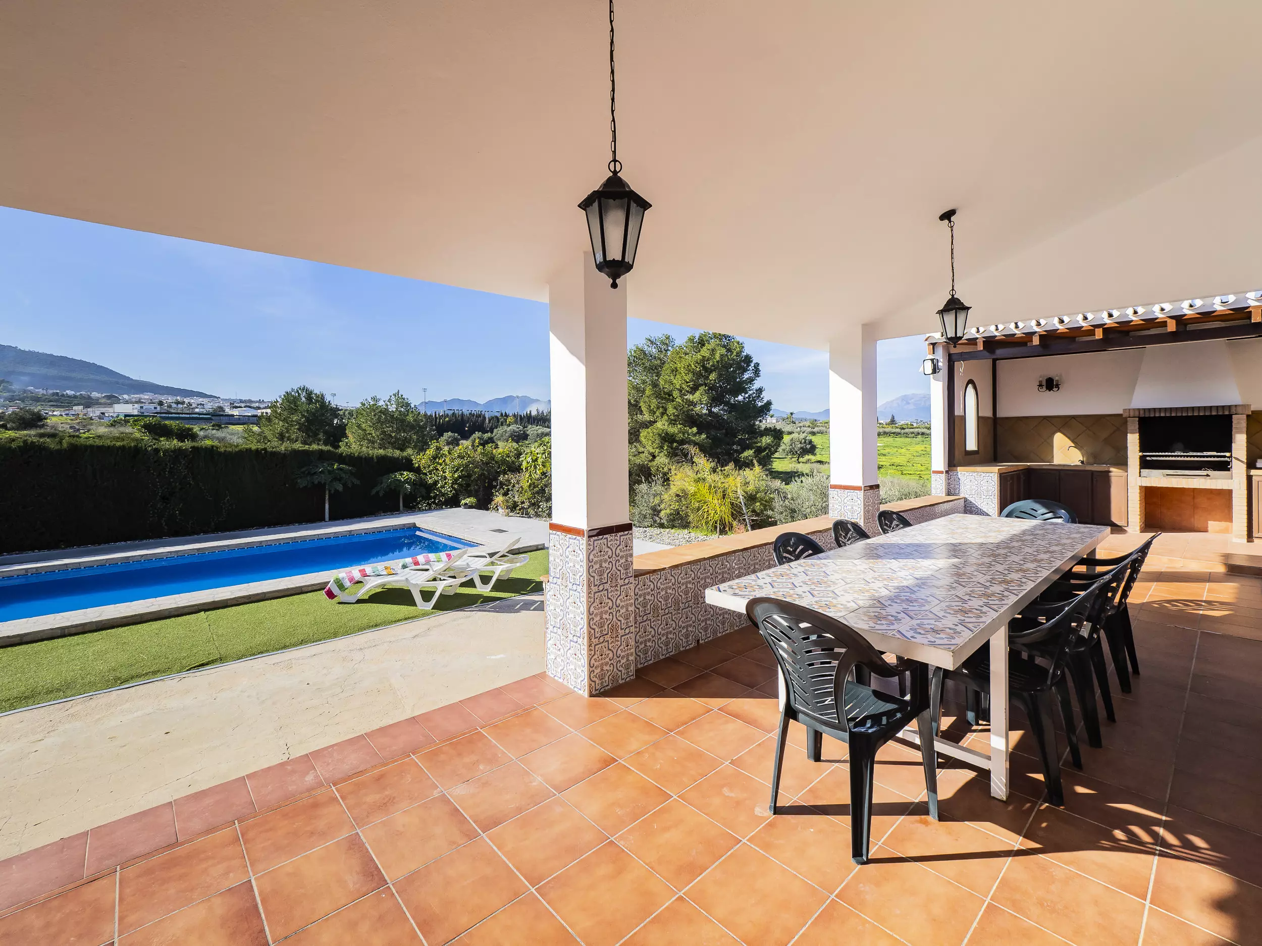 À l'extérieur, la maison éblouit avec un grand jardin fermé, une piscine privée idéale pour que les enfants profitent en toute sécurité, et une zone de barbecue avec vue sur la piscine pour que les adultes puissent se détendre tout en surveillant les plus petits. De plus, elle dispose de deux espaces de repas en plein air : l'un avec une grande table près de la piscine et l'autre sur la terrasse avant avec des fermetures vitrées pour se protéger du vent ou du froid, permettant de profiter de l'espace extérieur toute l'année. ?????